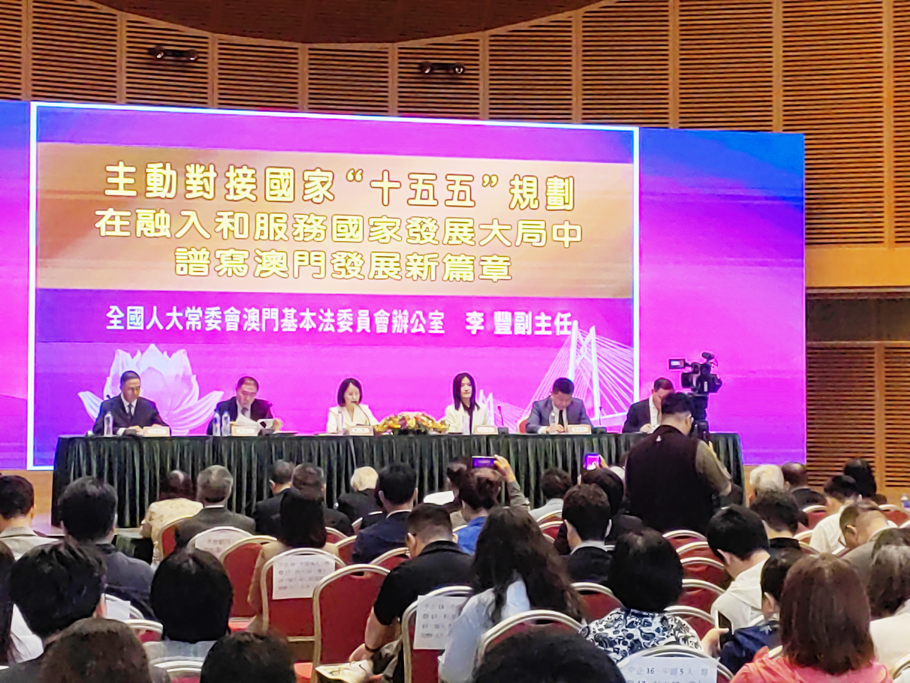 研討會設主題發言環節,來自全國人大常委會澳門基本法委員會辦公室、澳門理工大學、澳門大學、中山大學、深圳大學等機構的專家學者,分別以「主動對接國家「十五五」規劃」、「『一國兩制三法域』背景下國家安全的刑法保護」、「粵港澳大灣區規則銜接的法律工具」、「澳門行政主導體制的實踐特色」、「澳門維護國家安全法制新發展」「構建澳門國際高端人才匯聚高地」等為題作主題發言,並開展互動討論。
