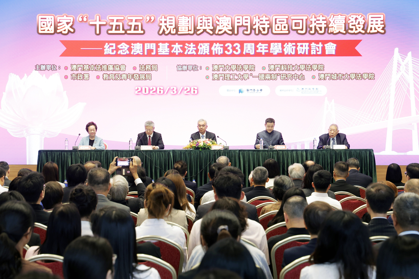 黃少澤致辭表示,國家「十五五」規劃對澳門的社會經濟發展提出了明確要求,為澳門在新的歷史座標上謀篇佈局、勠力奮進指明了前進的方向。特區政府正積極貫徹落實習近平主席系列重要講話精神,按照行政長官的要求和部署,主動、緊密對接國家「十五五」規劃,立足澳門自身實際,積極開展《澳門特別行政區經濟和社會發展第三個五年規劃(2026-2030)》的編製工作,從而為特區的可持續發展奠定堅實的基礎。他表示,保持澳門長期繁榮穩定是「一國兩制」方針和澳門基本法的本質要求。《基本法》在特區的成功實踐充分證明,只有繼續全面準確理解和貫徹「一國兩制」方針,堅定維護《憲法》和《基本法》的權威,堅持「愛國者治澳」和行政主導原則,主動對接國家發展戰略,充分發揮自己的獨特優勢,才能實現特區高質量的可持續發展,不斷譜寫具有澳門特色的「一國兩制」偉大事業的嶄新篇章,為中國式現代化作出應有的更大貢獻。特區政府將繼續與社會各界一起,共同深入研究、學習、推廣《基本法》,落實《基本法》,推動澳門「一國兩制」成功實踐邁上新的台階,期待專家學者利用研討會,為特區發展建言獻策,貢獻真知灼見。