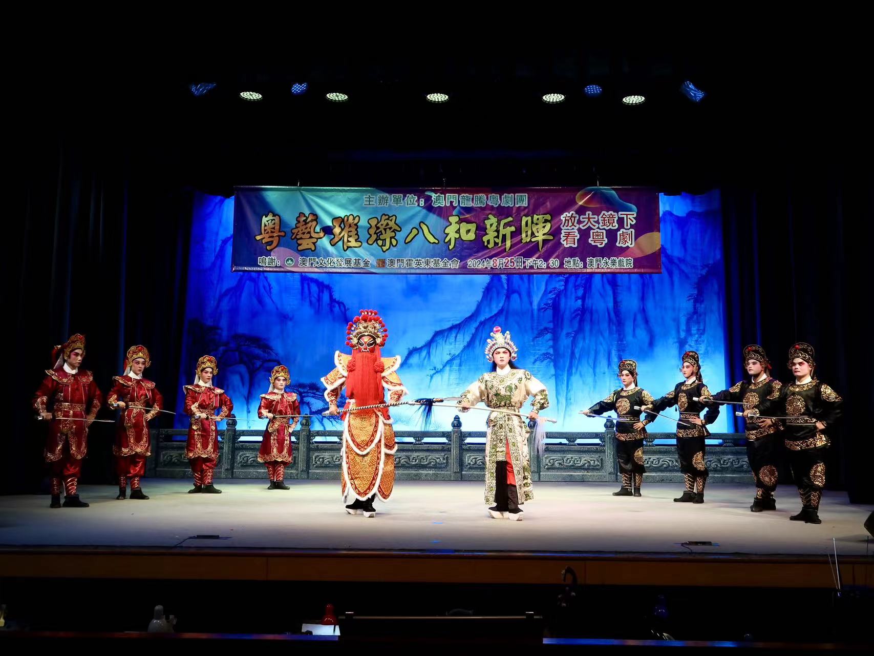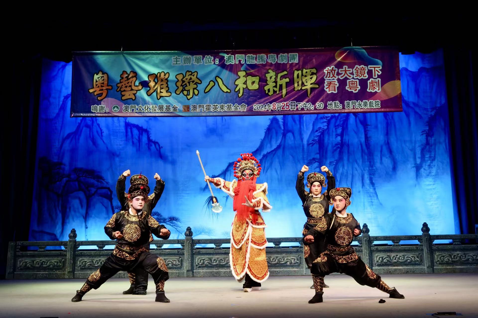 【即時新聞】由澳門龍騰粵劇團主辦,澳門文化發展基金及澳門霍英東基金會贊助的「粵藝璀璨 八和新暉」放大鏡下看粵劇專場活動,今日下午2時30分至5時在澳門永樂戲院舉行。劇團資深名伶與一眾台前幕後年青人協力打造粵劇入門平台,特別面向年輕觀眾和新入門觀眾,示範及講解十大行當與服飾的配合,藉此推廣和傳承粵劇文化,讓更多人能夠逐步瞭解和欣賞這一具有悠久歷史的藝術形式,促進粵劇藝術的傳承與發展。