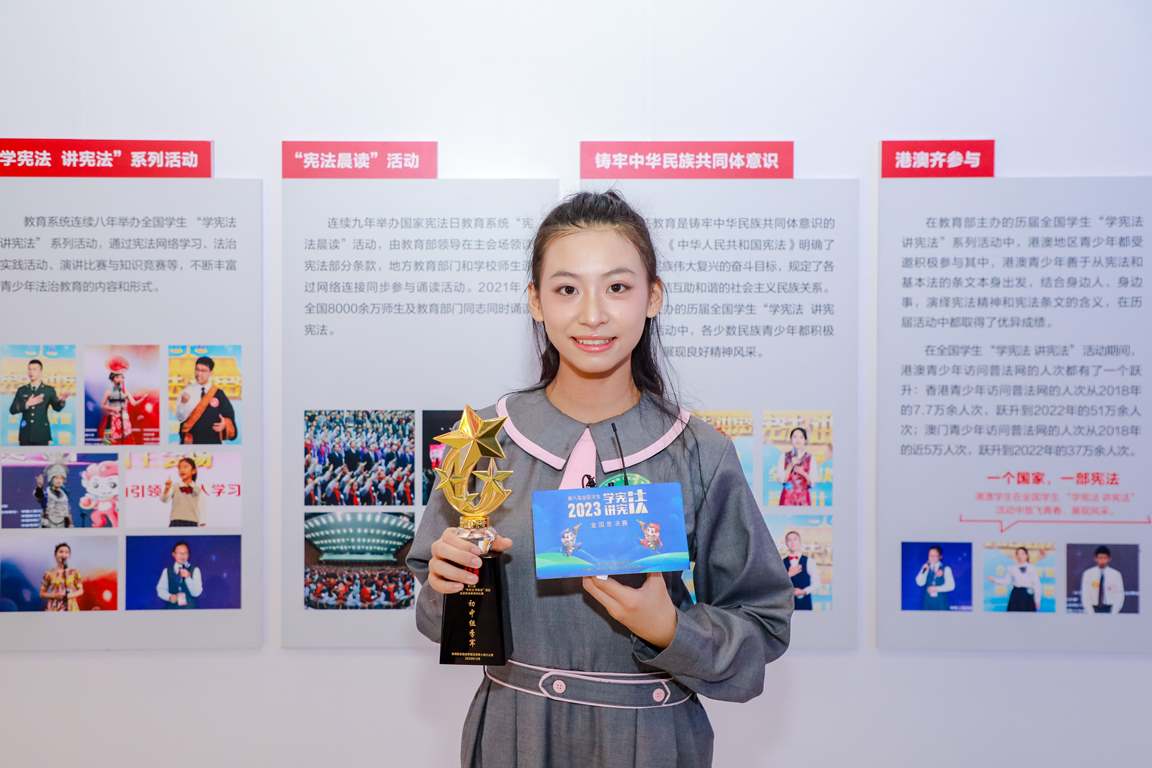 演講比賽全國合共有159名選手參加,分為主題演講及命題演講兩個階段,主題演講排名前16名選手晉級至命題演講。代表團的學生在指導老師的悉心帶領下,積極備戰。來自濠江中學附屬英才學校的張紫晴同學以「築夢青春 憲法護航」為主題進行演講並成功晉級,在經過激烈的比試後,成功奪得初中組季軍的殊榮,向全國師生展現澳門法制教育的成果。澳門科技大學田悅、培正中學張若詩、澳門大學附屬應用學校鄒樂妍分別獲得高校組、高中組和小學組三等奬。