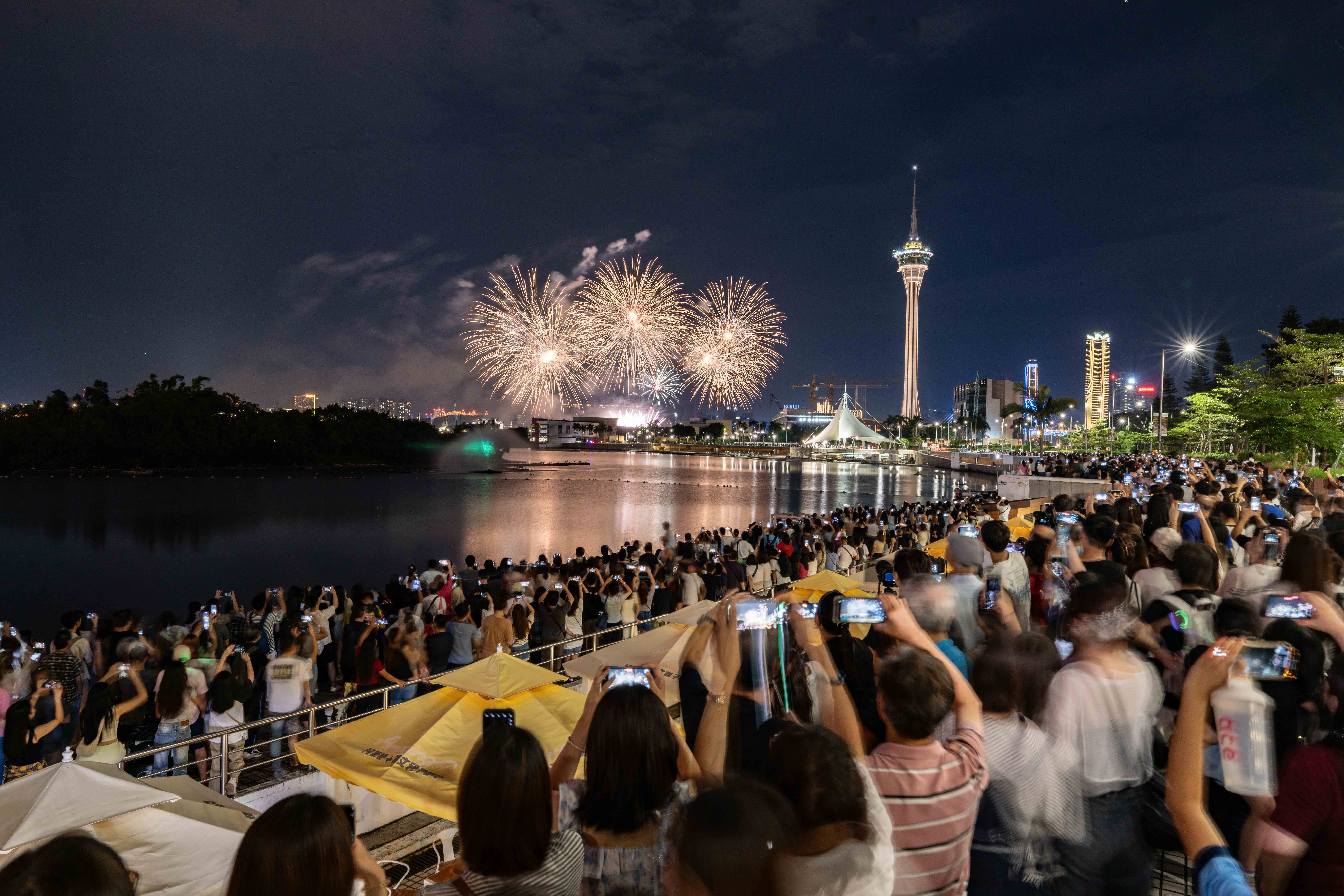 【即時新聞】由旅遊局主辦的慶祝中華人民共和國成立75周年、澳門回歸祖國25周年第32屆澳門國際煙花比賽匯演於今(14日)晚正式上演,首兩場表演由來自加拿大和泰國的兩間煙花公司呈獻,為觀眾帶來壯觀的視覺盛宴。標誌性配套活動“火樹銀花嘉年華”於每個煙花演出日與公眾見面,增添煙花比賽匯演熱鬧氣氛,同期疊加線上遊戲,擴大“旅遊+盛事”效應,並配合全方位宣傳,帶動人流促進夜間經濟。