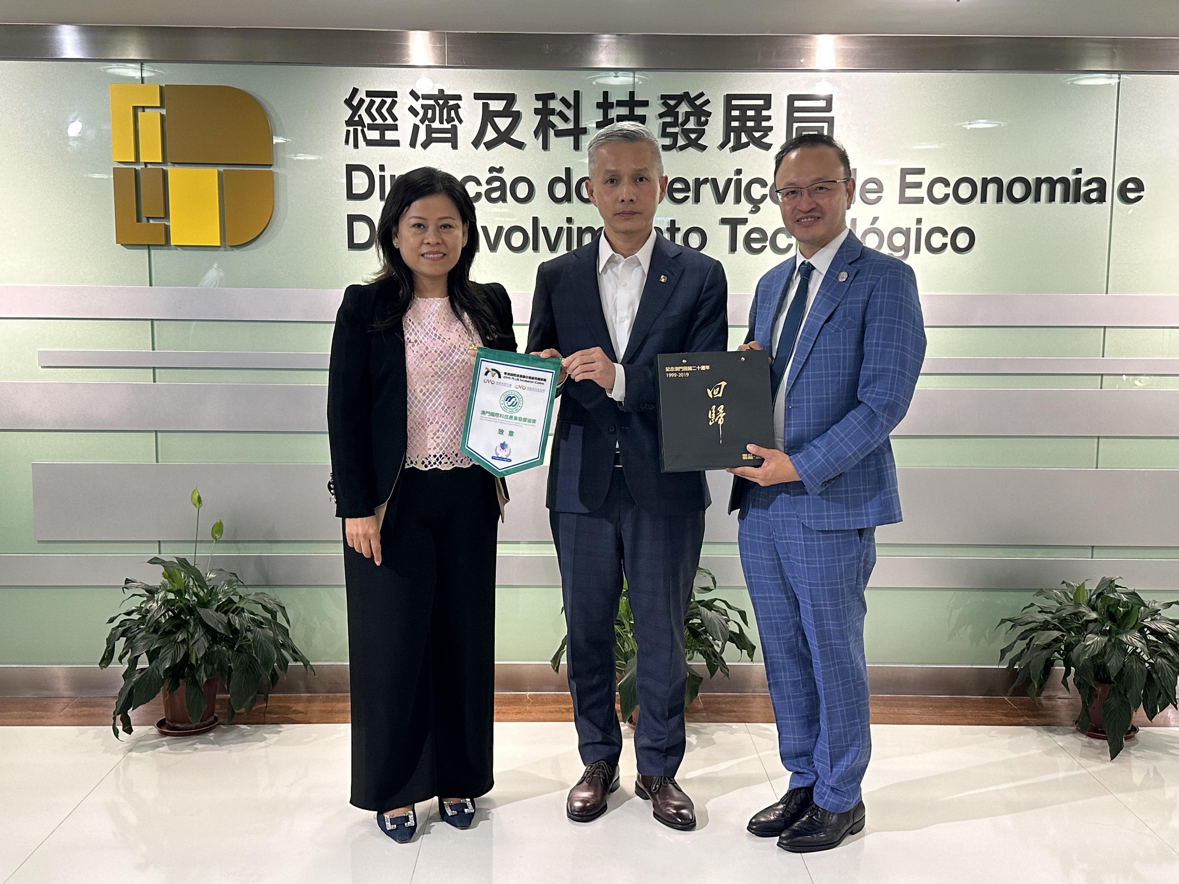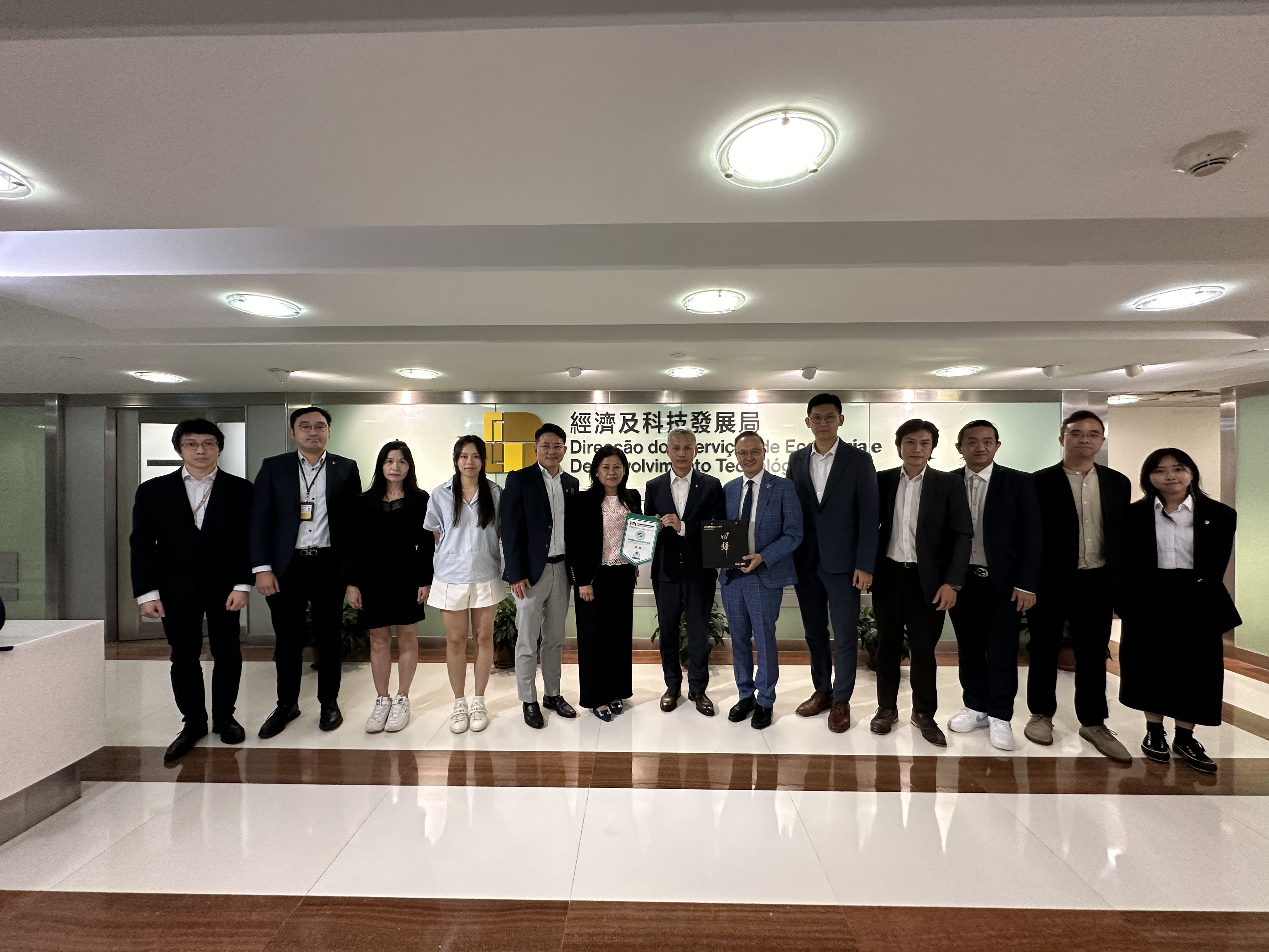 【即時新聞】澳門國際科技產業發展協會會長李彩紅、理事長黃承發帶領科技行業公司和灣區青年智庫成員,於日前9月12日下午4時拜訪經濟及科技發展局,得到局長戴建業、廳長陳祖榮、處長翁年輝作親切交流。