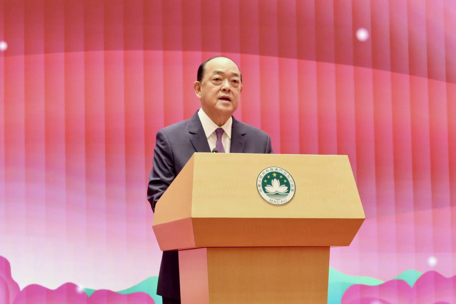 他提到,過去五年來,在以習近平主席為核心的中央堅強領導下,特區政府團結社會各界和廣大居民協同奮進、變革創新,始終堅定不移、全面準確地貫徹“一國兩制”方針,堅定維護中央全面管治權,堅定維護國家主權、安全、發展利益,全面貫徹落實“愛國者治澳”原則,戰勝了前所未有的困難和挑戰,全力推動澳門特區各項事業邁上新台階。