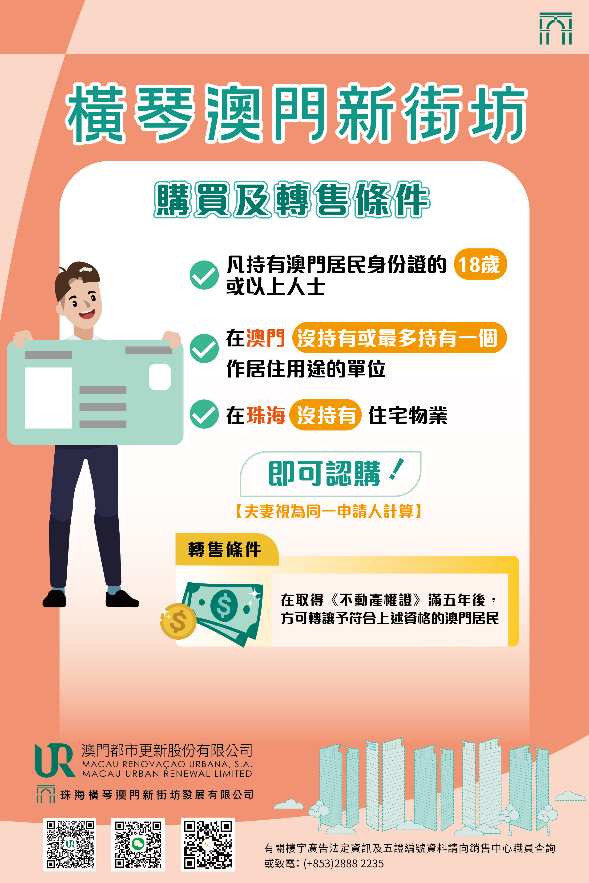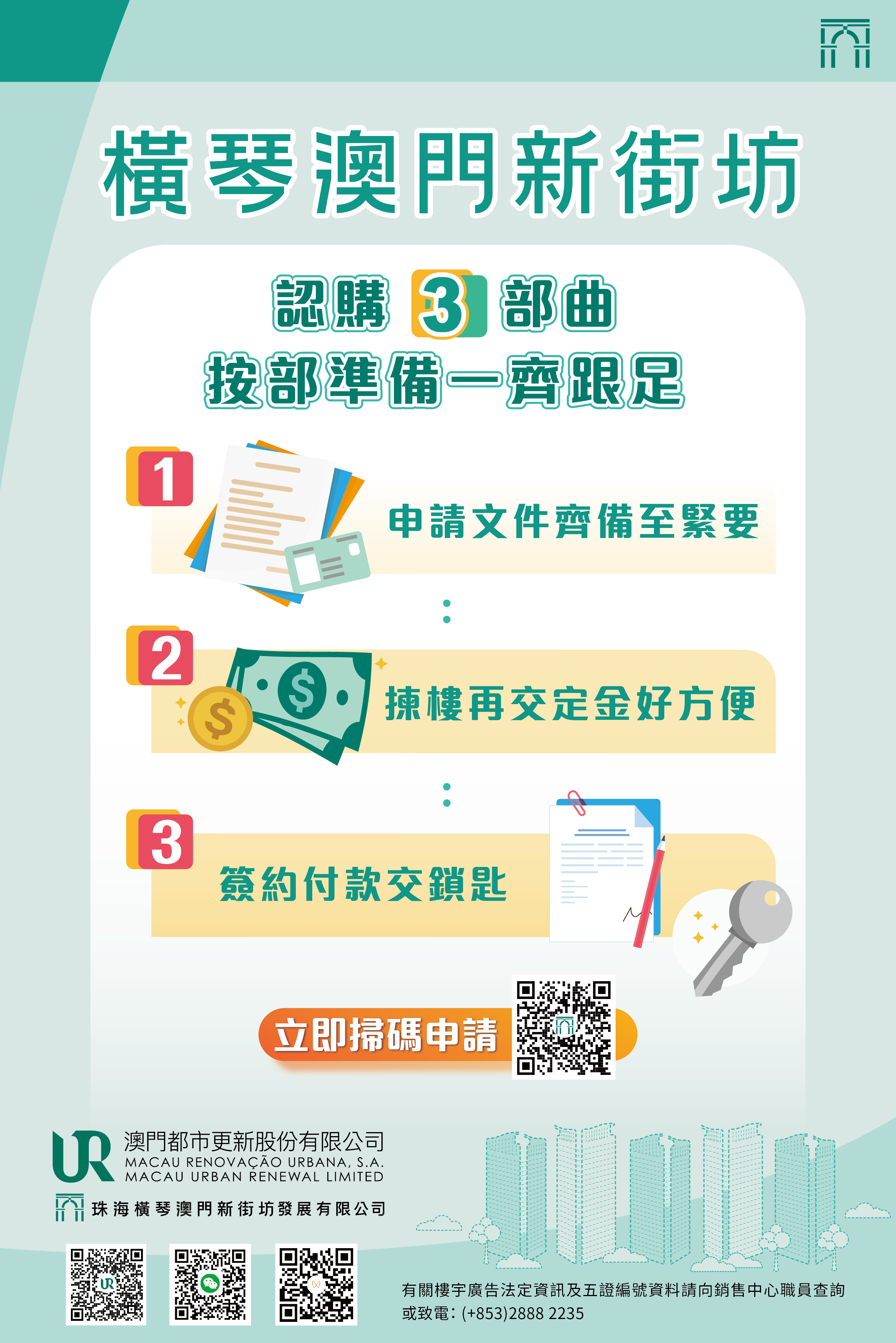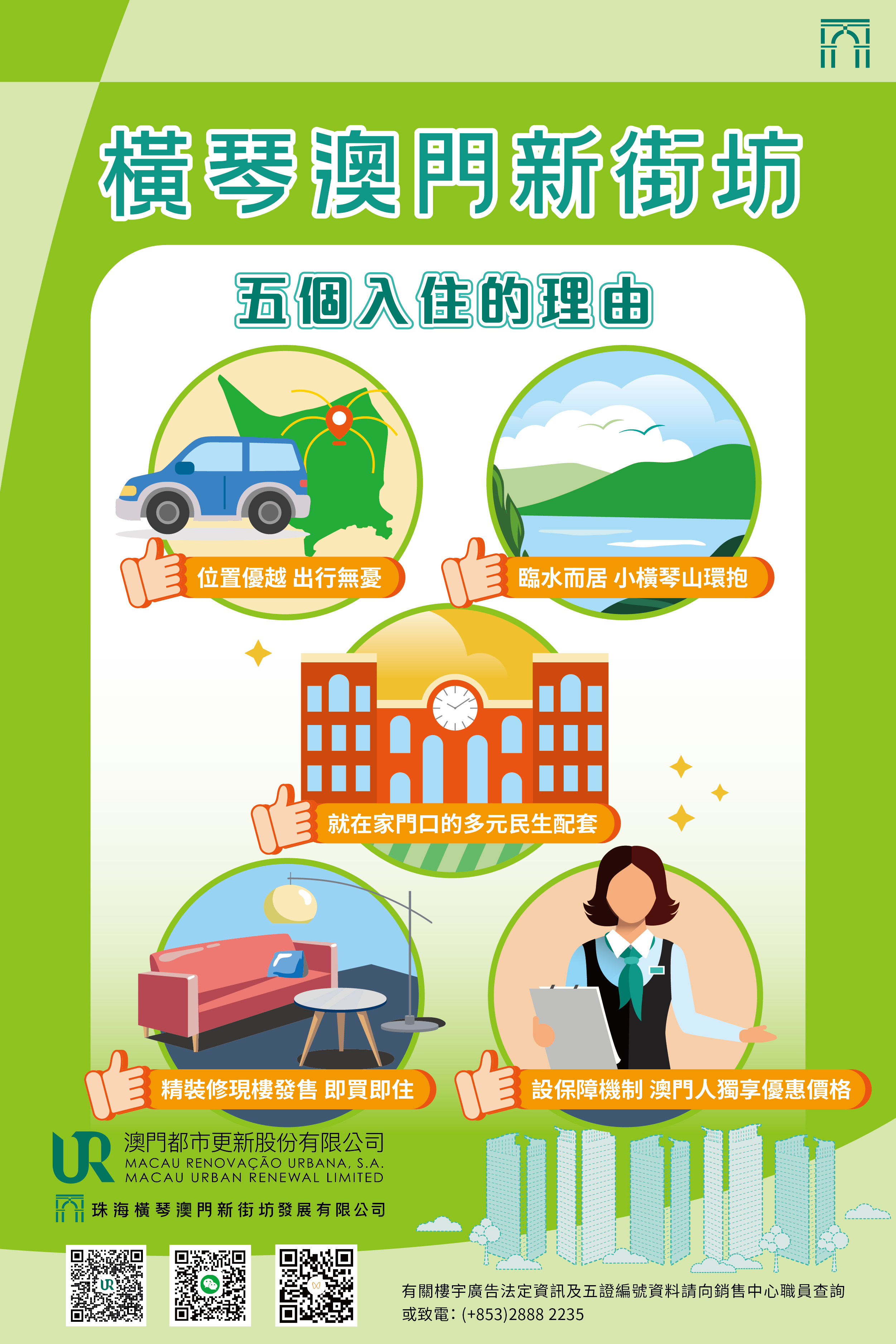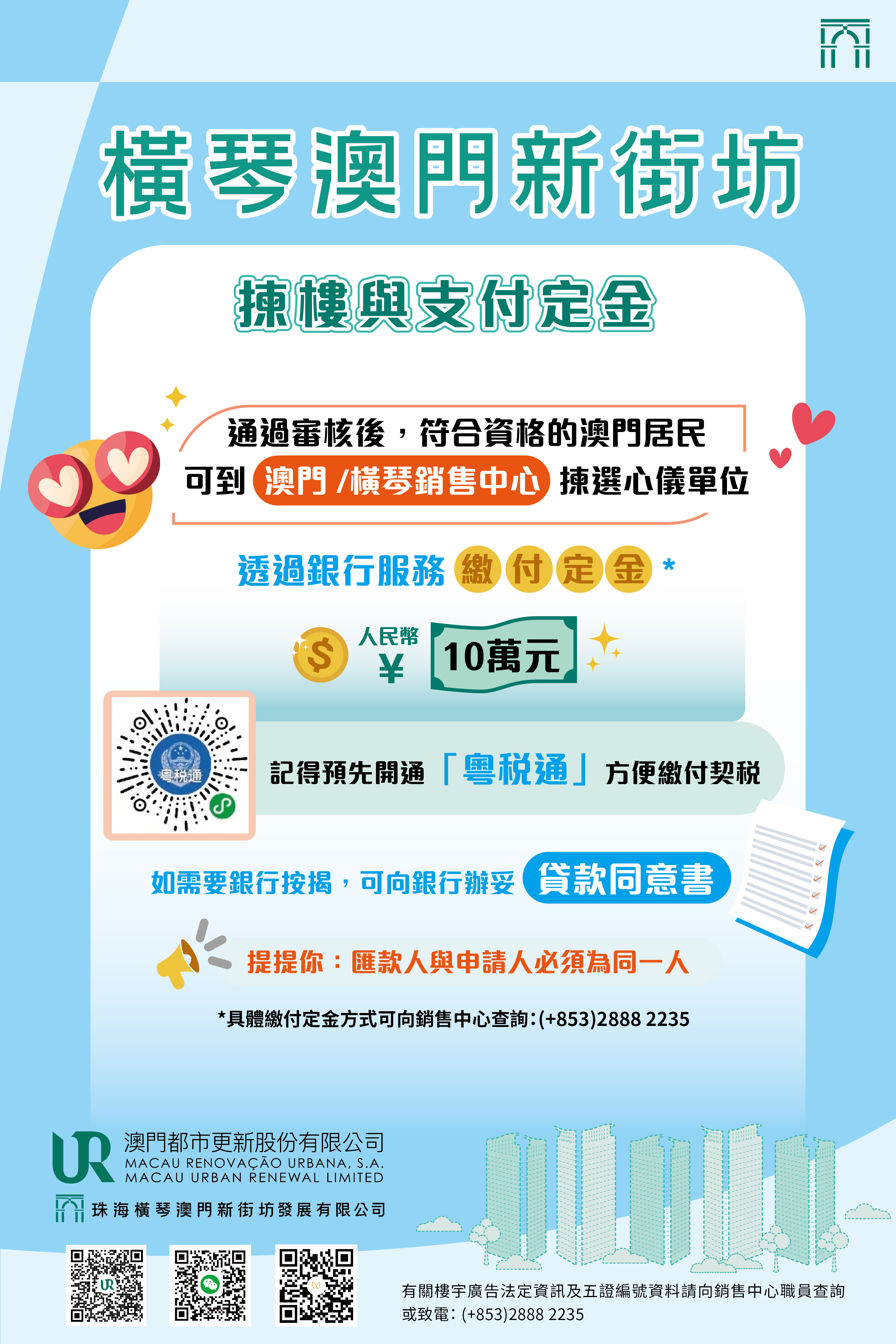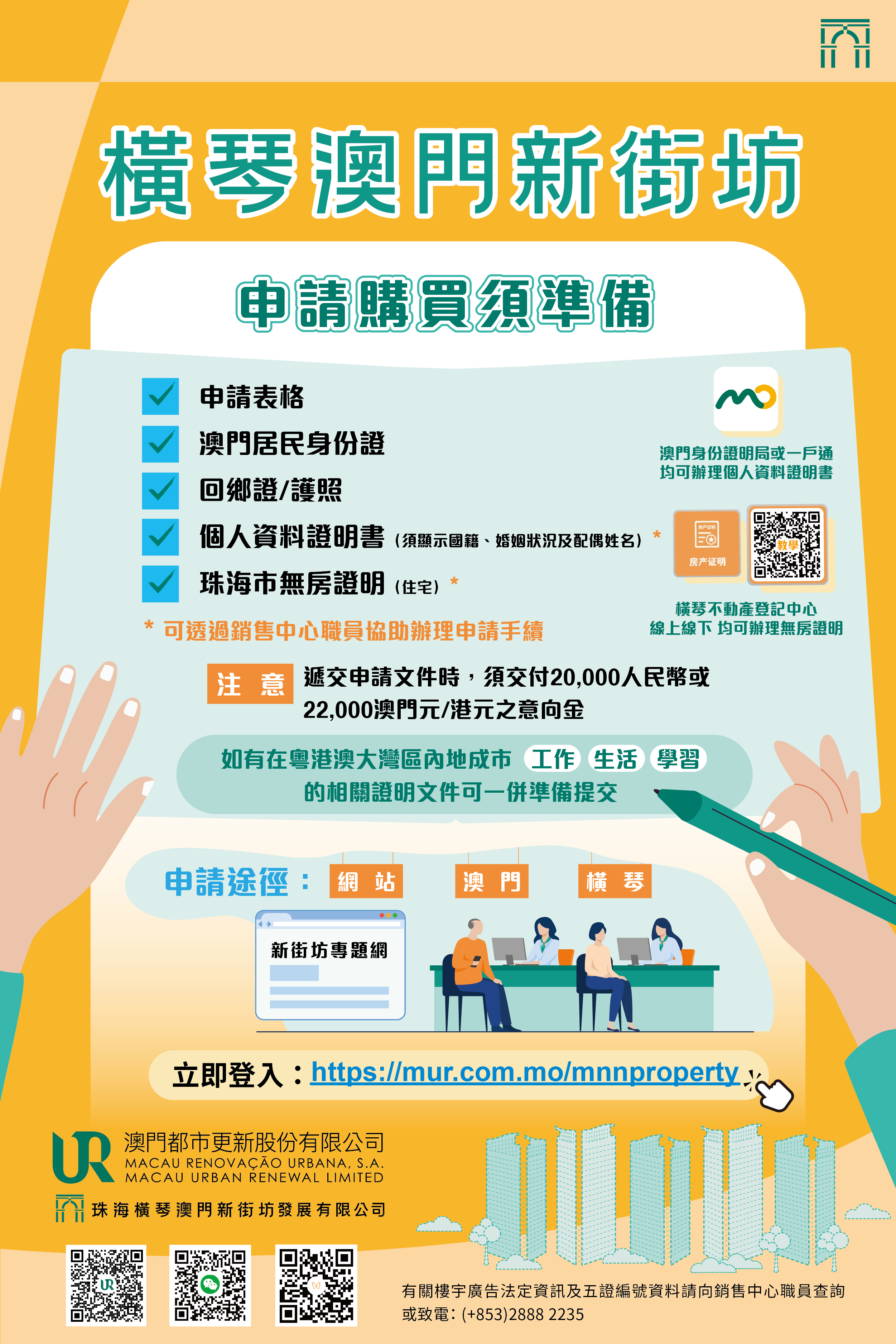 如欲了解詳情,可登入澳門新街坊專題網頁(https://mur.com.mo/mnnproperty)或電郵至mnn_property@mu... 2235了解橫琴「澳門新街坊」認購申請事宜。
