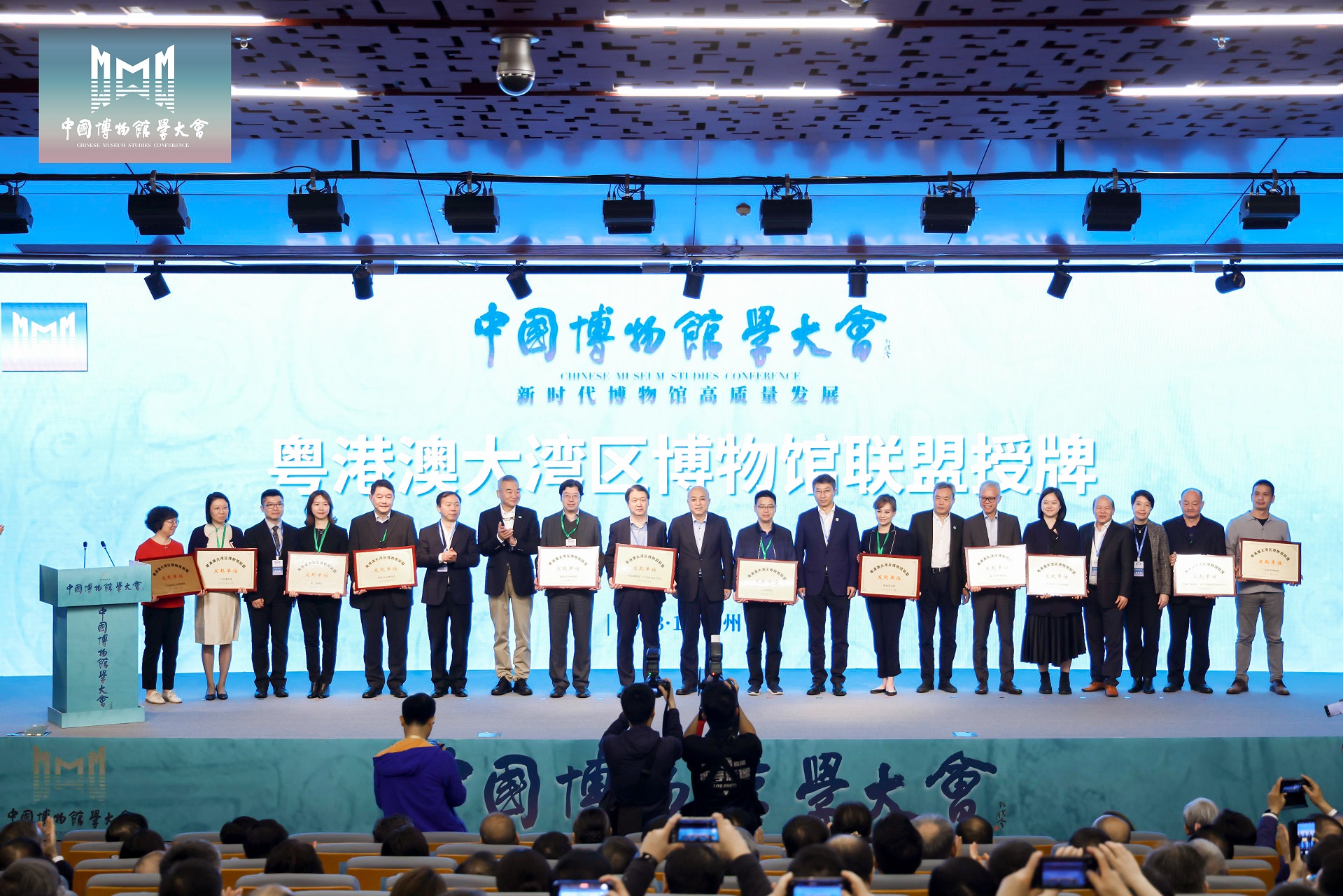 開幕式上舉行了“粵港澳大灣區博物館聯盟”授牌儀式,故宮博物院院長王旭東,國家文物局副局長羅文利,廣東省人民代表大會常務委員會副主任譚玲、中國博物館協會理事長劉曙光、中國古籍遺址保護協會理事長宋新潮,廣東省文化和旅遊廳副廳長、廣東省文物局局長龍家有,香港康樂及文化事務署助理署長劉啟業及澳門文化局局長梁惠敏分別為聯盟的24家發起單位頒授牌匾,來自全國各地文博機構和高等院校的專家、學者共同見證。