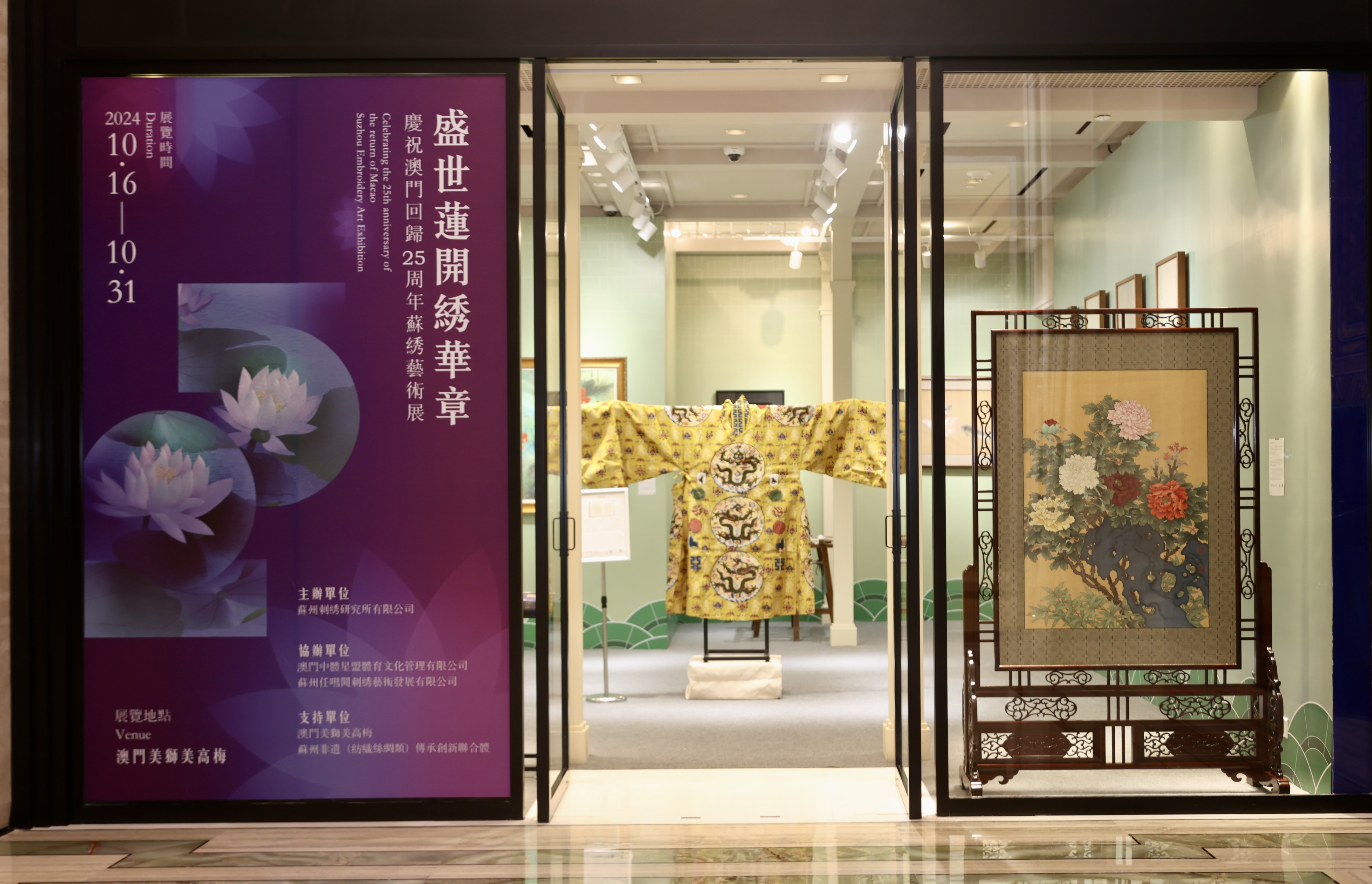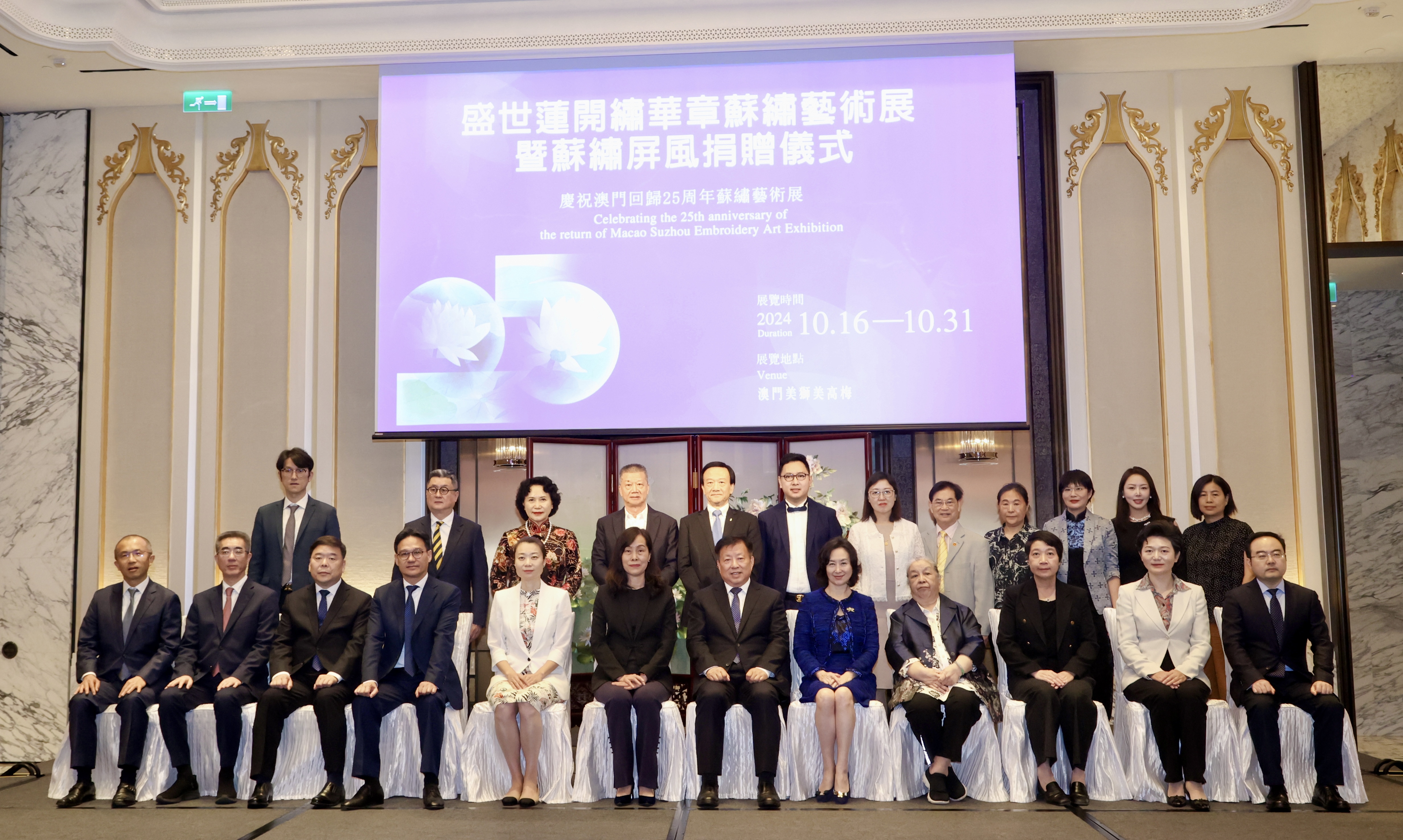 【即時新聞】由蘇州刺繡研究所有限公司主辦、澳門中體星盟體育文化管理有限公司、蘇州任嘒閒刺繡藝術發展有限公司協辦、美高梅、蘇州非遺(紡織絲綢類)傳承創新聯合體支持的「盛世蓮開繡華章——慶祝澳門回歸25周年蘇繡藝術展」在美獅美高梅酒店開幕。江蘇省人民政府副省長方偉,澳門社會文化司司長歐陽瑜,全國政協常委、美高梅中國控股有限公司董事長及執行董事何超瓊,中聯辦宣傳文化部副部長白冰,澳門文化局局長梁惠敏等出席開幕儀式,共襄文化盛宴。