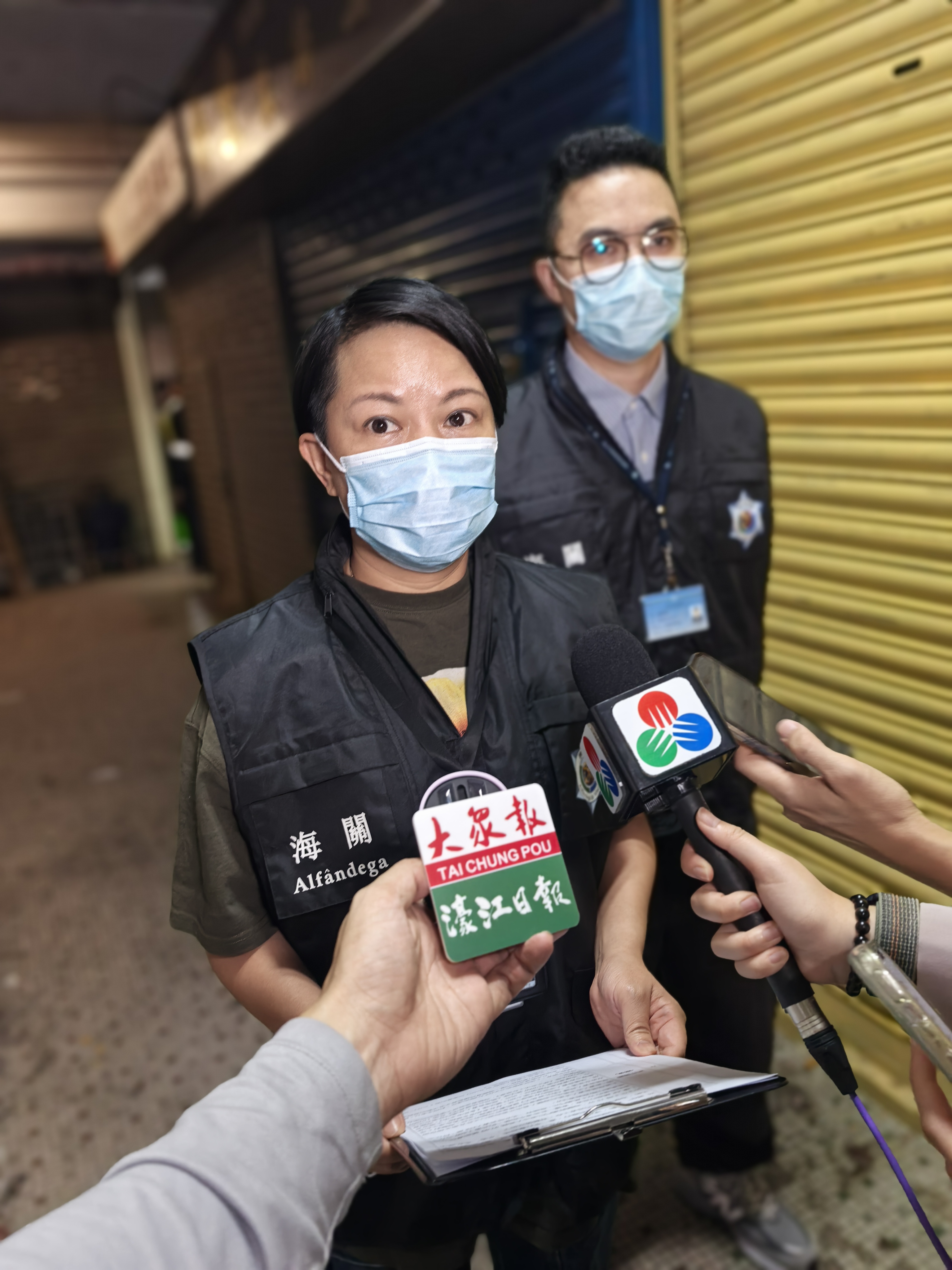 【即時新聞】海關今日下午在關閘馬路如意閣商場一單位搗破疑“水客”散貨點,當場截獲一名內地女負責人,檢獲1500公斤、市值約22.5萬澳門元的牛柏葉。