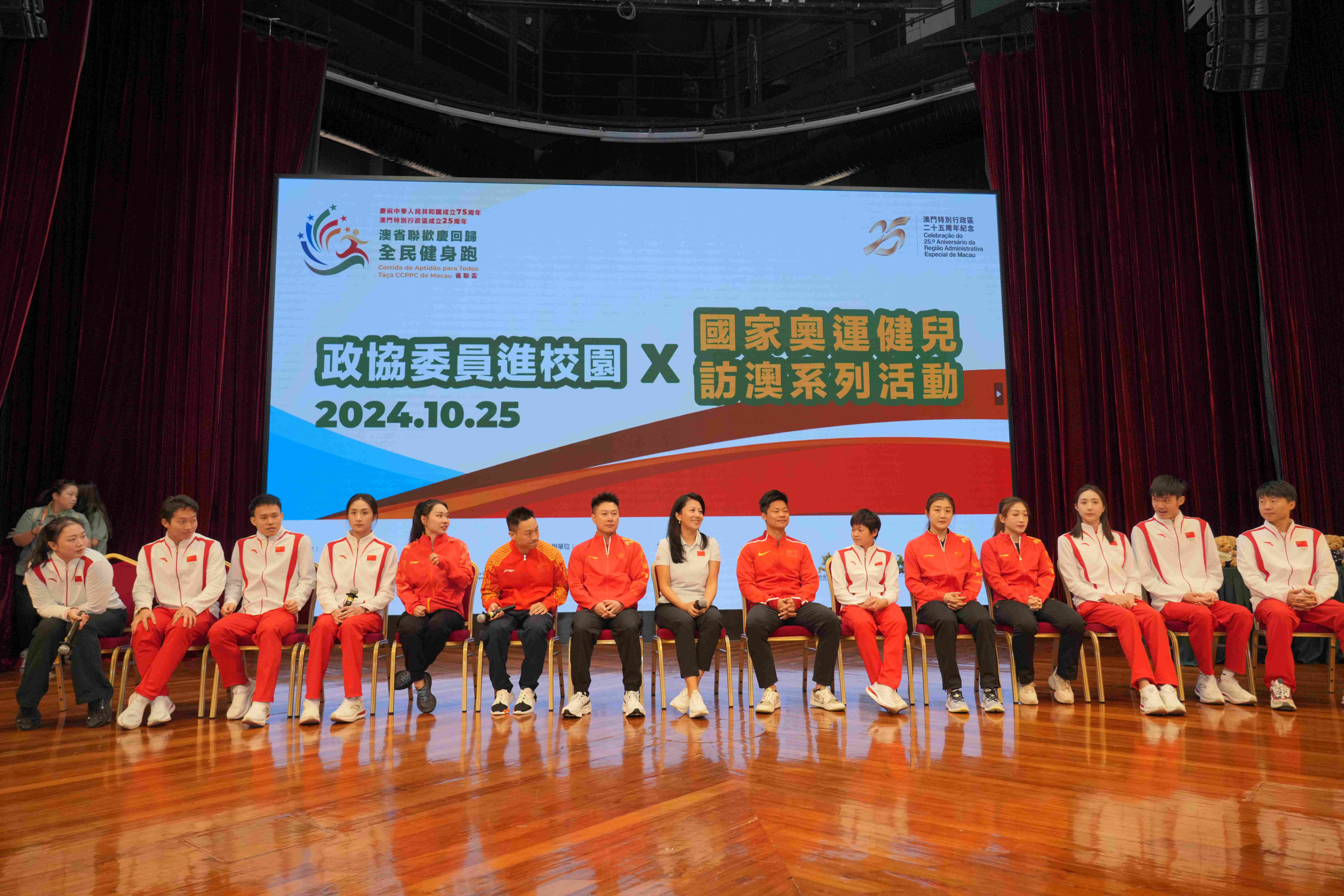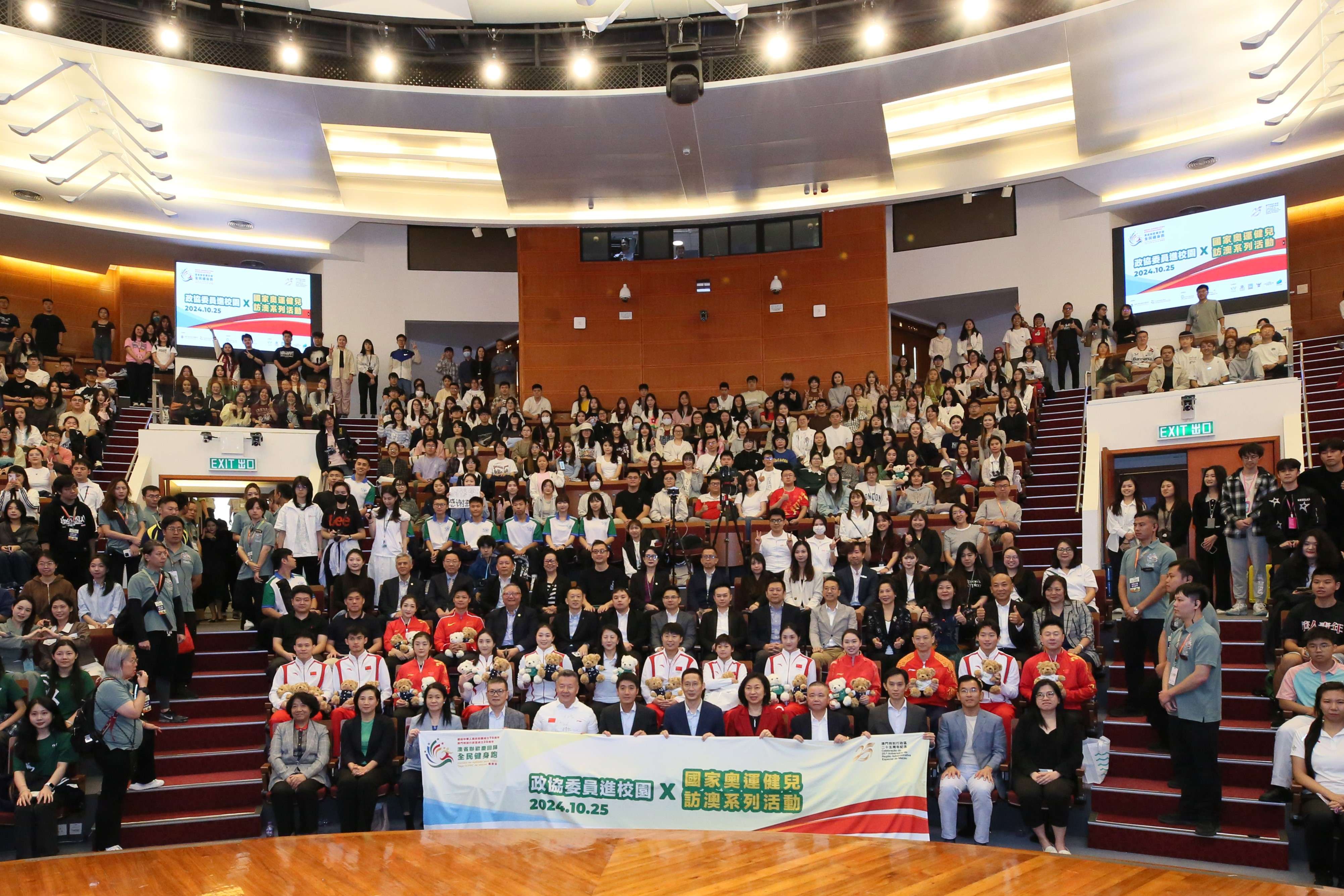 【即時新聞】由澳區省級政協委員聯誼會、澳門特別行政區政府體育局聯合舉辦,澳門城市大學承辦的“政協委員進校園 X 國家奧運健兒訪澳系列活動”之城大專場活動今(25)日在城大氹仔校區文化中心舉行。澳區省級政協委員會聯誼會會長馬志成,常務副會長黃天松、陳志玲,理事長呂聯苗,秘書長孫振鴻;河北省政協委員、澳門城市大學校友會副會長韓靜;中央人民政府駐澳門特別行政區聯絡辦公室協調部副部長王建峰;教育及青年發展局高等教育廳廳長許嘉路;司法警察局處長趙朱慧敏;城大校董會副主席孔繁清、校長劉駿及國家奧運健兒代表團等出席活動。