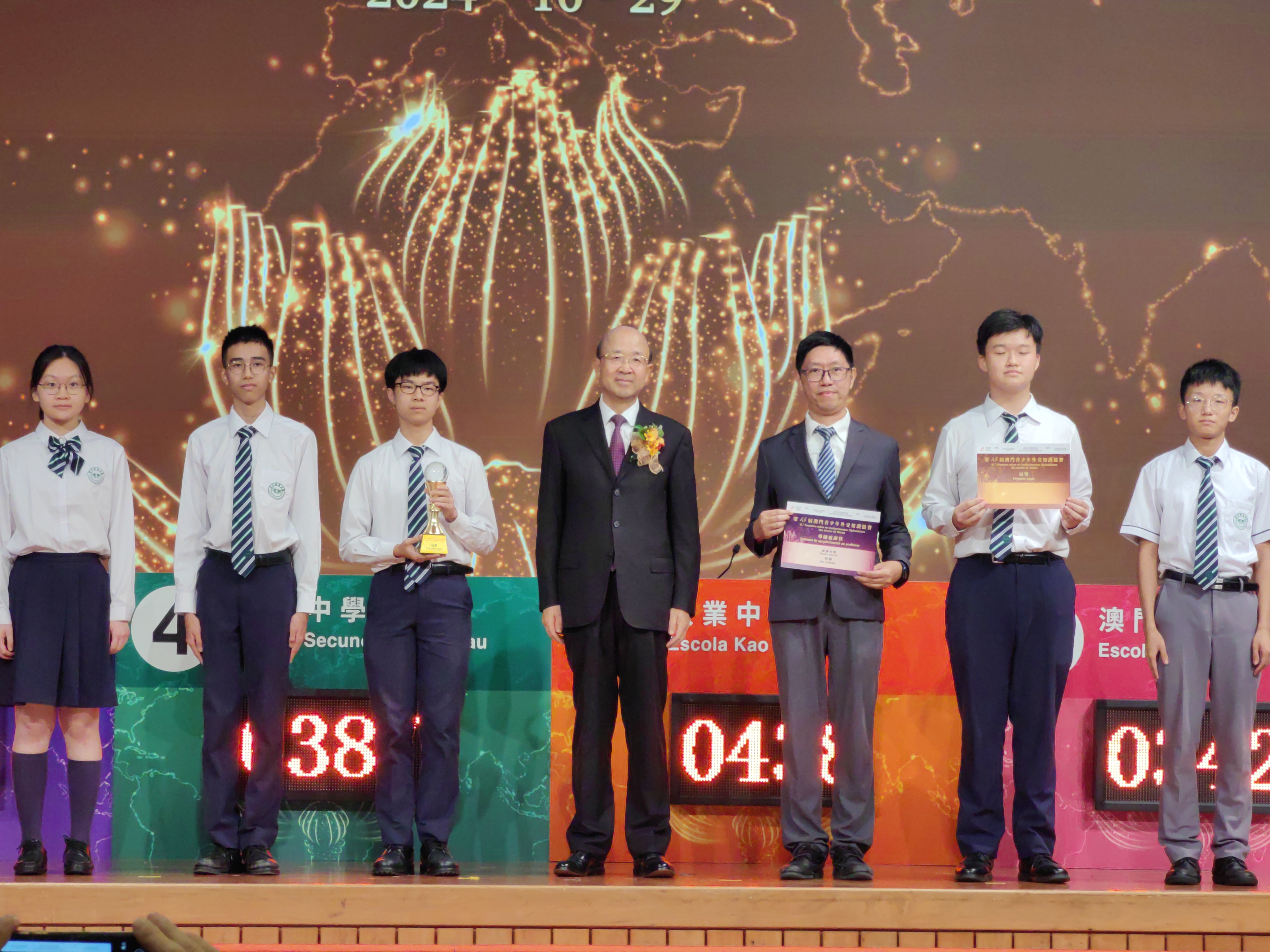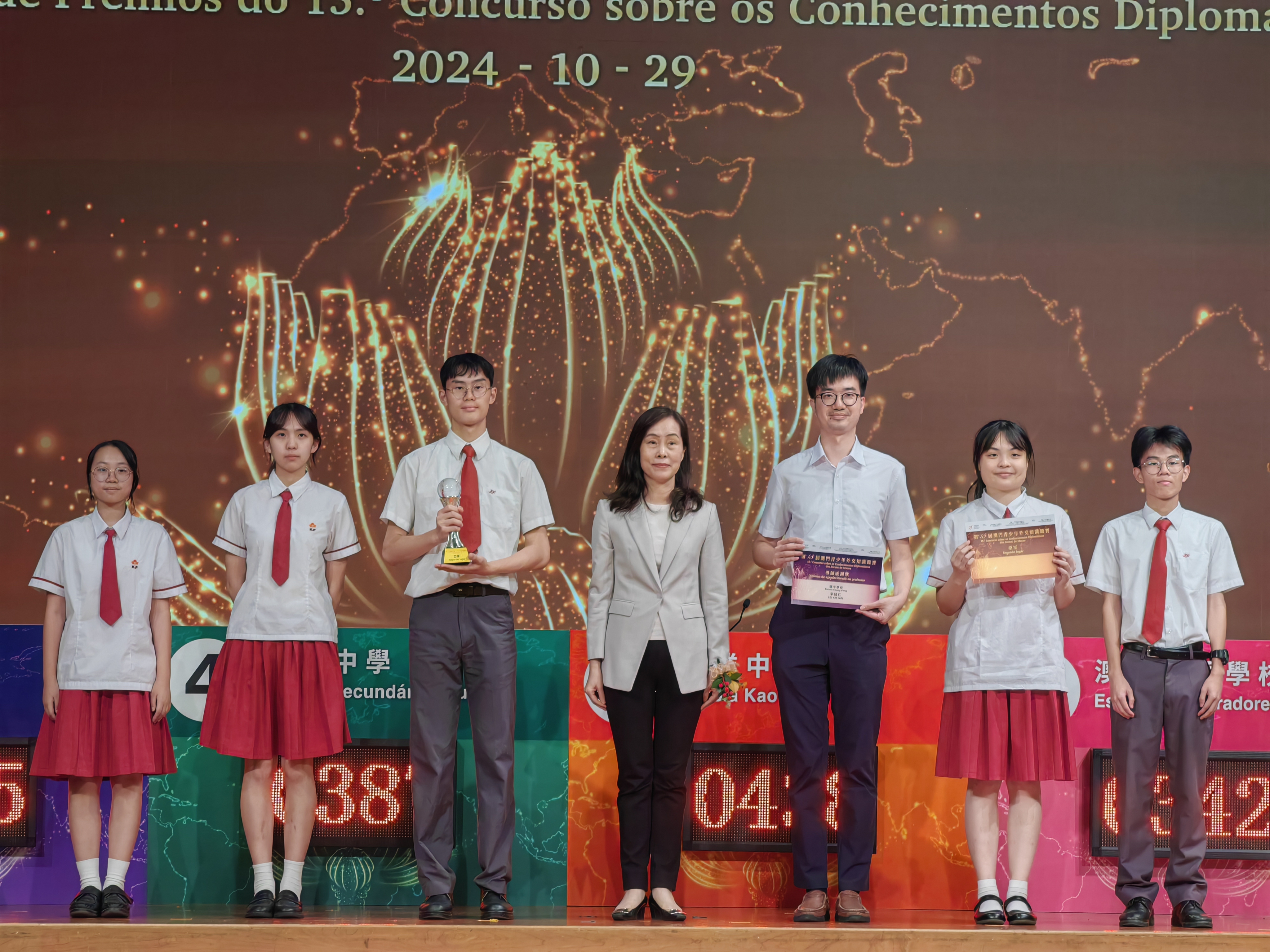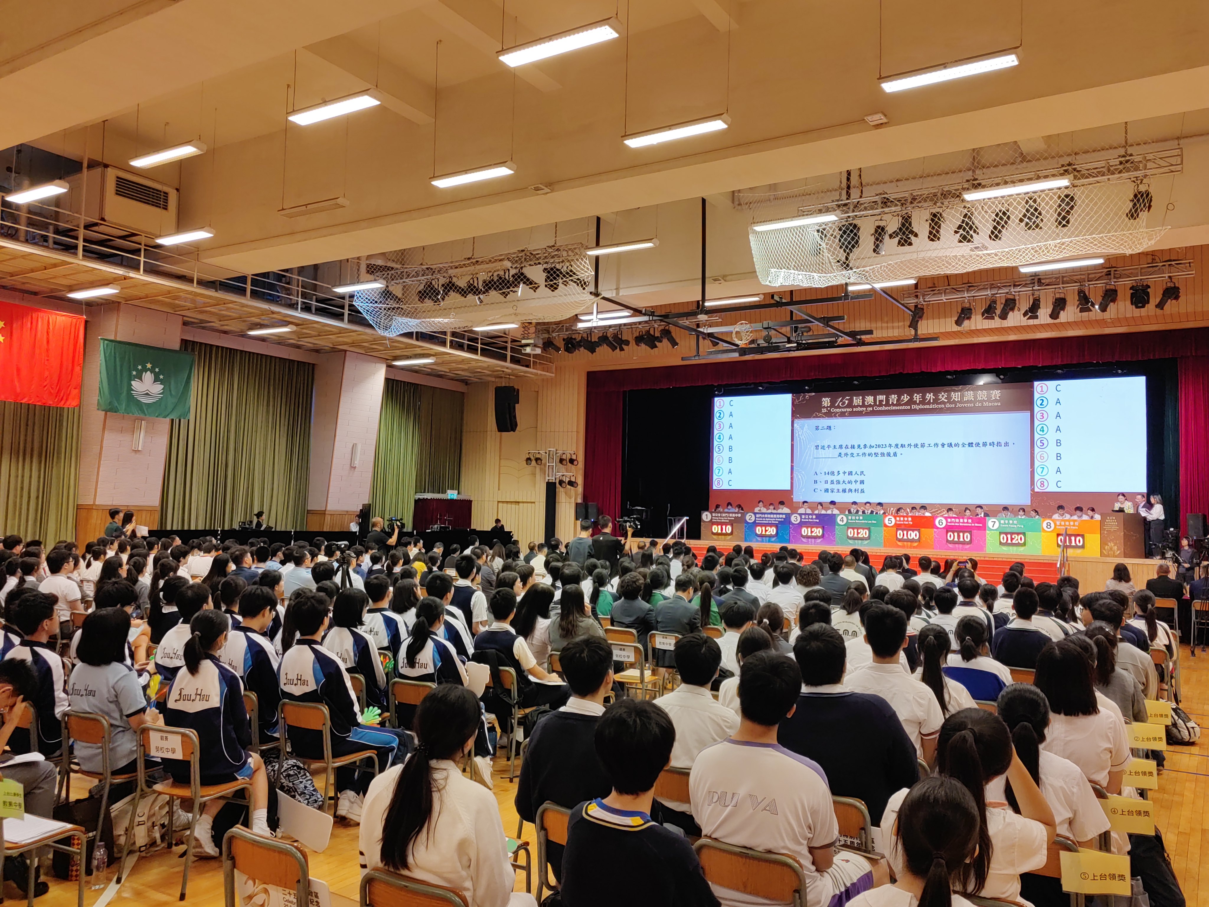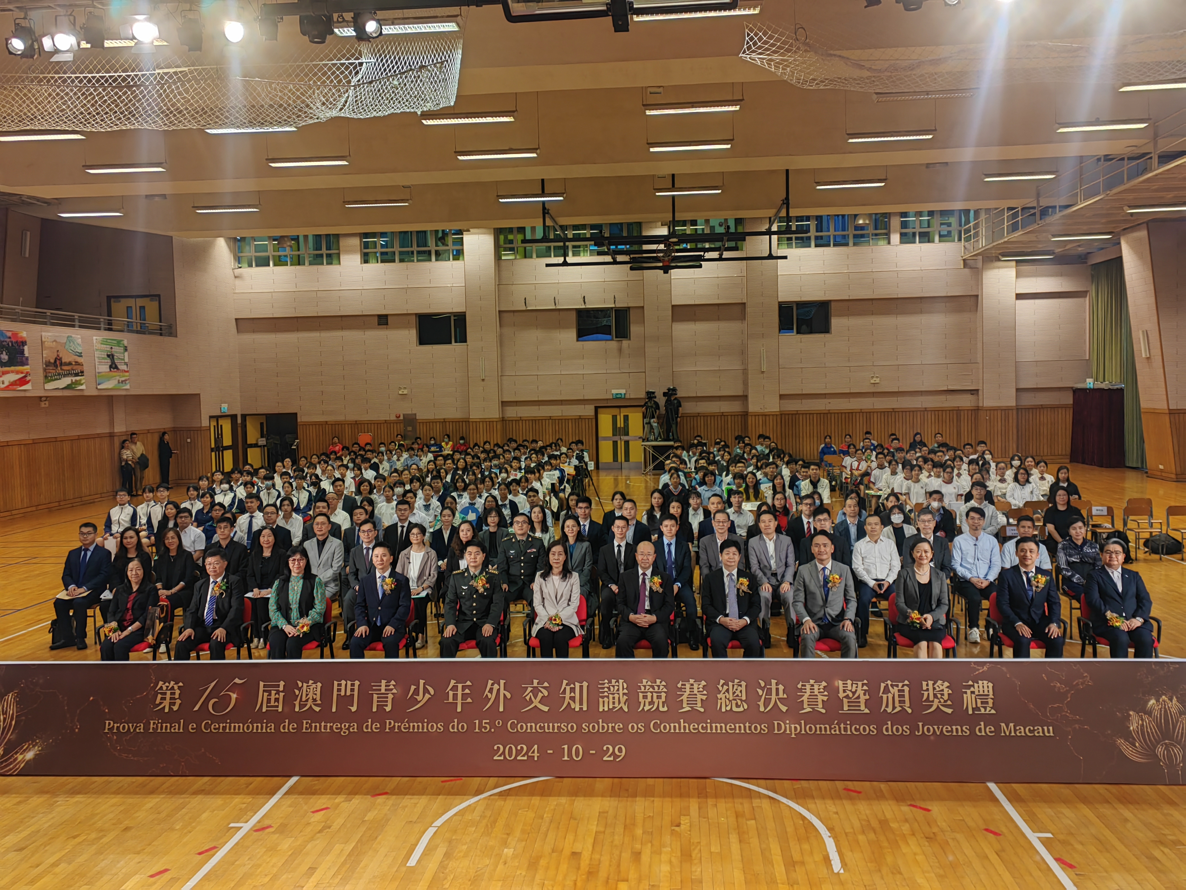 【即時新聞】特區政府及外交公署主辦,教青局承辦的第十五屆澳門青少年外交知識競賽下午假教業中學何賢堂舉行總決賽,8支隊伍從34支參賽隊伍中脫穎而出晉級總決賽,經過激烈競賽,最終獲得冠軍的是教業中學,亞軍、季軍和殿軍的隊伍分別是鏡平學校、勞校中學、濠江中學,獲優異獎的是澳門大學附屬應用學校、聖保祿學校、聖公會(澳門)蔡高中學及澳門坊眾學校。