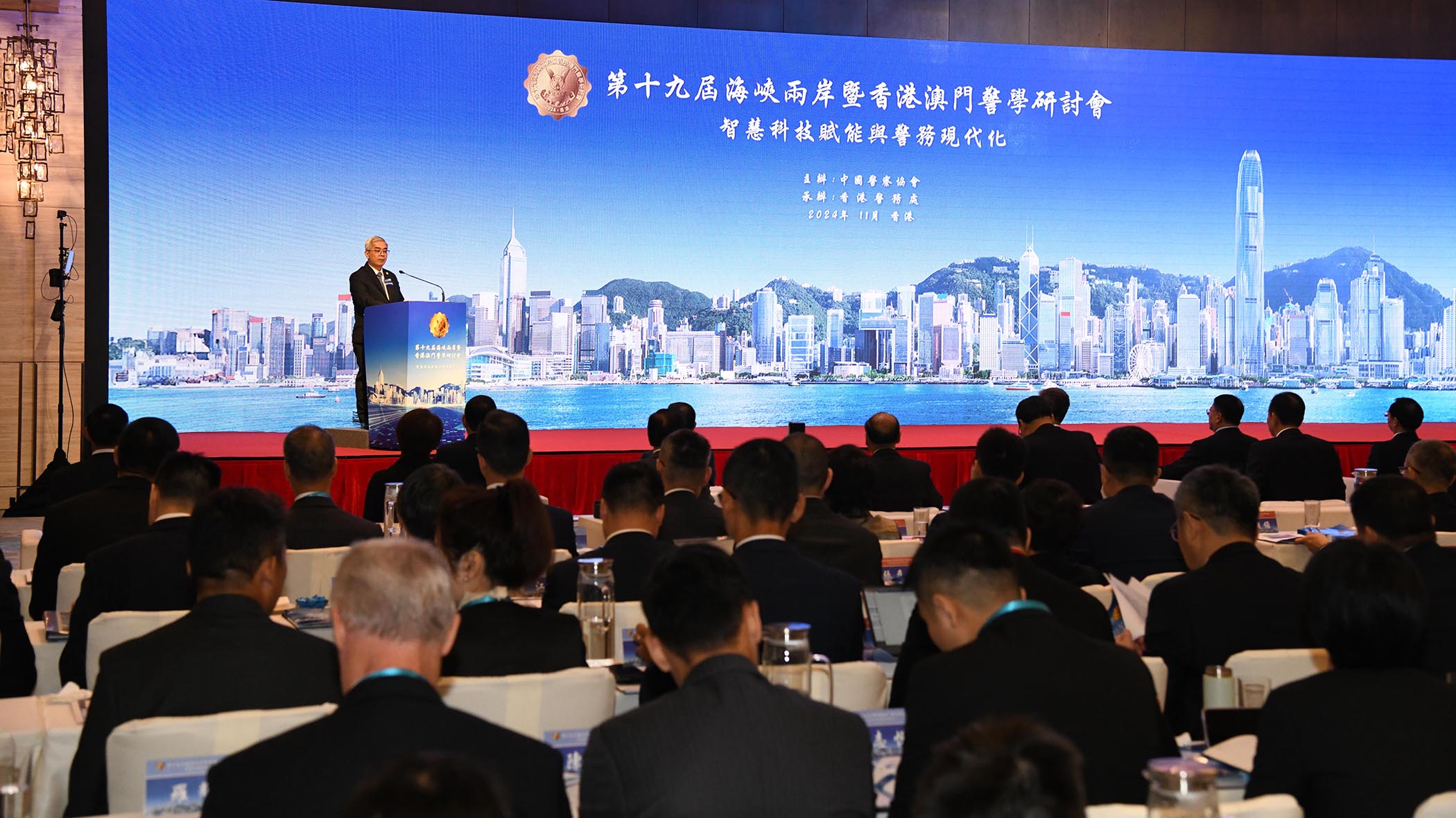 【即時新聞】“第十九屆海峽兩岸暨香港、澳門警學研討會”於11月5日至8日在香港舉行。活動由中國警察協會主辦、香港警務處承辦,中國警察協會會長許甘露、台灣刑事偵防協會理事長辜仲立、理事長黃炳彰、香港警務處處長蕭澤頤、香港入境事務處處長郭俊峯、澳門保安司司長黃少澤以及澳門警察總局局長梁文昌,分別率領來自海峽兩岸及香港、澳門的專家學者及實務工作者共約170人參與,圍繞現今智慧科技的應用,探討警務工作新方向,拓展區際警務合作新里程。