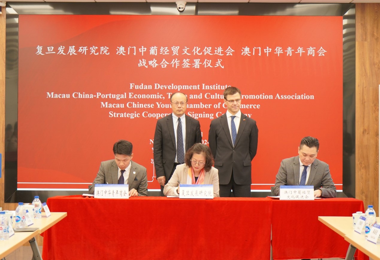 在伯納德秘書長和陳志敏副校長的見證下,復旦發展研究院、澳門中葡經貿文化促進會及澳門中華青年商會三方簽署了《關於設立中國—葡語國家戰略發展中心諒解備忘錄》。中心旨在促進復旦大學與葡語國家之間的全方位合作,並增進中國與葡語國家在多邊合作領域的相互理解和交流。