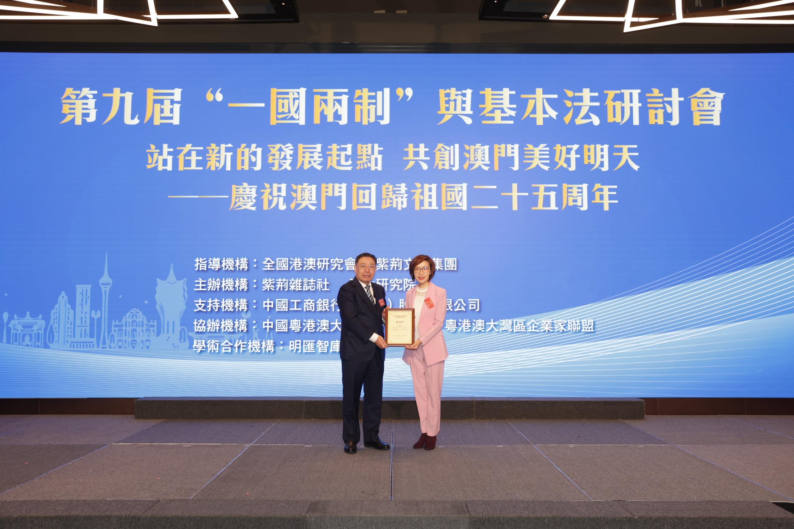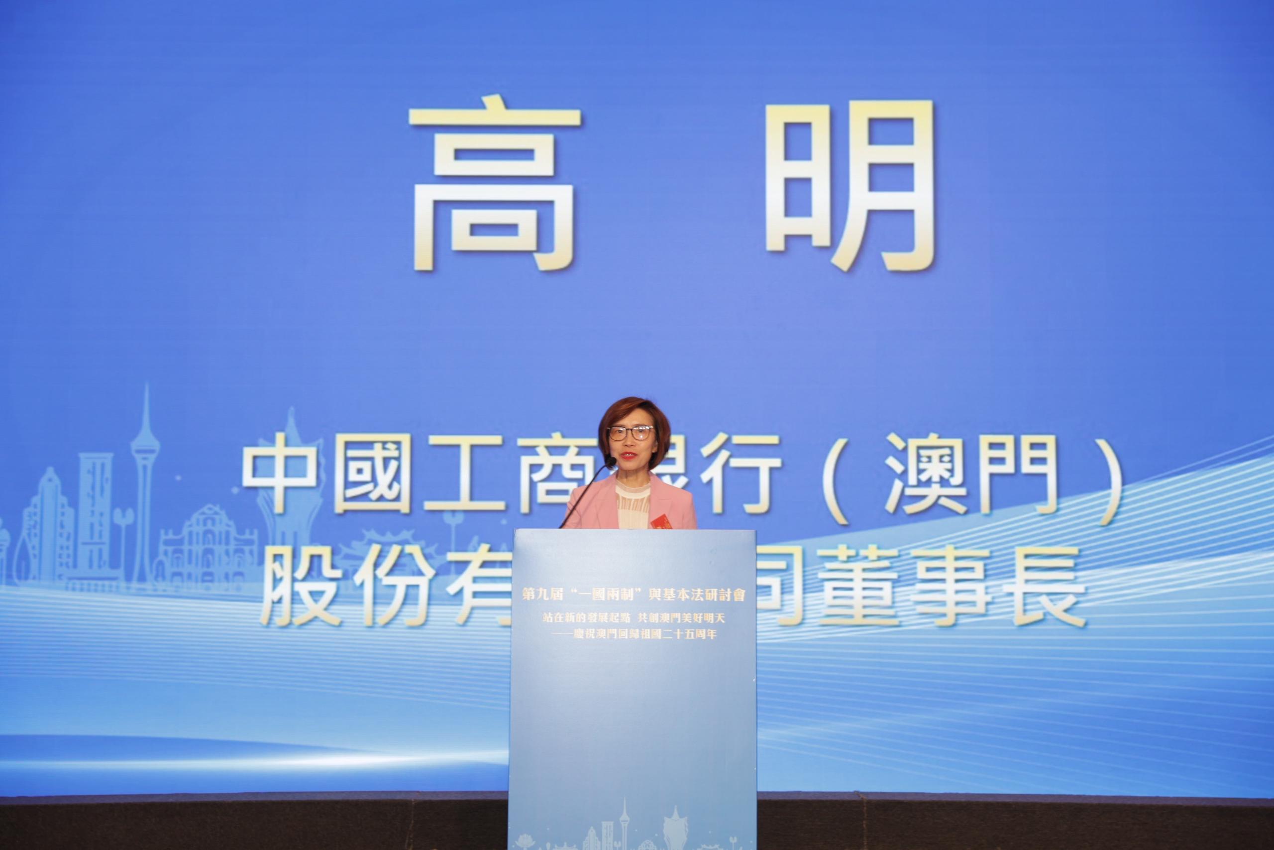 【即時新聞】中國工商銀行(澳門)股份有限公司董事長高明上午出席第九屆“一國兩制”與基本法研討會並致辭表示,澳門回歸25周年的成功實踐充分表明,“一國兩制”具有強大生命力,只有深刻理解和把握“一國兩制”實踐規律,才能確保“一國兩制”事業始終朝著正確方向行穩致遠。展望未來,澳門平台優勢明顯、發展前景廣闊,橫琴粵澳深度合作區更成為制度創新高地,“一國兩制”事業的進一步創新實踐需要社會各界的共同參與。工銀澳門也將堅守“一國”之本、善用“兩制”之利,秉承初心使命、務實擔當作為,繼續譜寫澳門長期繁榮穩定的華彩篇章。