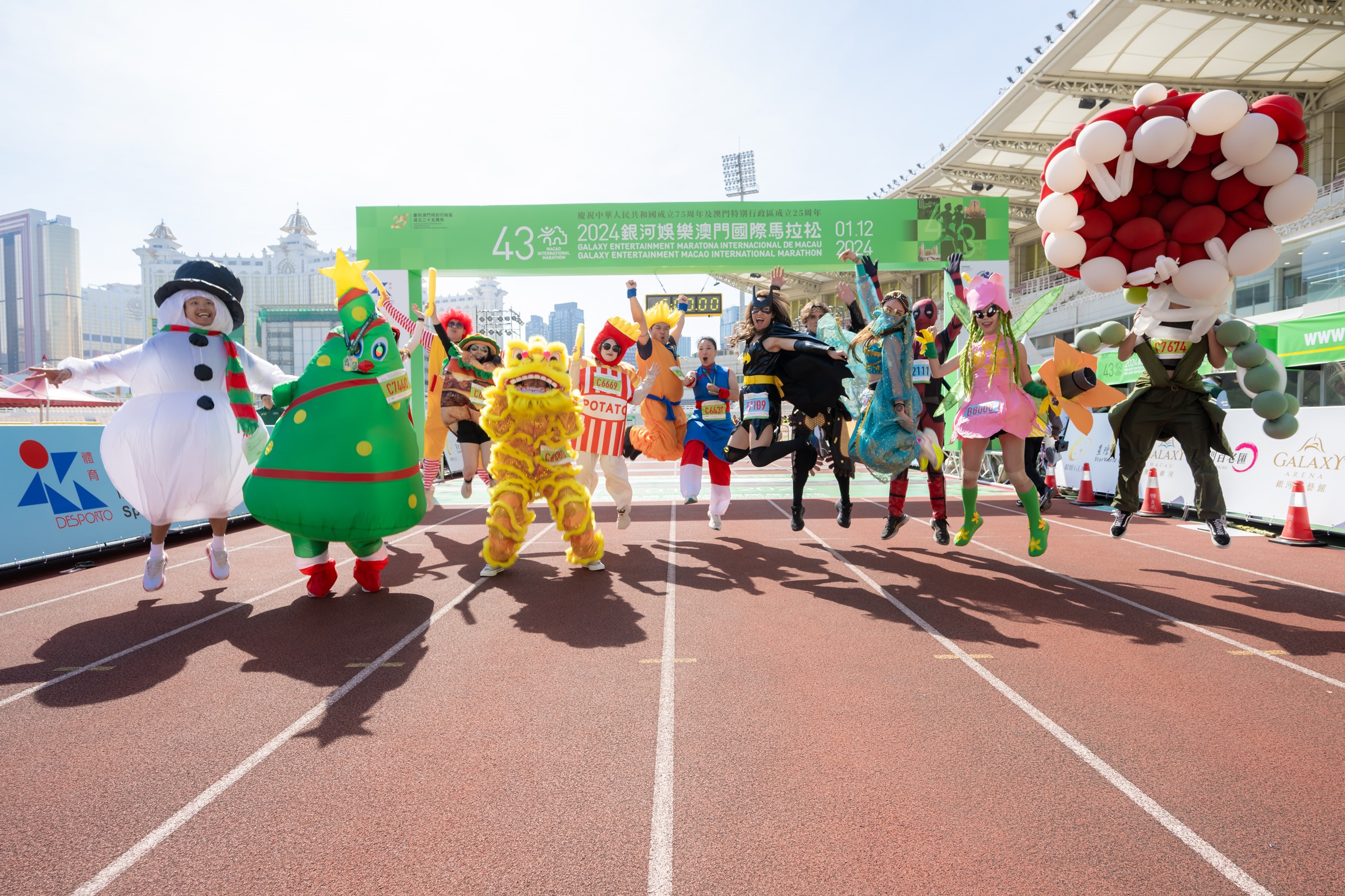 踏入第43 屆的澳門國際馬拉松的馬拉松、半程馬拉松以及迷你馬拉松的路線均途經「澳門銀河™」綜合度假城,而馬拉松路線繼續途經嘉樂庇總督大橋及西灣大橋,全長42.195公里。賽事於上午六時展開,並由體育局局長張子軒、銀河娛樂集團企業事務董事林志成、澳門田徑總會理事長陳步倩、銀河娛樂集團首席營運總監-澳門祈嘉杰主持鳴槍起跑儀式。