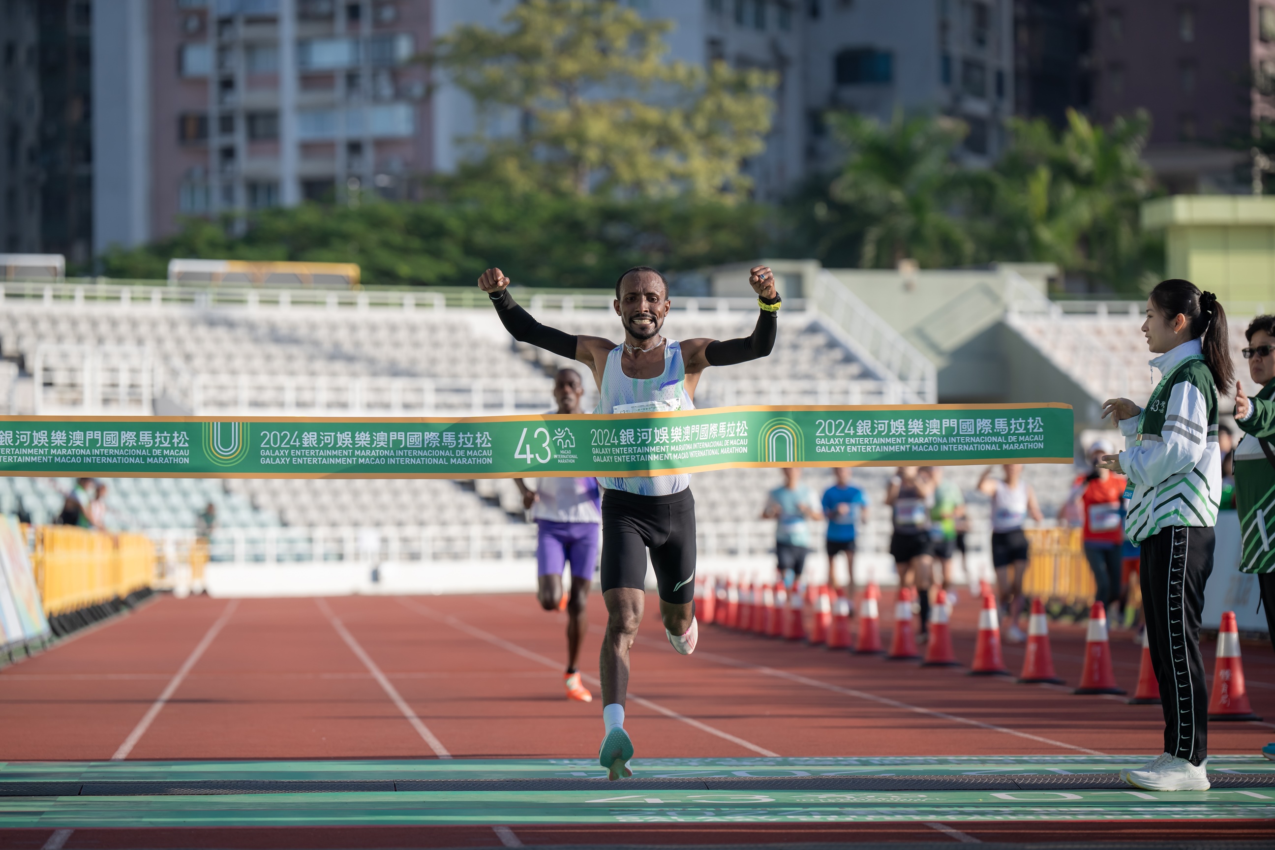 【即時新聞】由體育局、銀河娛樂集團及澳門田徑總會主辦的「慶祝中華人民共和國成立75周年及澳門特別行政區成立25周年 - 2024銀河娛樂澳門國際馬拉松」今(1)日於奧林匹克體育中心運動場圓滿舉行,馬拉松男子全程組別,來自埃塞俄比亞的狄比尼勇奪冠軍,成功衛冕,女子全場組別由俄羅斯莫素娃封后;而王坤則贏得馬拉松澳門運動員男子組的冠軍,更刷新澳門紀錄,澳門運動員女子組冠軍由吳楊楊勇奪。