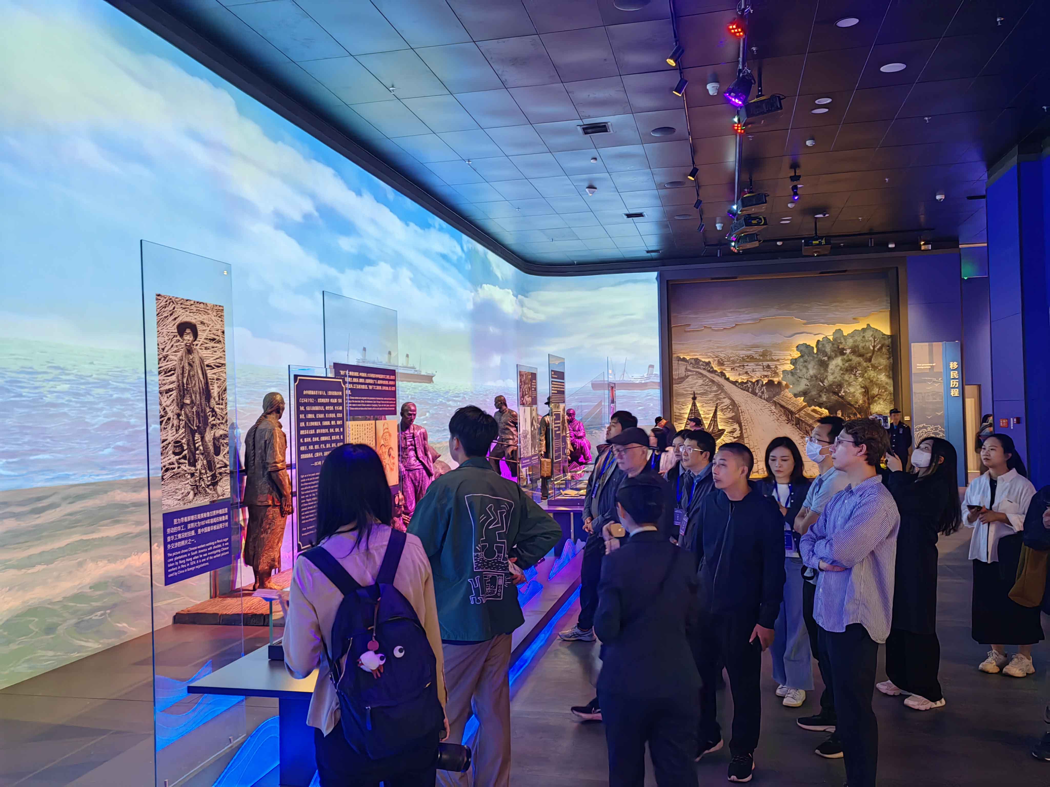 媒體一行跟隨著講解員的步伐參觀博物館,伴隨一件件珍貴文物、照片,栩栩如生大型浮雕及場景,彷彿穿梭時空隧道,回到華人僑華華人在海外篳路藍縷、玉汝於成的崢嶸歲月,深切體悟海外僑胞愛國愛鄉報效祖國的情懷。