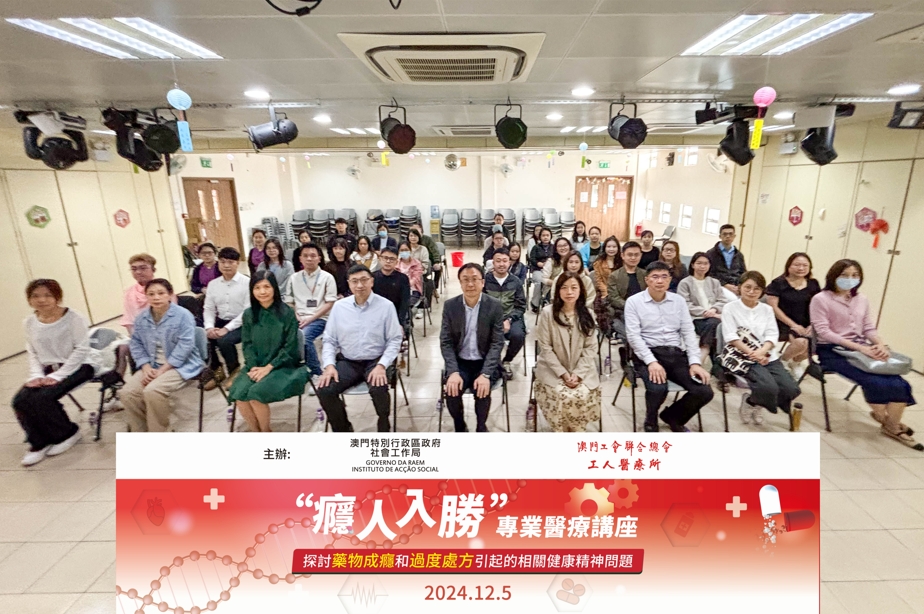 【即時新聞】日前由澳門特別行政區政府社會工作局與澳門工會聯合總會工人醫療所合辨『癮』人入勝:探討藥物成癮和過度處方引起的相關健康精神問題的專業醫療講座,於工聯台山社區中心舉行,是次講座吸引超過500名醫護人員及社工報名,講座現場線上線下同步進行。