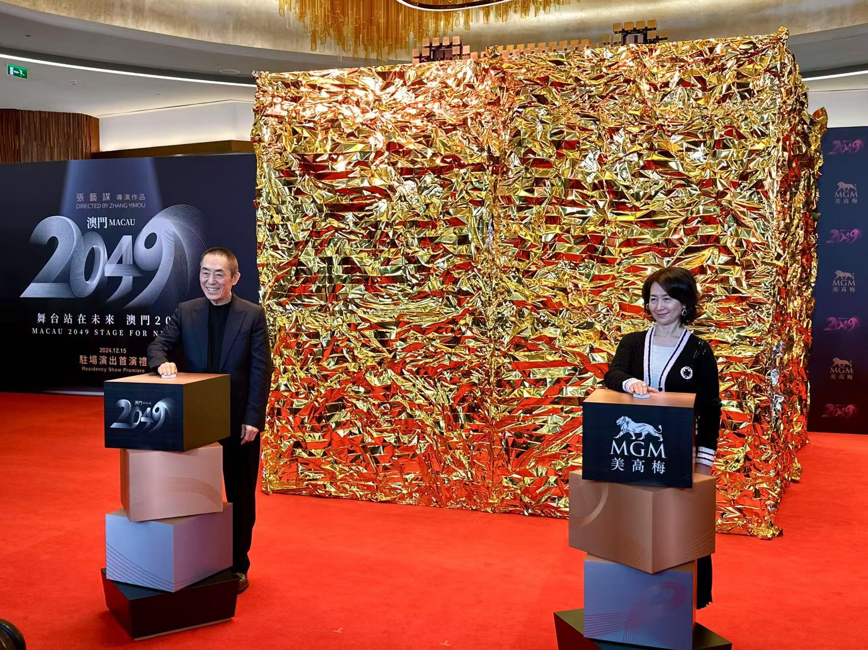 首演禮上,美高梅中國控股有限公司董事長及執行董事何超瓊與張藝謀導演一同為《澳門2049》全球首演進行揭幕儀式。《澳門2049》的開演,給中國非遺提供了一個世界級的展示視窗,也給全世界一個多樣文化交流的創新舞台,進一步打造澳門成為「演藝之都」,更為澳門文旅產業的發展注入新動能。
