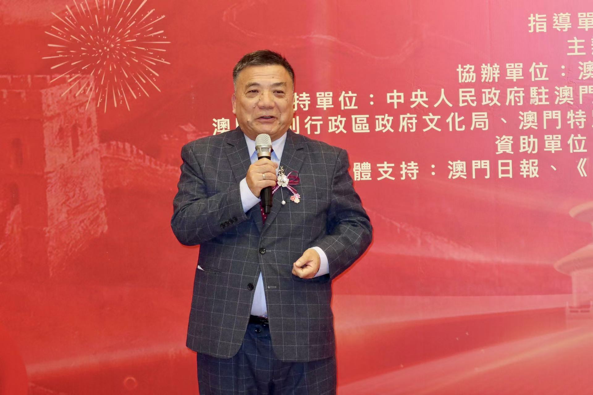 劉富業致辭表示,賞心堂(澳門)書畫會長期以來不懈努力,默默奉獻於澳門的文化事業。過去在澳門回歸一周年、五周年、十周年、十五周年及二十周年均舉辦過大型展覽,以及均邀請時任行政長官主禮,為澳門的文化繁榮添上濃墨重彩的一筆。值慶祝澳門回歸二十五周年大型展覽之際,再次獲行政長官賀一誠出席與主禮,倍感榮幸。同時感謝遠道而來參展的藝術家們,包括來自新疆的薛雲祥、來自首都北京及粵港澳大灣區多個城市的藝術家等,豐富了展覽的內涵,協力促進文化藝術的交流與融合。展望未來,賞心堂將繼續秉持初心,砥礪前行,為澳門的文化事業貢獻更多力量。