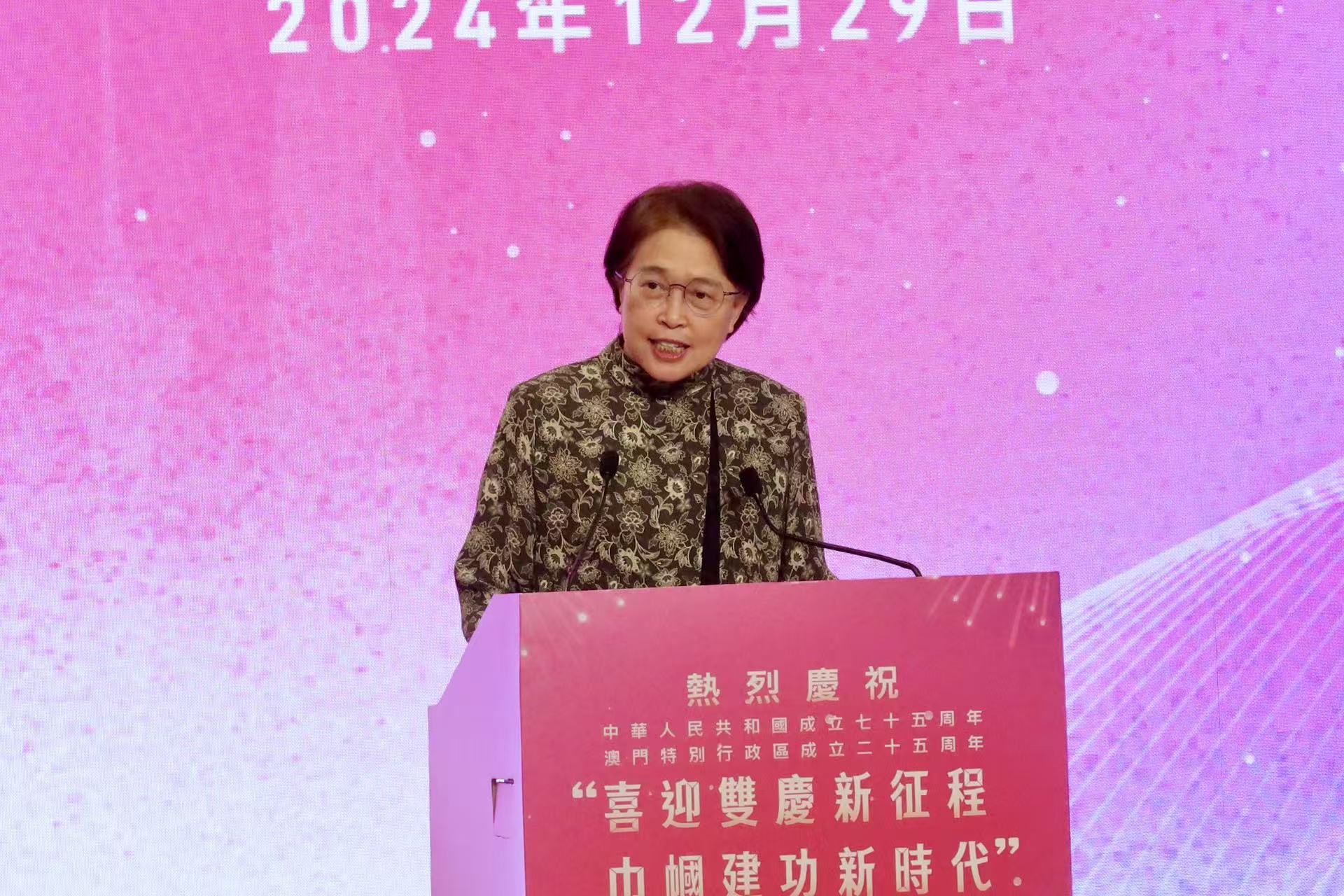【即時新聞】澳門婦女界賀雙慶籌備委員會「喜迎雙慶新征程 巾幗建功新時代」聯歡晚會今晚在旅遊塔舉行。全國婦聯黨組書記、副主席、書記處第一書記黃曉薇出席並致辭表示,即將步入2025,新的一年,相信有習主席的掌舵領航、中央政府和祖國內地的大力支持,岑浩輝行政長官和新一屆特區政府團結帶領,澳門社會各界定能打開發展的新天地,續寫「一國兩制」成功實踐的新篇章。
