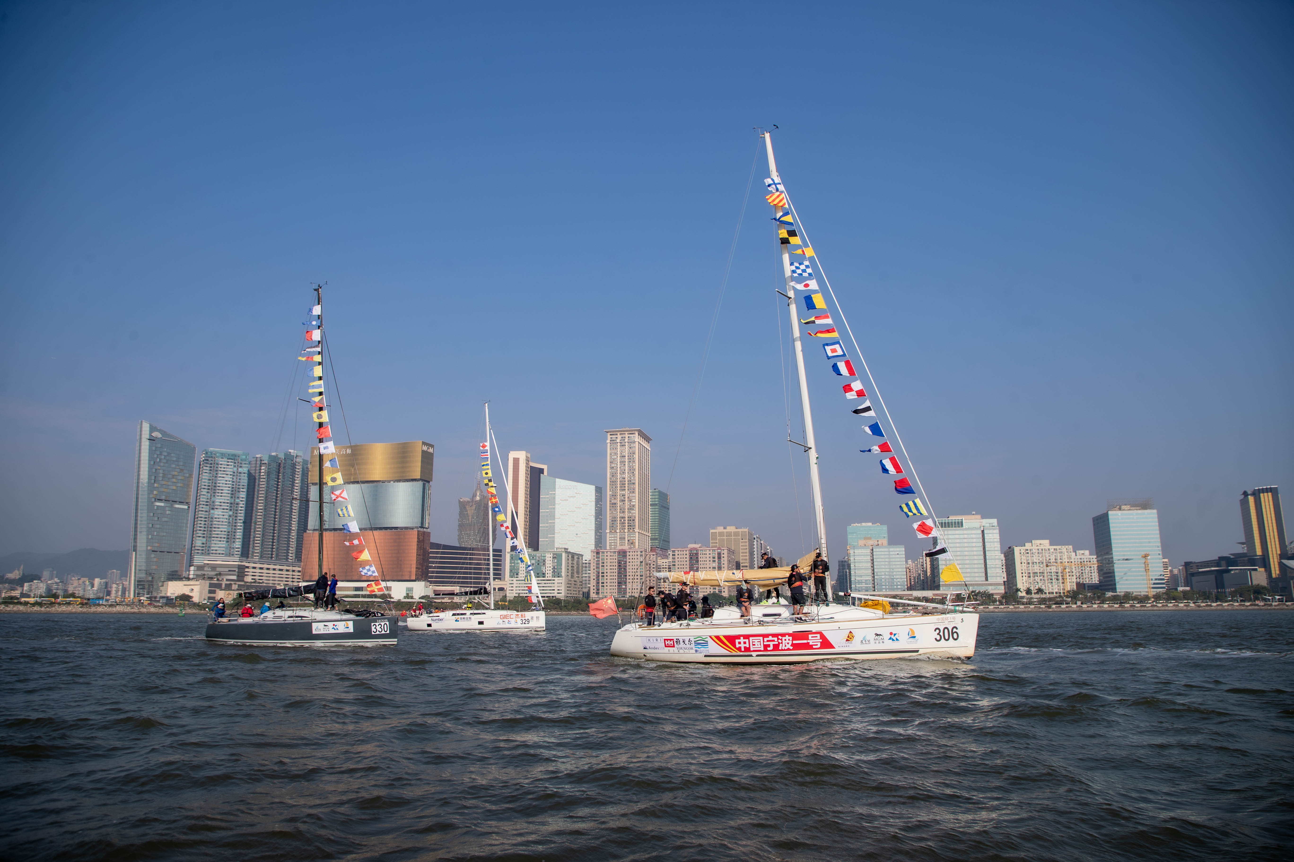 【即時新聞】由澳門特別行政區政府體育局、美高梅及北斗星航海賽事管理主辦,澳門特別行政區政府海事及水務局、澳門風帆船總會協辦,珠海市文化廣電旅遊體育局支持,並與世界帆船對抗巡迴賽合作的「2025美高梅澳門國際帆船賽」今(9)日進行第二日賽事,並假澳門漁人碼頭舉行鳴笛儀式。