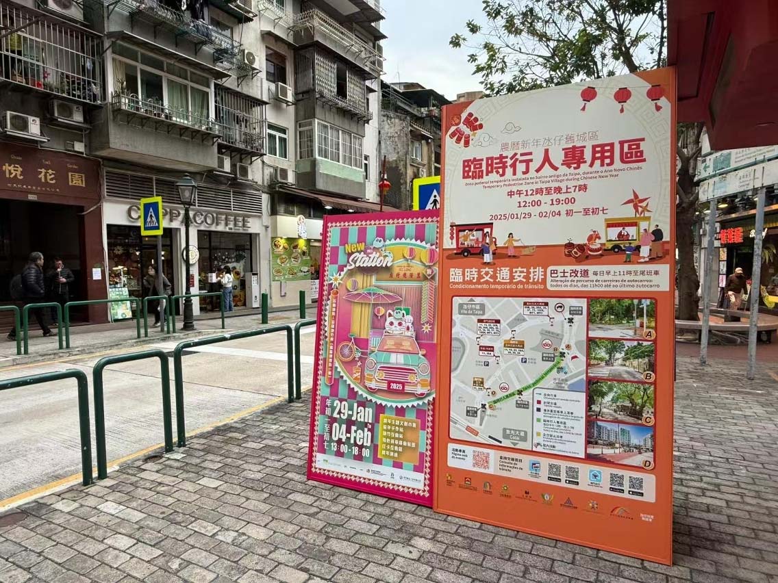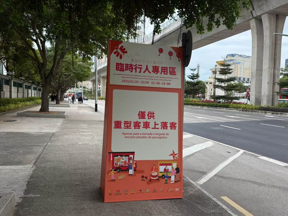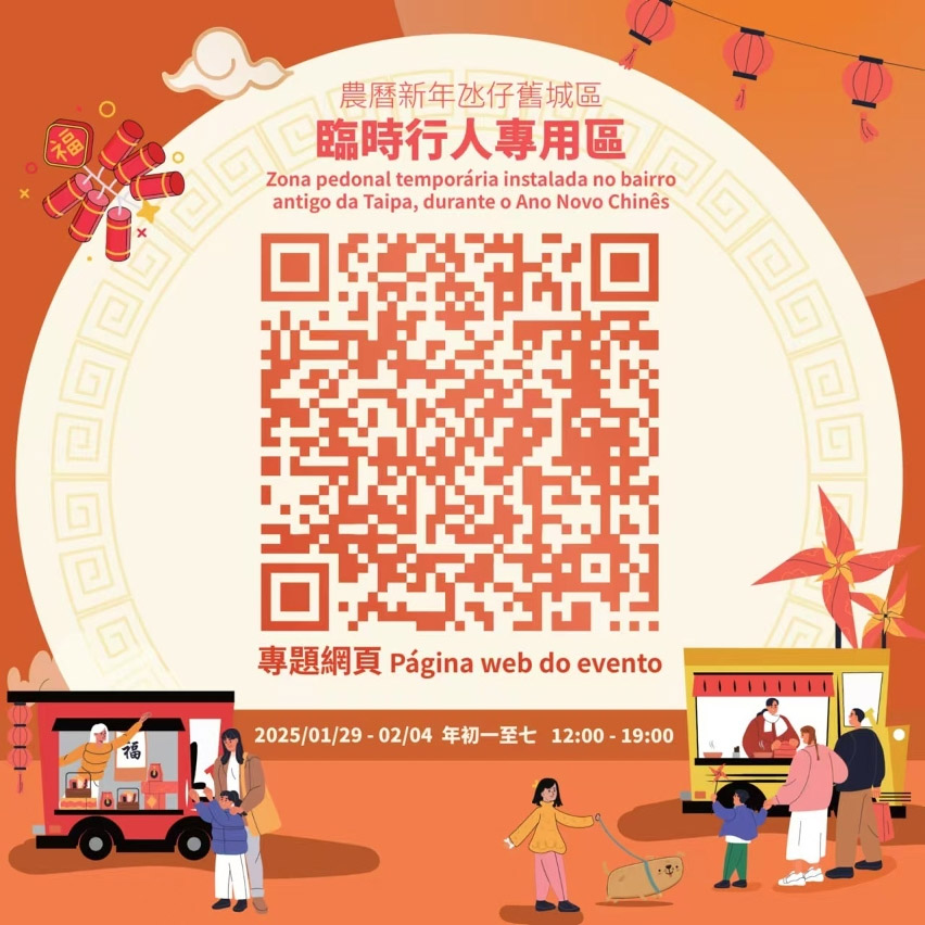 臨時行人專用區將於1月29日至2月4日(年初一至年初七)每日中午12時至晚上7時,在氹仔舊城區設置。範圍由飛能便度街與素啤古街交界(嘉模泳池巴士站前),至告利雅施利華街與巴坡沙總督街交界(路氹歷史館),當中包括兵房斜巷至嘉路士米耶馬路部分路段。