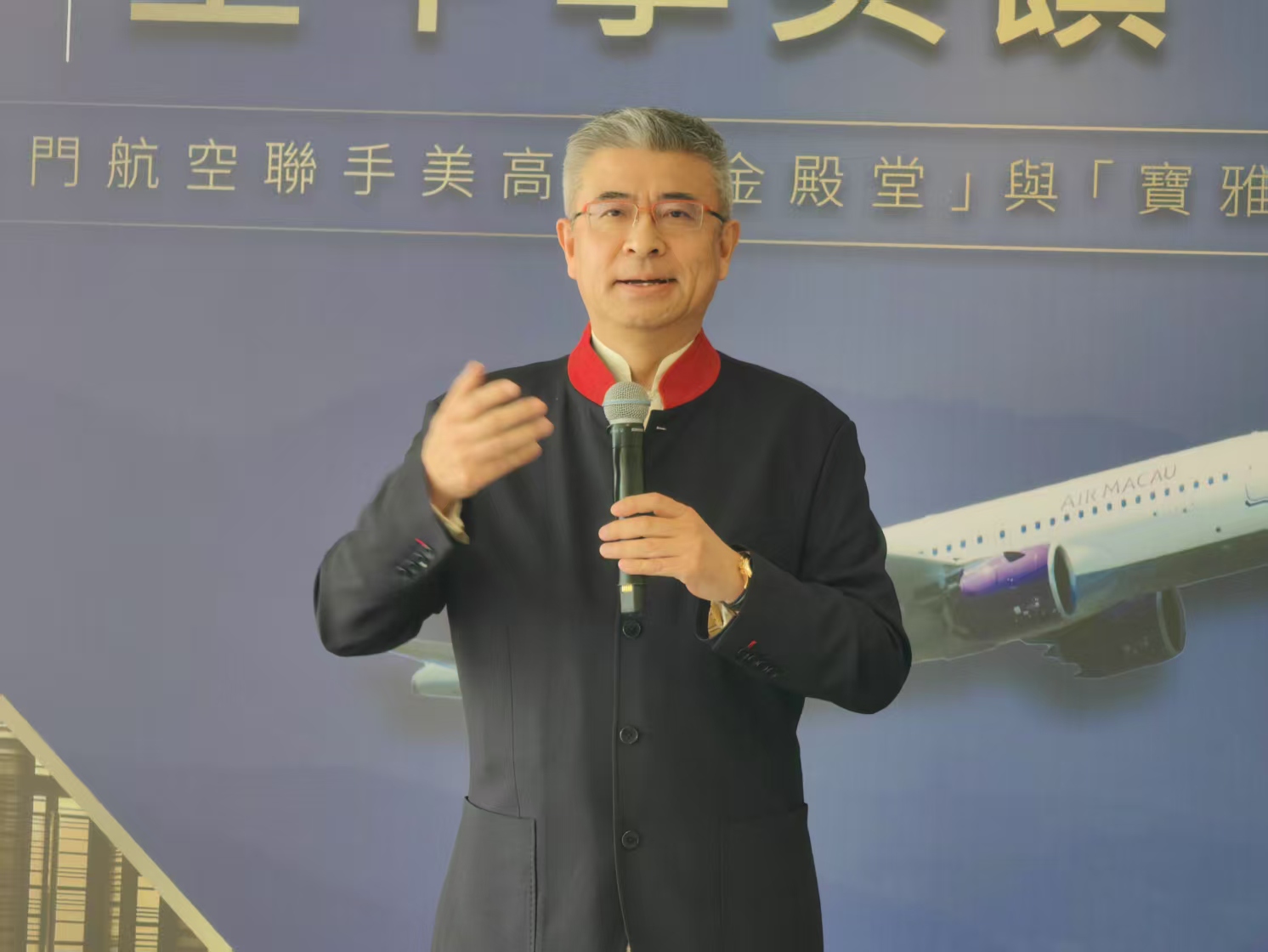 王志琪致辭表示,很高興與澳航合作打造了三十六道菜式,讓乘客在萬呎高空品嚐東西融合的佳餚,將美高梅餐飲服務帶到更多地方,將澳門作為美食之都的輻射面擴廣,為澳門國際化旅遊添磚加瓦。