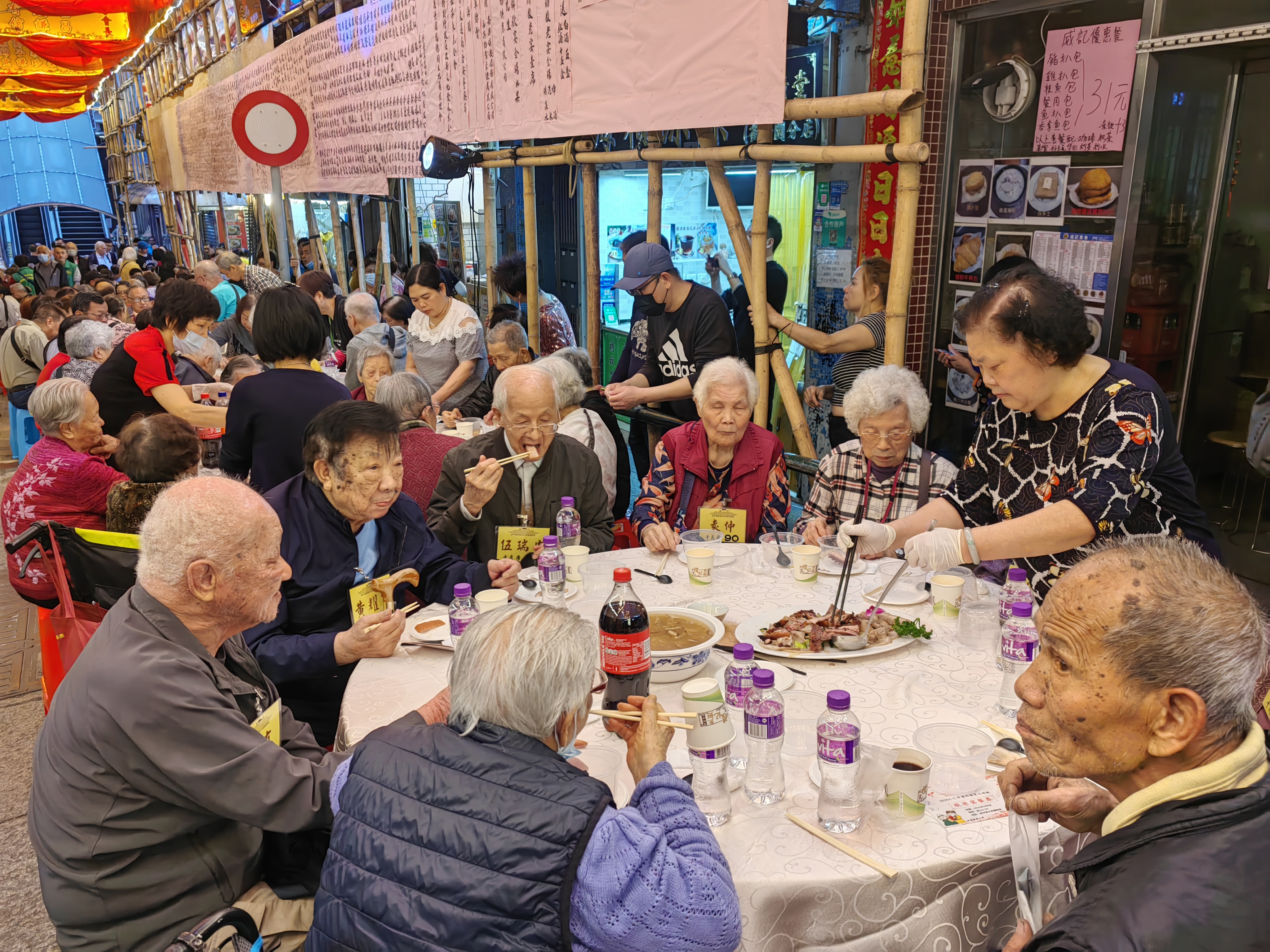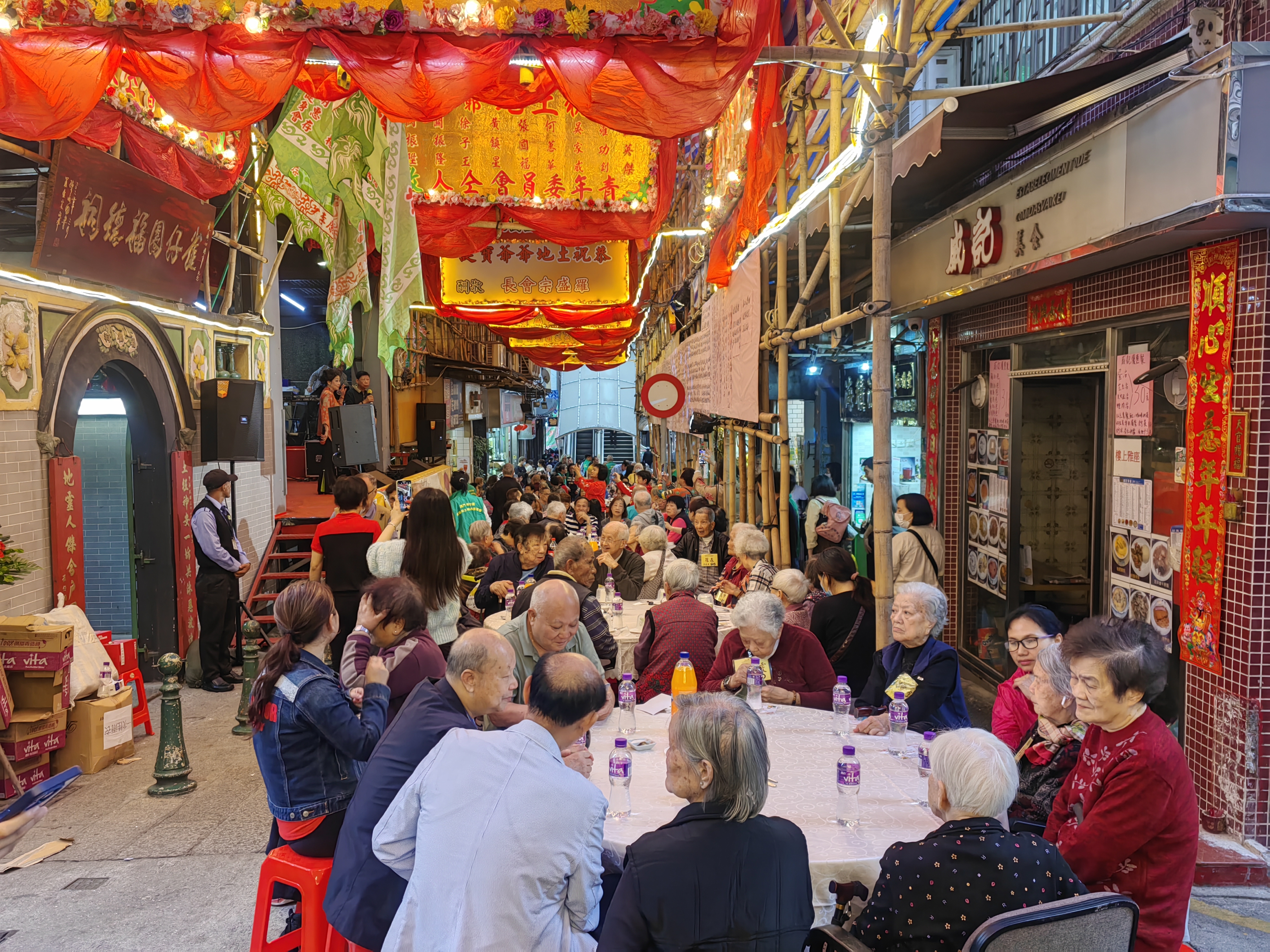 【即時新聞】雀仔園福德祠土地廟值理會慶祝土地誕,在雀仔園一帶街道設105席敬老街宴,招待區內長者,逾千人出席。活動上有曲藝表演,並向全場長者派發敬老利是及福袋,主辦方期望藉此宣傳土地信俗及敬老護老美德。