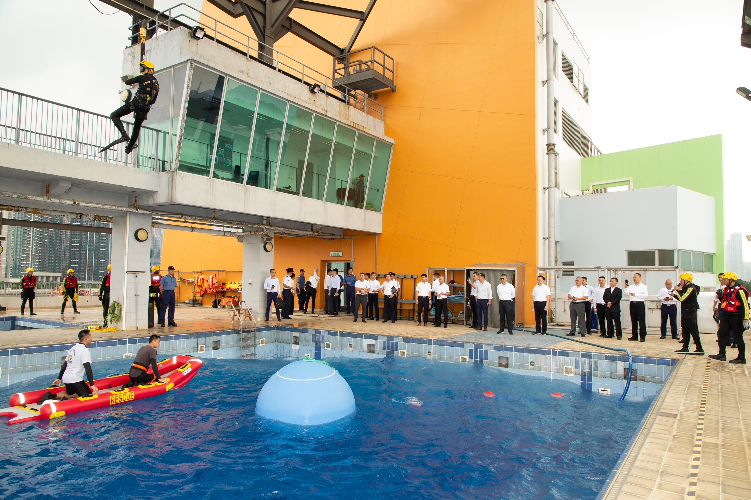 會議期間,粵澳代表團參觀了香港消防處消防救護學院、政府飛行服務隊、香港消防處潛水基地及其他大型救援設施設備等。
