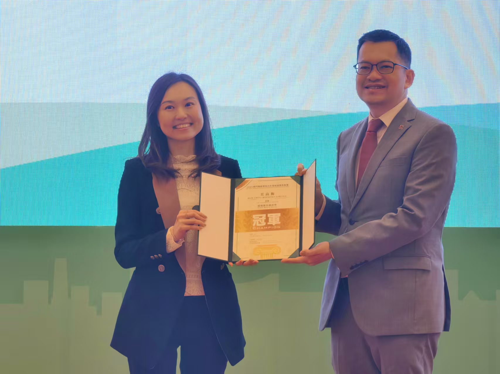 頒獎禮徬晚六時假威尼斯人佛羅倫斯宴會廳舉行,中聯辦經濟部副部長李華英,招商局主席余雨生,環保局副局長許志樑,橫琴深合區經發局文旅會展商貿處處長林衍杰,生產力暨科技轉移中心理事長關治平等出席。