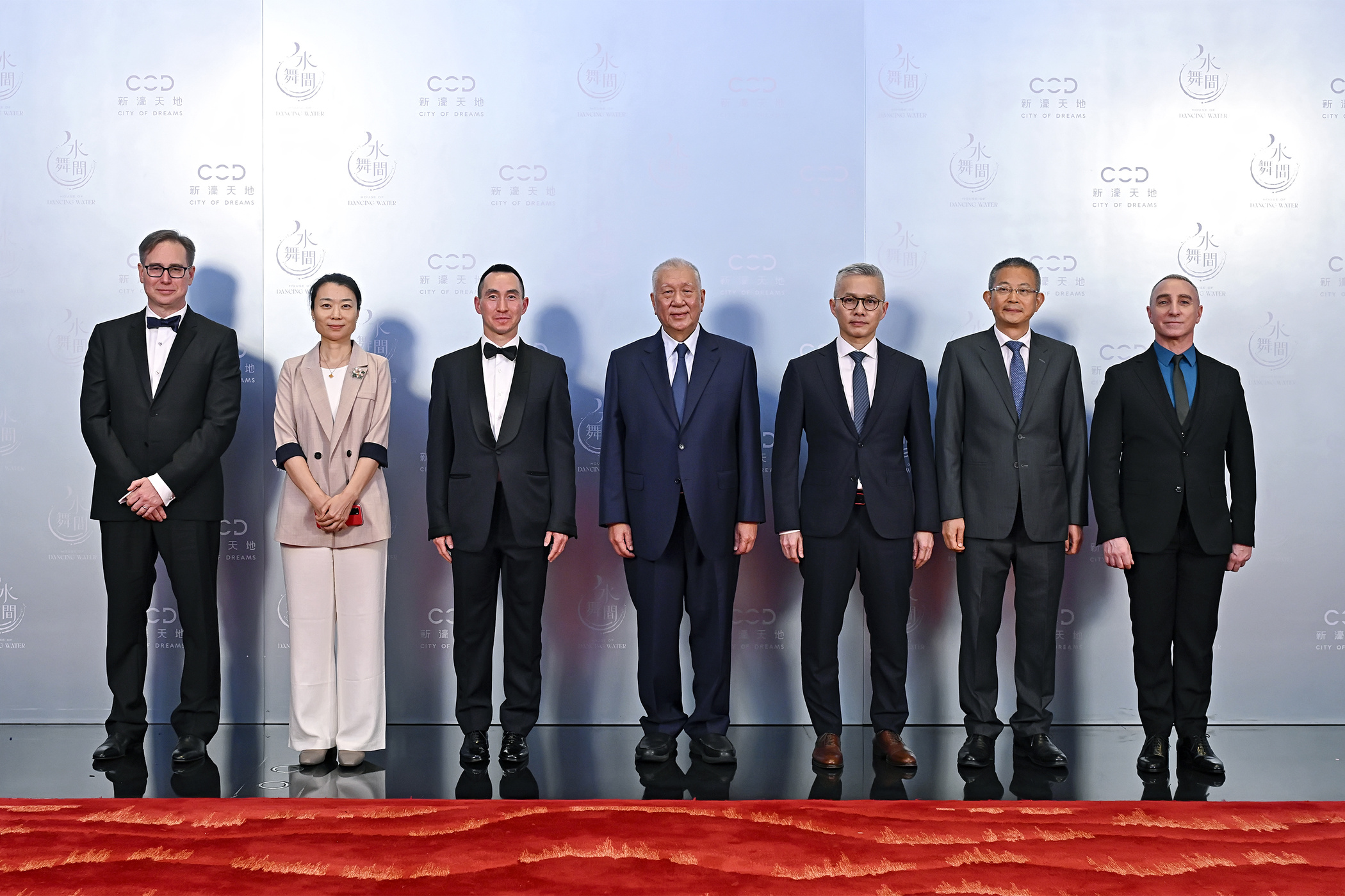 《水舞間》新章首演今晚七時在新濠天地舉行,全國政協副主席何厚鏵、經濟財政司司長戴建業、澳門中聯辦宣傳文化部副部長白冰、外交公署領事部主任林如海、新濠博亞娛樂有限公司主席兼行政總裁何猷龍出席。