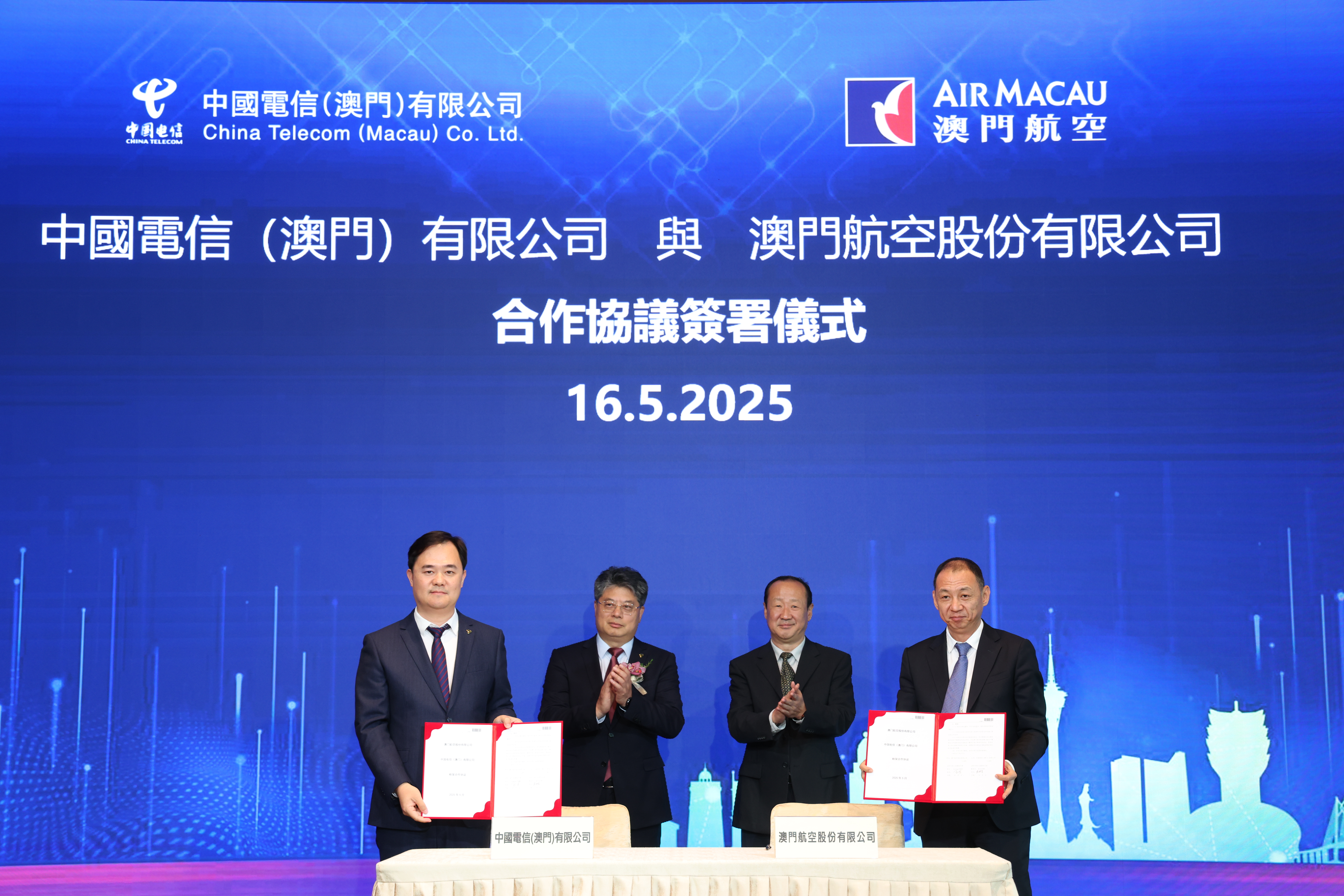 活動現場,中國電信(澳門)與兩家本地企業簽署戰略合作協議:與澳門通集團合力打造「通訊+金融」融合服務,圍繞智能交通、跨境支付等場景展開合作,提升居民與旅客的數字生活體驗;與澳門航空公司攜手構建「出行+通訊」文旅生態,在用戶運營、數字升級與服務創新方面協同發展,助力打造澳門國際旅遊休閒中心。