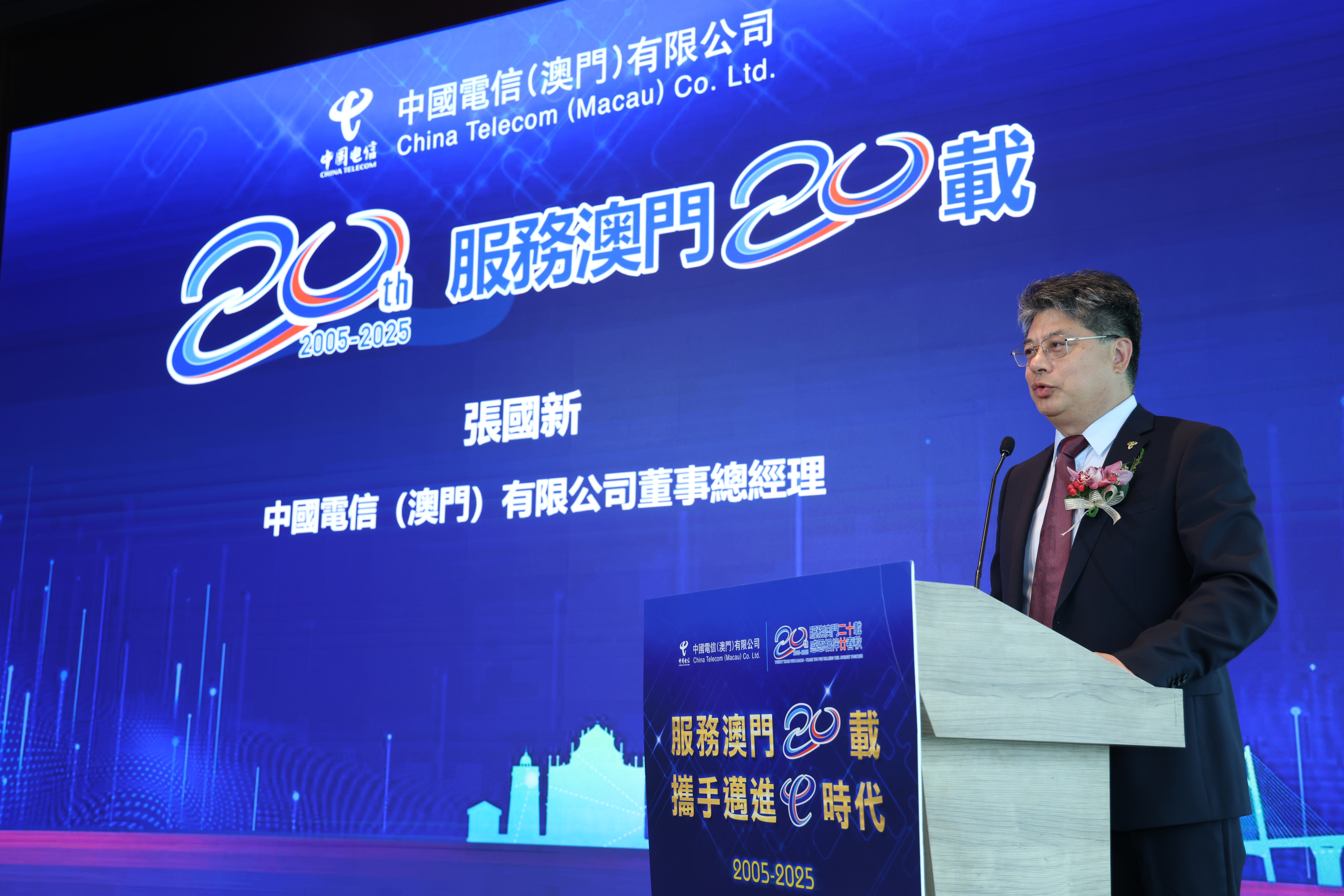 【即時新聞】中國電信(澳門)有限公司今日假澳門旅遊塔舉行「服務澳門二十載,攜手邁進e時代」二十周年慶典暨創新服務發佈會。活動回顧企業深耕本地、服務民生的發展歷程,並發佈系列全新服務以及現場與合作夥伴簽署相關合作協議。