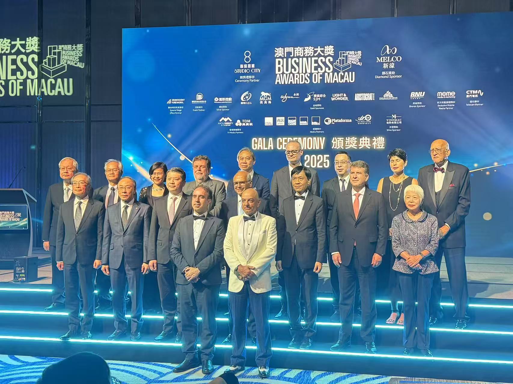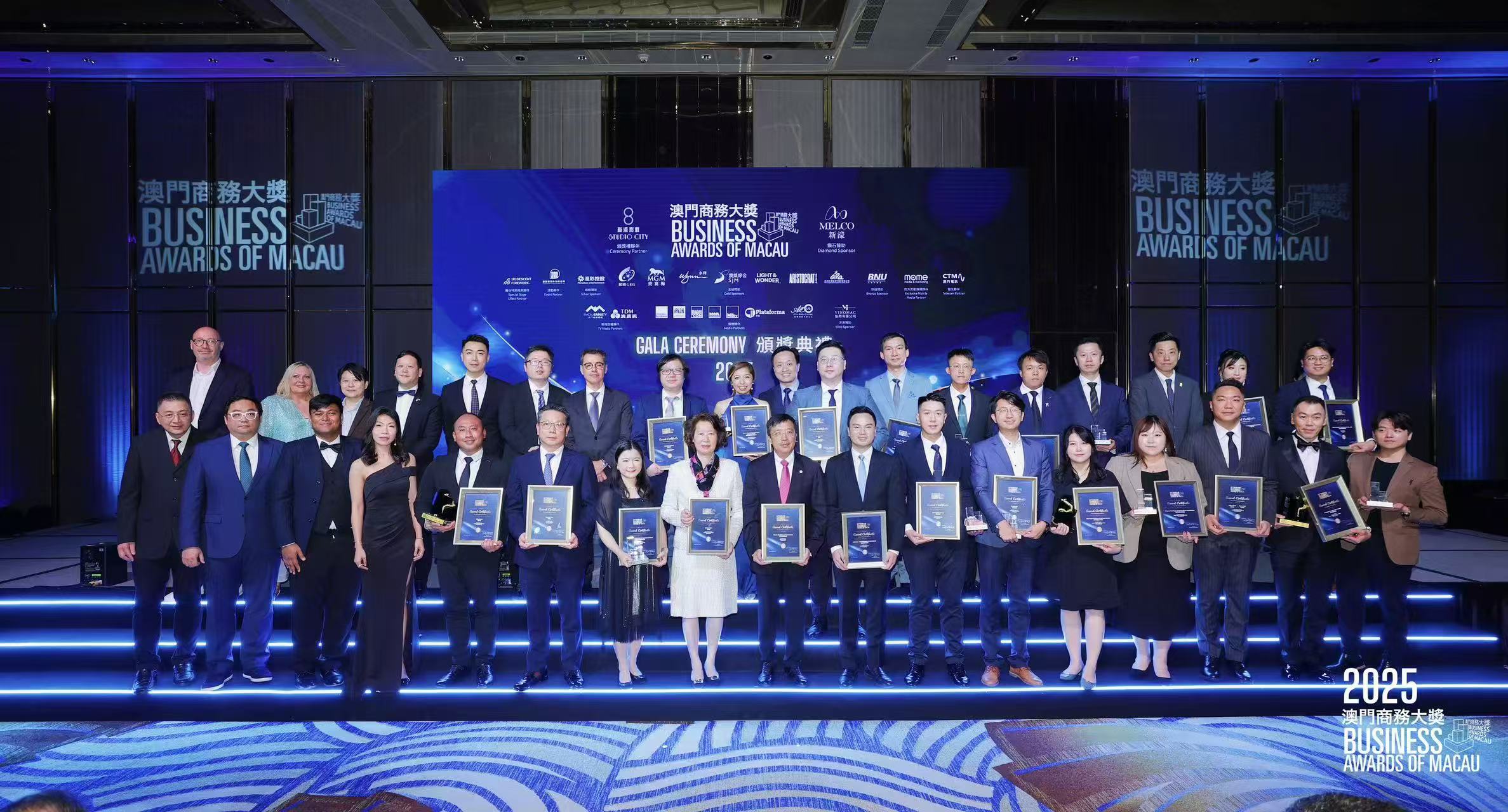 【即時新聞】由MB簽名-活動有限公司及澳門商務讀者慈善會主辦的第八屆澳門商務大獎今晚舉行頒獎典禮暨晚宴,作為澳門首創旨在激勵並表彰各行各業企業的優秀卓越成就盛事,本屆吸引近250名政商人物參與。現場揭曉12項金獎殊榮,其中中華總商會勇奪最高榮譽「卓越優異大獎」金獎。