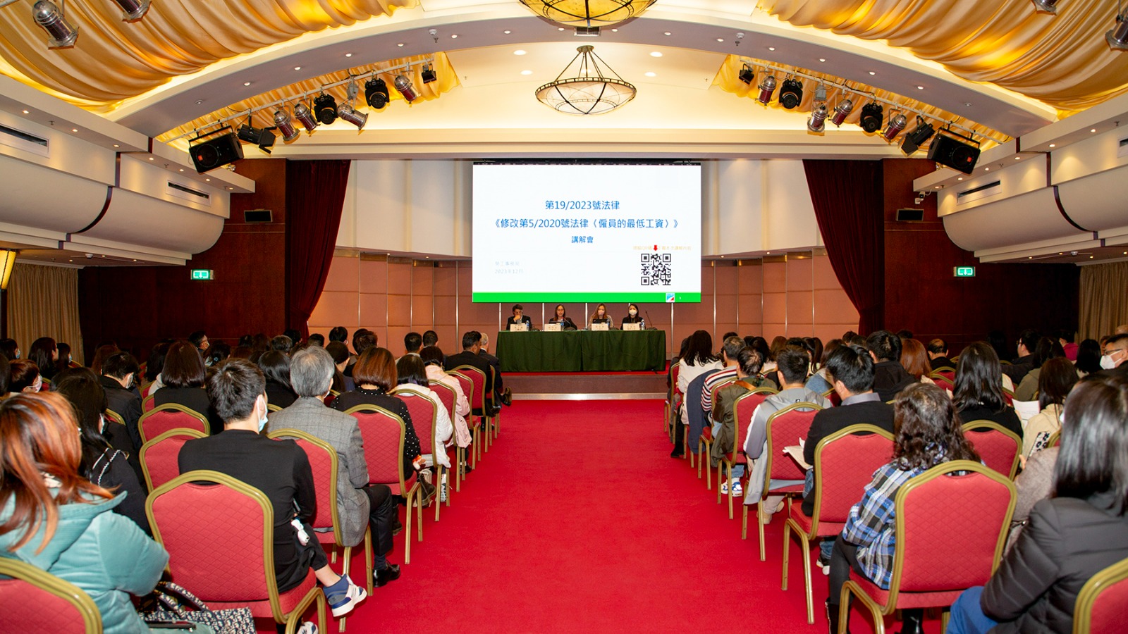 由12月18日截至12月底,勞工局共進行了7場拜訪,參與人數約160人;1場行業專場講解會及1場公眾場講解會,兩場講解會合共約160人出席,以及到40間商戶進行現場法律宣導,涉及飲食、零售、保安及清潔等行業。