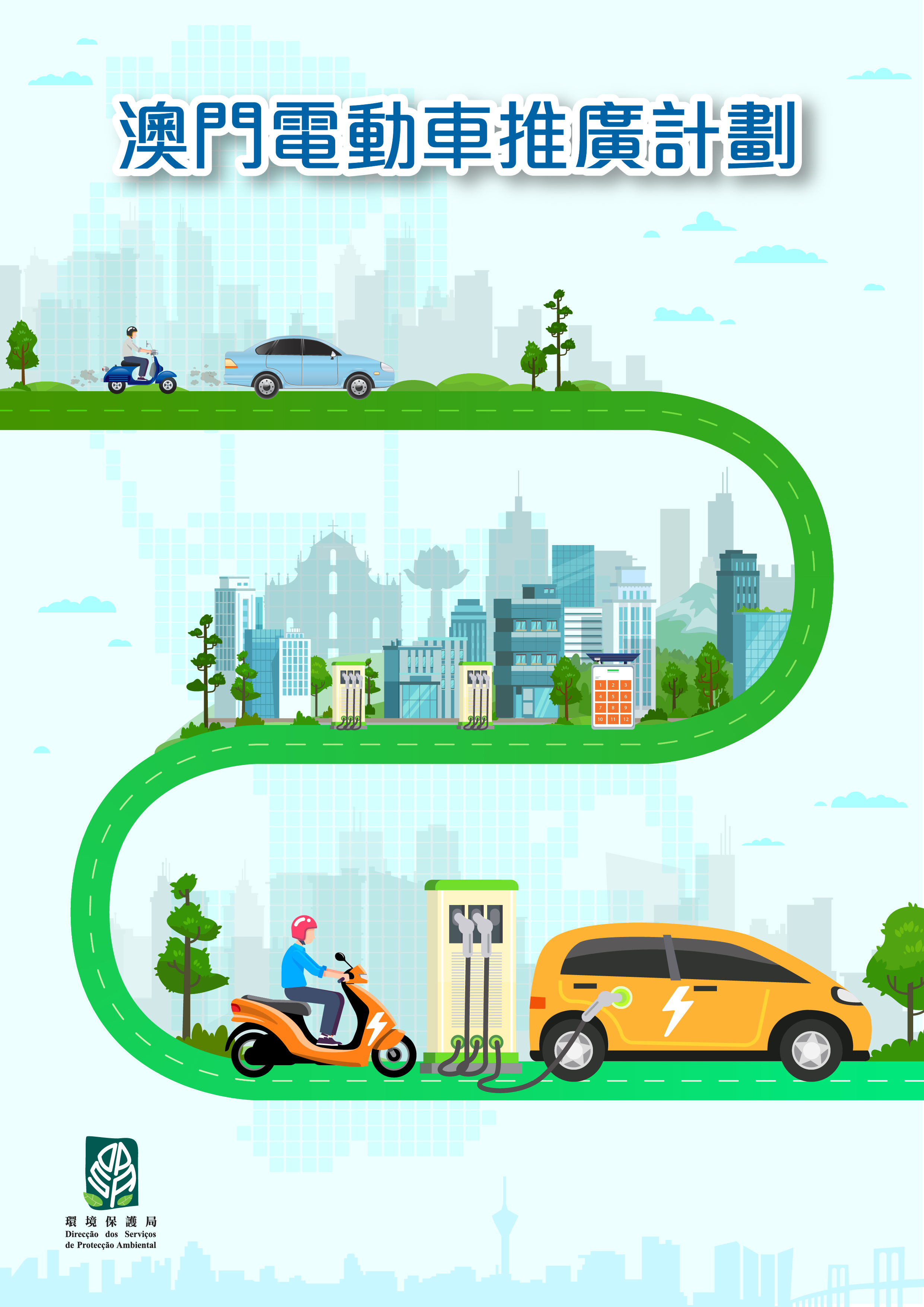 其中,“陸上交通綠色轉型"的減碳目標是推動陸上交通運輸領域在2050年前達至近零排放,為此,環保局進一步制訂相關專項計劃—《澳門電動車推廣計劃》,爭取於2035年實現新登記零排放輕型汽車及電單車(電動車或其他技術)的比例達到100%,讓社會各界及早了解未來電動車的推廣路向及目標。
