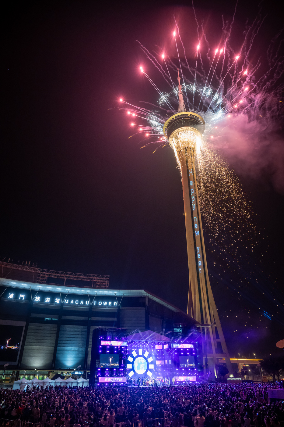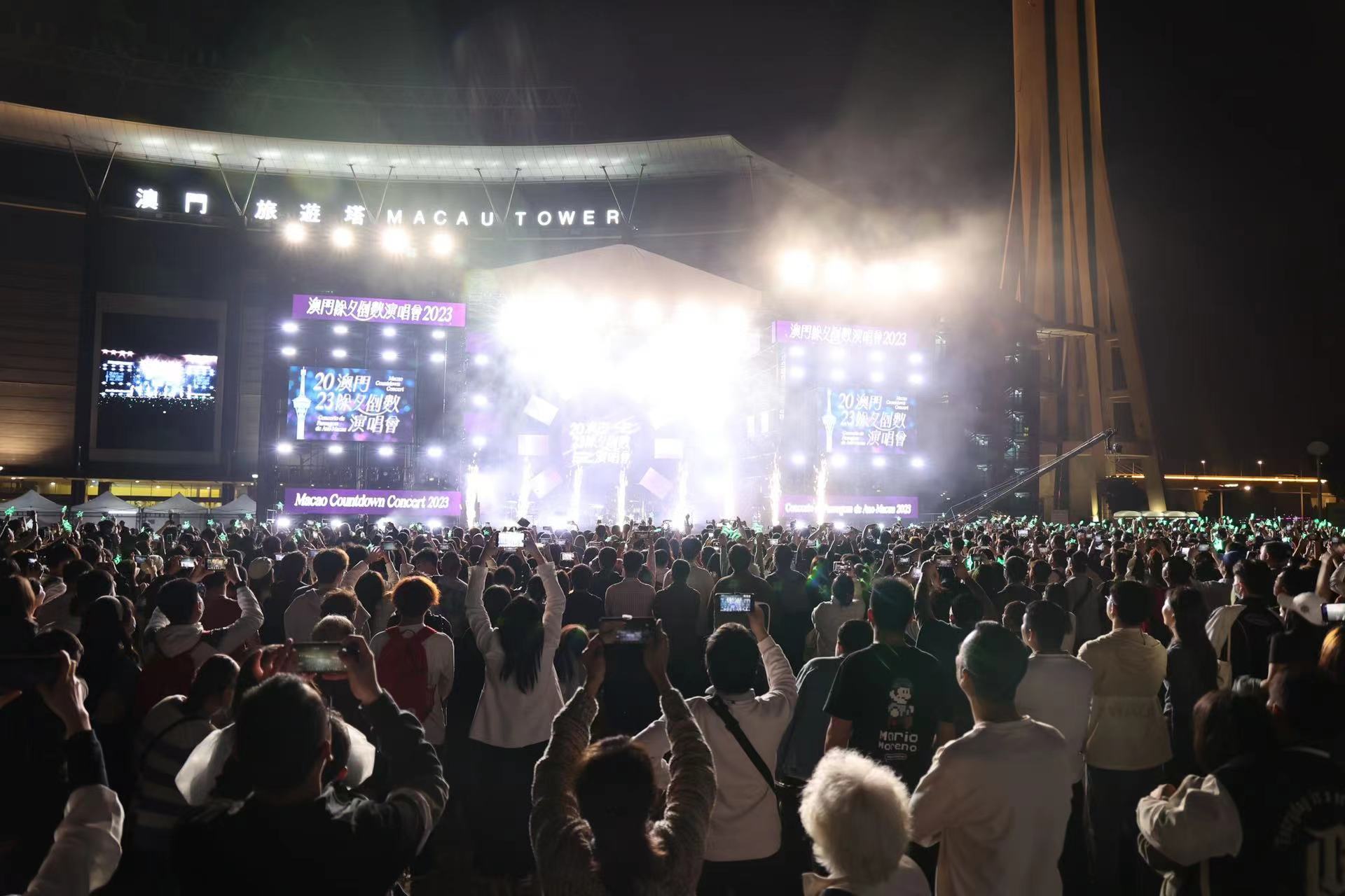 【即時新聞】由文化局主辦,旅遊局、市政署及澳門廣播電視股份有限公司協辦,並由澳娛綜合度假股份有限公司呈獻煙花表演的「2023澳門除夕倒數演唱會」於昨晚在西灣湖廣場舉行,踏入2024年一刻,熣燦絢麗的煙花在旅遊塔頂上綻放,點亮新一年的澳門夜空,現場一眾市民及旅客齊聚一堂,共同迎接2024年的到來。