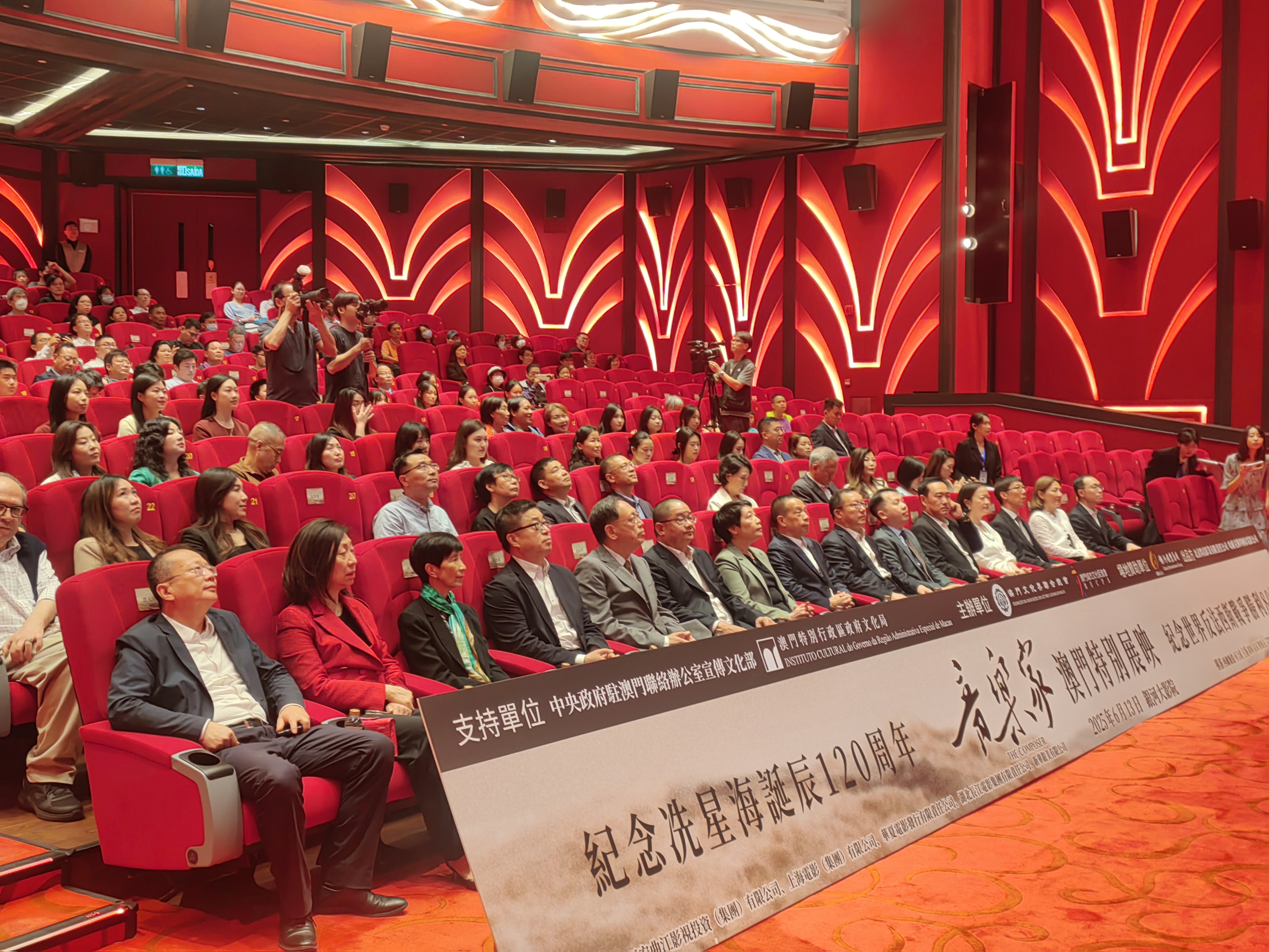 【即時新聞】為紀念“人民音樂家”冼星海誕辰120週年暨世界反法西斯戰爭勝利80週年,澳門文化界聯合總會與澳門城市文化促進會聯合主辦的電影《音樂家》澳門特別展映活動晚上在澳門銀河綜合度假城銀河影院舉行,是次活動得到中央政府駐澳門聯絡辦公室宣傳文化部、澳門特別行政區政府文化局的支持,以及銀河娛樂集團透過其“銀娛場地夥伴先導計劃”提供場地贊助,北京閃亮影業有限責任公司為活動提供影片及相關資料支持。