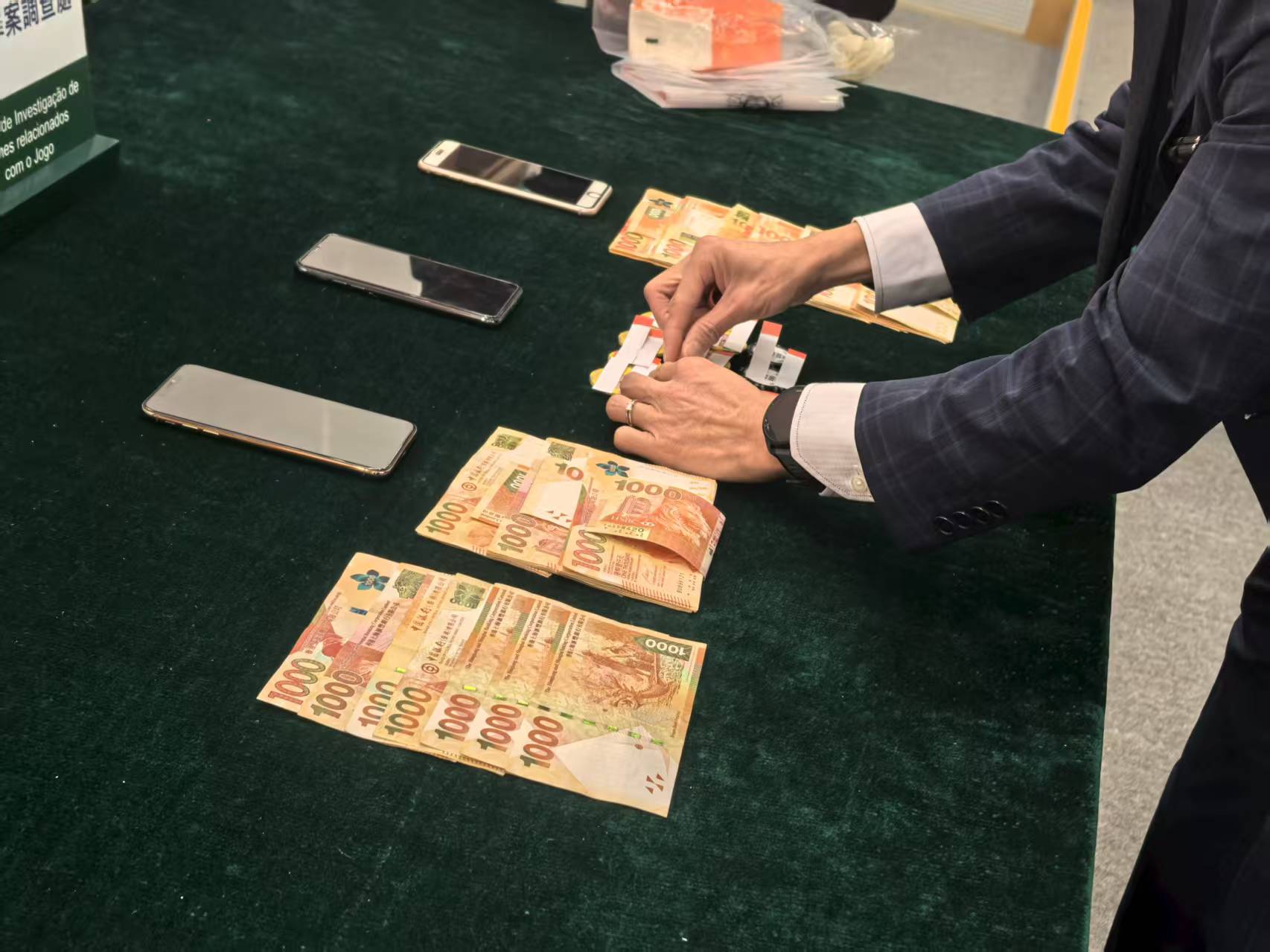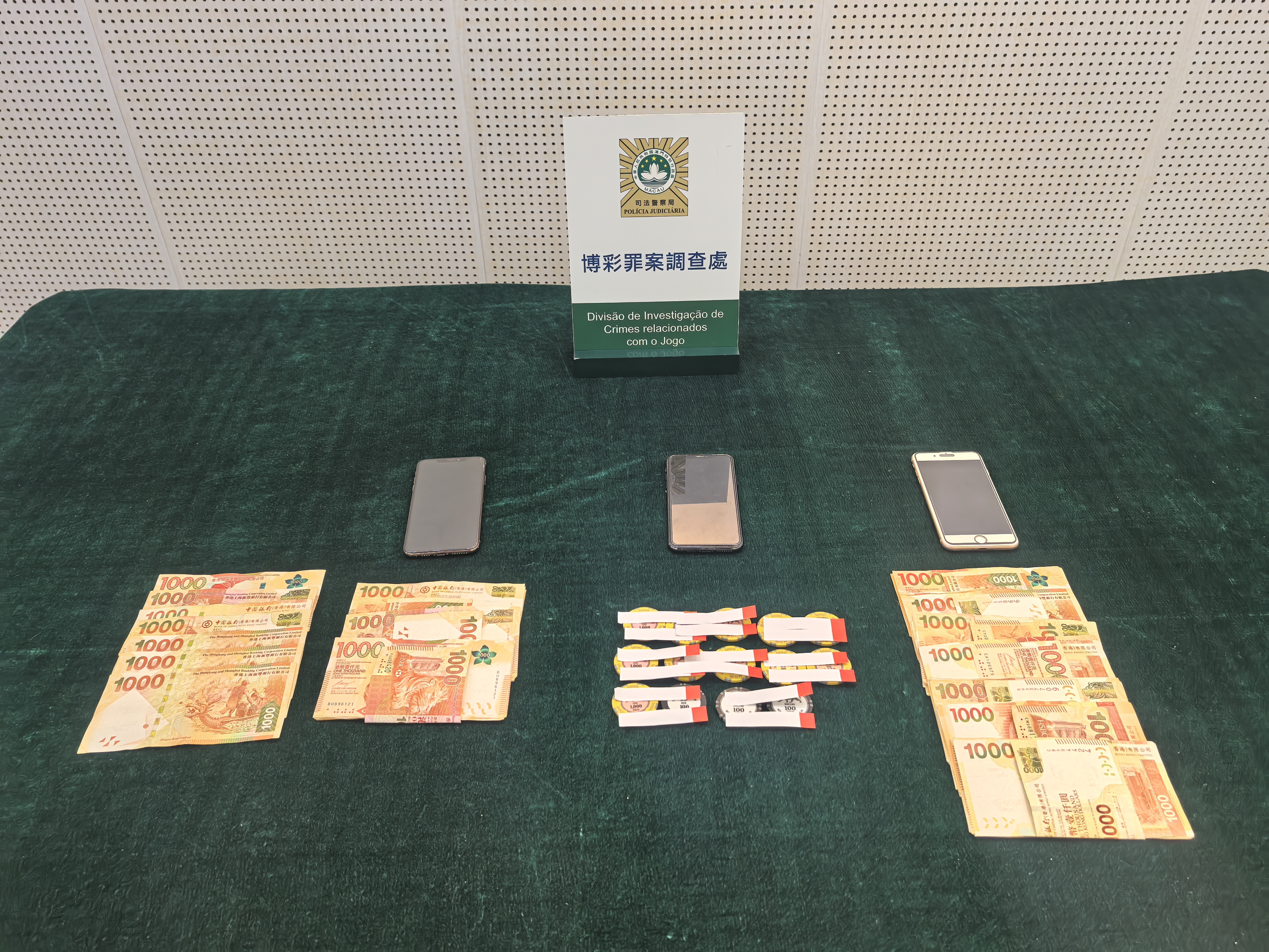 司警於本月9日接獲娛樂場報案後展開調查,當日在場內拘捕陳姓女莊荷及兩名分別姓李和姓劉的36歲內地男子。三人承認作案,但聲稱尚未分贓。警方在兩名男疑犯身上搜獲11.8萬港元現金及籌碼,相信為犯罪所得。