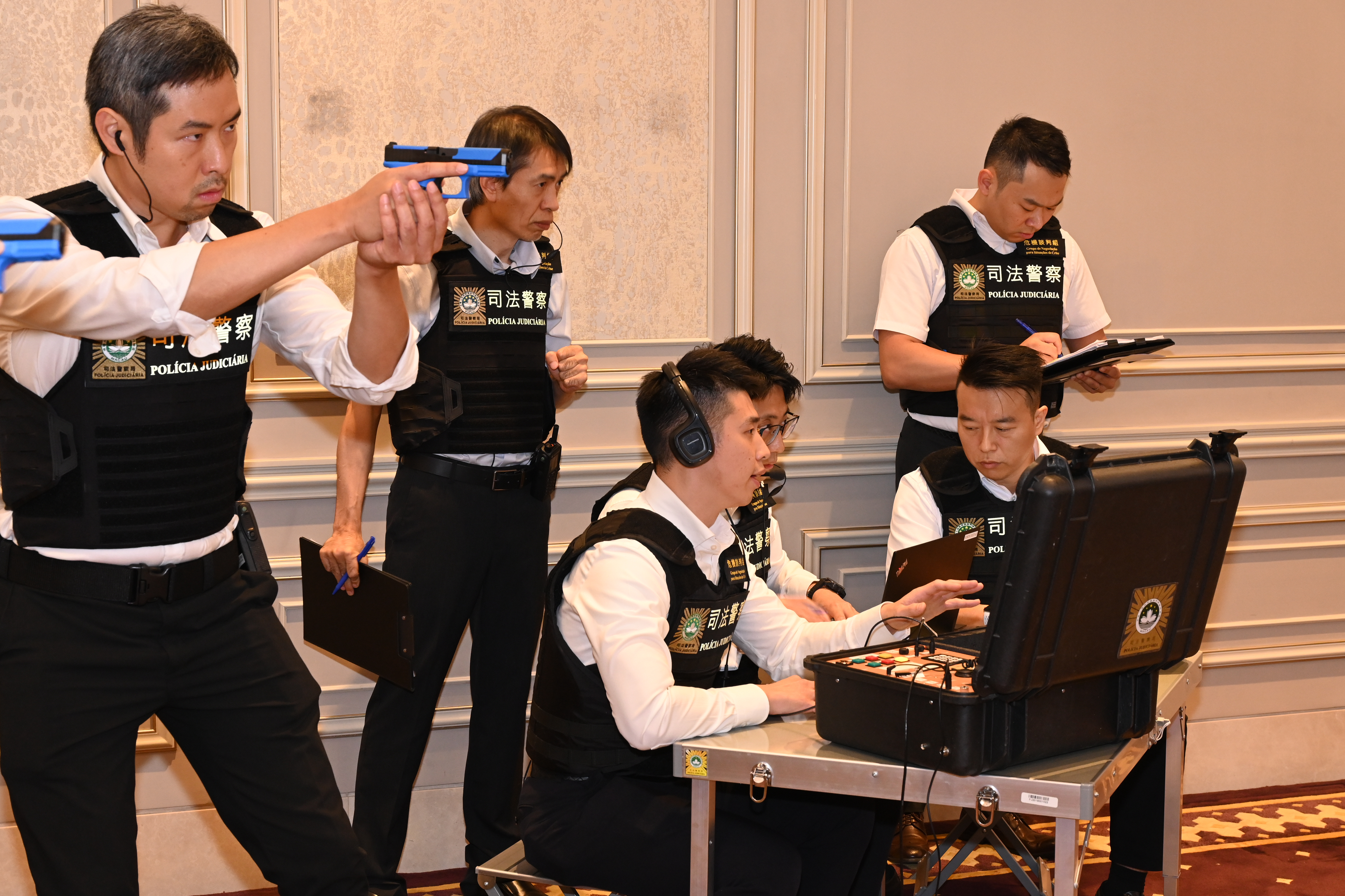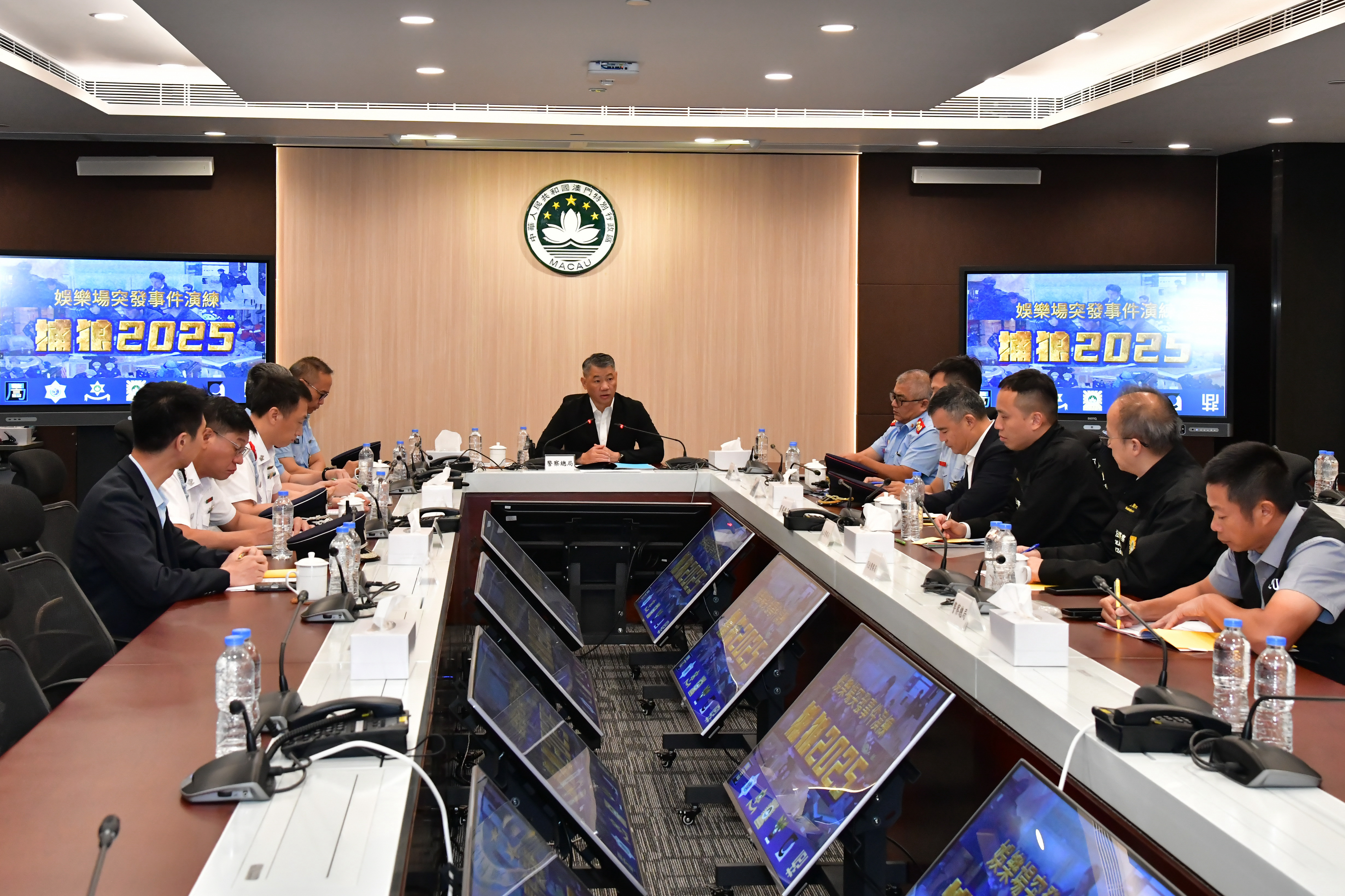 【即時新聞】為強化警方與綜合旅遊休閒企業(下稱“休企”)在應對突發事件時的訊息通報、指揮調度和協調應變能力,提升處理嚴重罪案的警務預案和行動成效,警察總局聯同澳門海關、治安警察局、司法警察局、消防局、博彩監察協調局以及澳娛綜合度假股份有限公司合共7個部門及機構,於今(16)日上午舉行代號“捕狼2025”娛樂場突發事件演練,模擬休企轄下兩處地點分別發生炸彈威脅及持械搶劫,保安當局組成現場指揮中心應對事件,最終成功拘捕匪徒,解決危機。
