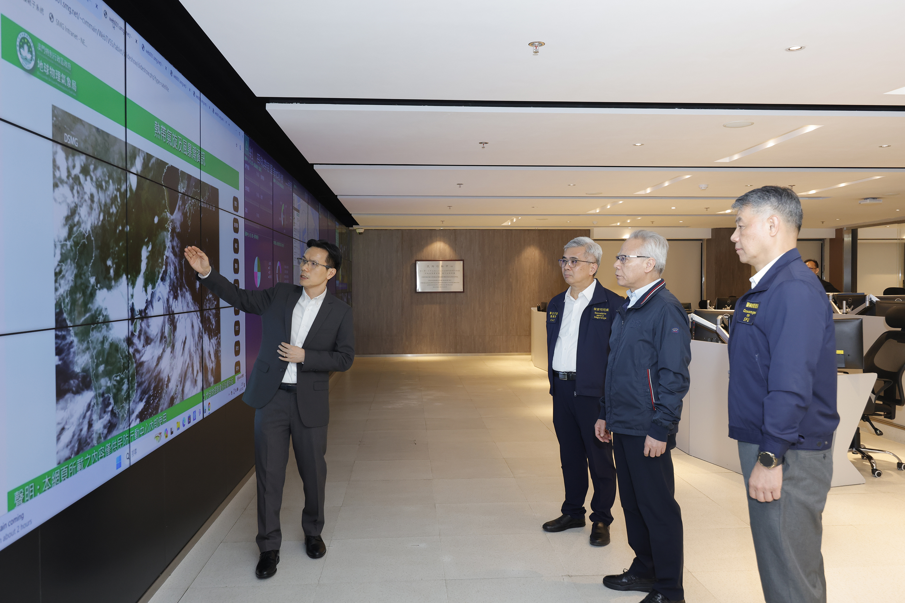 保安司司長、聯合行動指揮官黃少澤、警察總局局長梁文昌、行政長官辦公室主任陳格、各民防架構成員和相關部門的代表出席了會議。