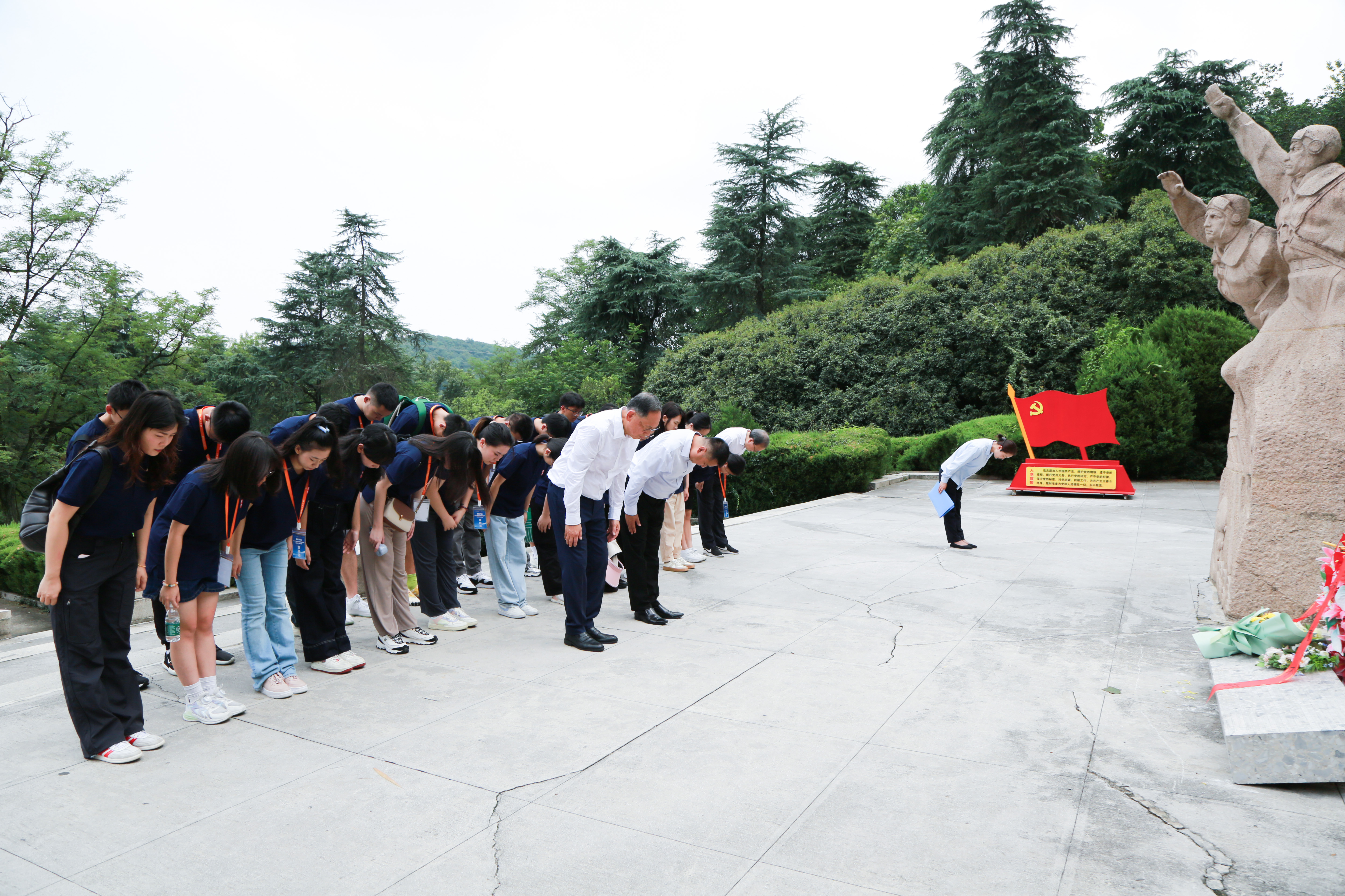 今年是抗戰勝利80週年,銘記歷史、緬懷先烈是本次參訪的重要主題之一。參訪團前往南京航空烈士公墓,向烈士敬獻花籃,莊重肅穆地緬懷為國家獨立和民族解放而英勇犧牲的先烈們。在烈士公墓,同學們認真聆聽烈士事跡,深刻感受到今日和平生活的來之不易,進一步增強了愛國情懷和歷史責任感。