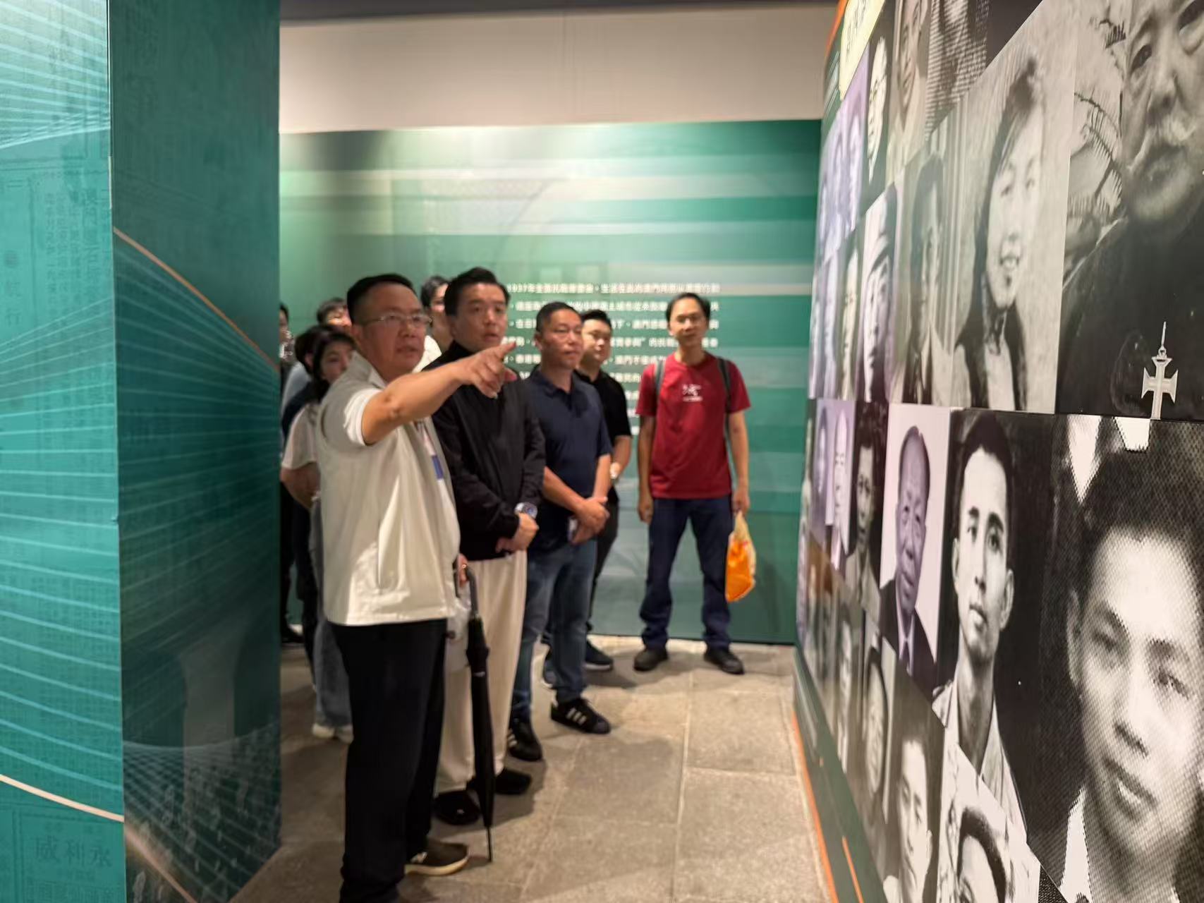 【即時新聞】為深化青年愛國教育,弘揚抗戰精神,澳門南海海外留學生聯盟暨南海青年聯會榮譽會長吳富國、會長李建煒、理事長崔顯基及南海海外留學生聯盟澳門工作站總幹事何家文帶領一眾理監事和青年會員,於今(4)日上午到市政署畫廊參觀「烽火忠魂:澳門抗戰人物群像展」。