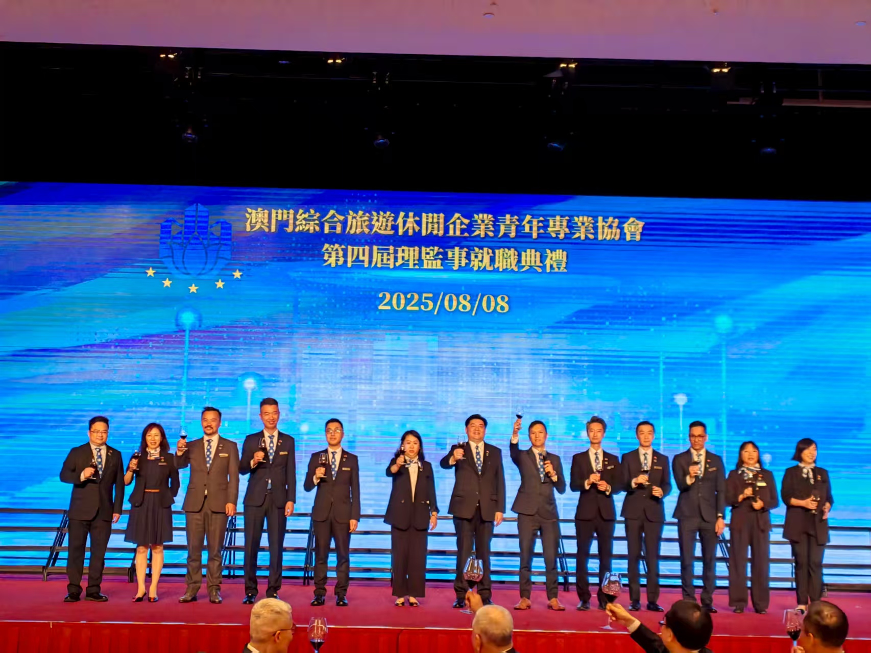 【即時新聞】澳門綜合旅遊休閒企業青年專業協會第四屆理監事就職典禮晚上在漁人碼頭宴會廳盛大舉行,筵開百余席,逾千名政商學界代表齊聚一堂,共同見證這一重要時刻。會長黃昇雄表示,新一屆理監事會將與全體會員攜手同心,堅定踐行 “專業成就價值,奮鬥定義未來”的理念,以更加昂揚的姿態、更加務實的作風,共同書寫澳門綜合旅遊休閒產業繁榮發展的嶄新篇章。