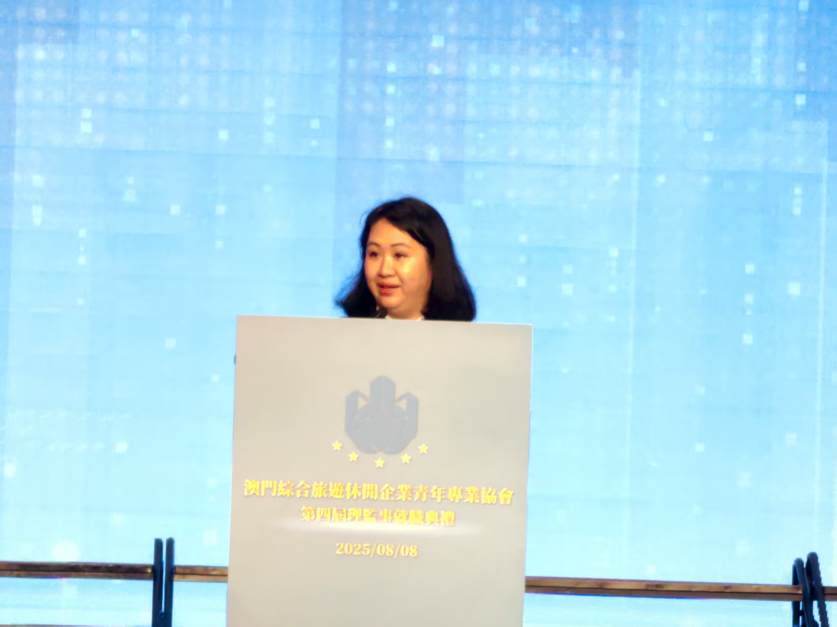 黃昇雄在致辭中回顧了協會自2016年成立以來的發展歷程。他表示,協會始終秉持“愛國愛澳”核心價值,凝聚了千余名本地綜合旅遊休閒企業青年骨幹,通過專題調研、高峰論壇等多種方式深化專業賦能,聯動高校開展定制課程提升會員素養,見證了本地人才在行業中的成長,目前綜合旅遊休閒企業管理層中本地人才比例已達九成。
