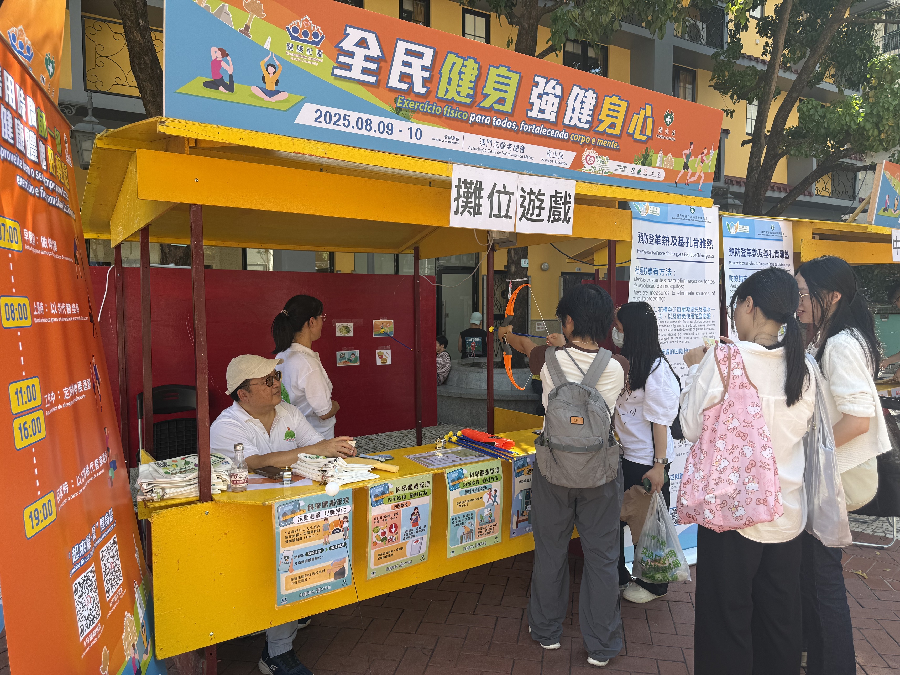 在澳門、氹仔和路環不同區域,共設置10個社區健康諮詢站點,深入社區向居民推廣運動的重要性,營造全民運動及隨時隨地做運動的良好氛圍,促進居民身心健康。兩天活動共吸引約14,000人次參與,居民反應熱烈。