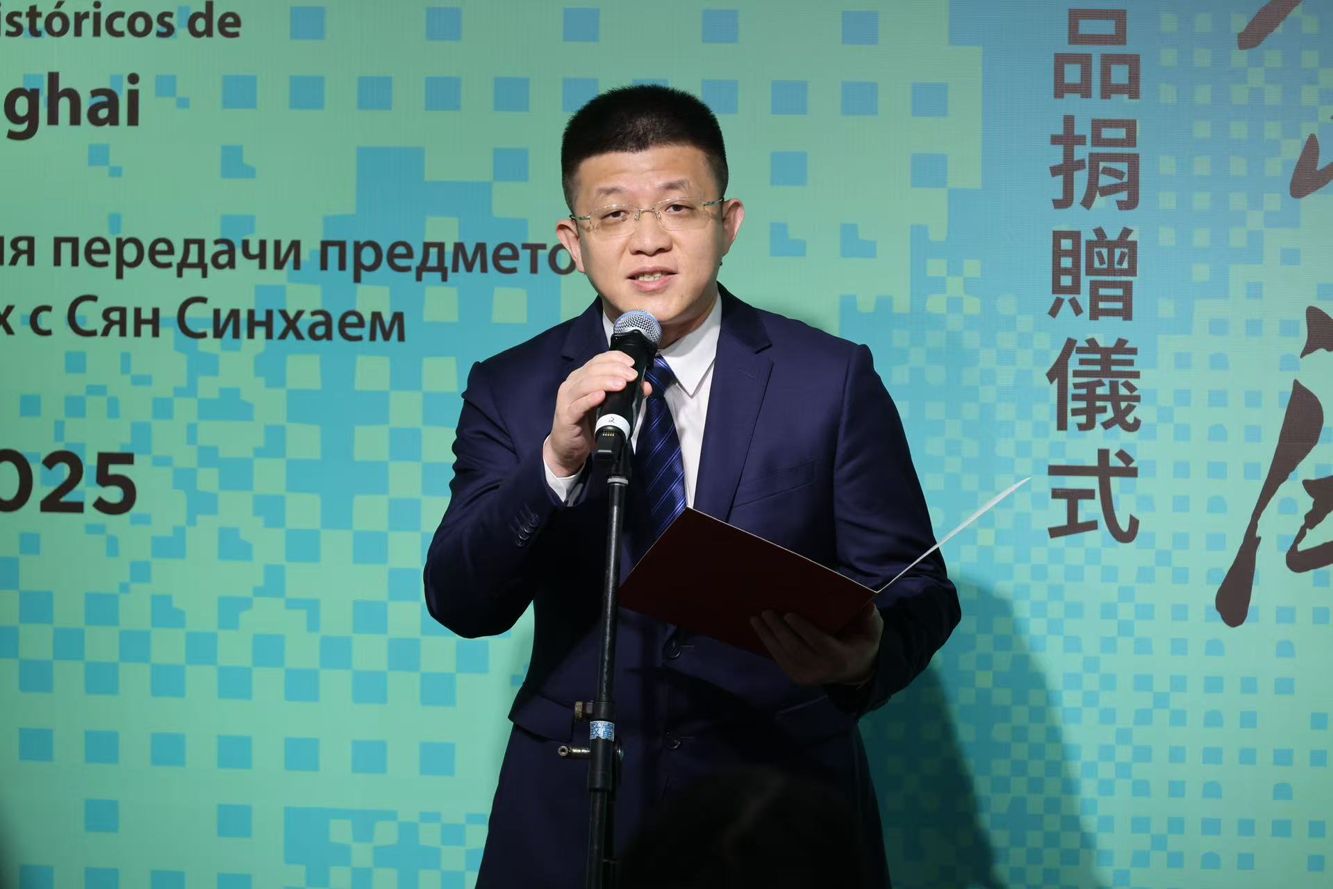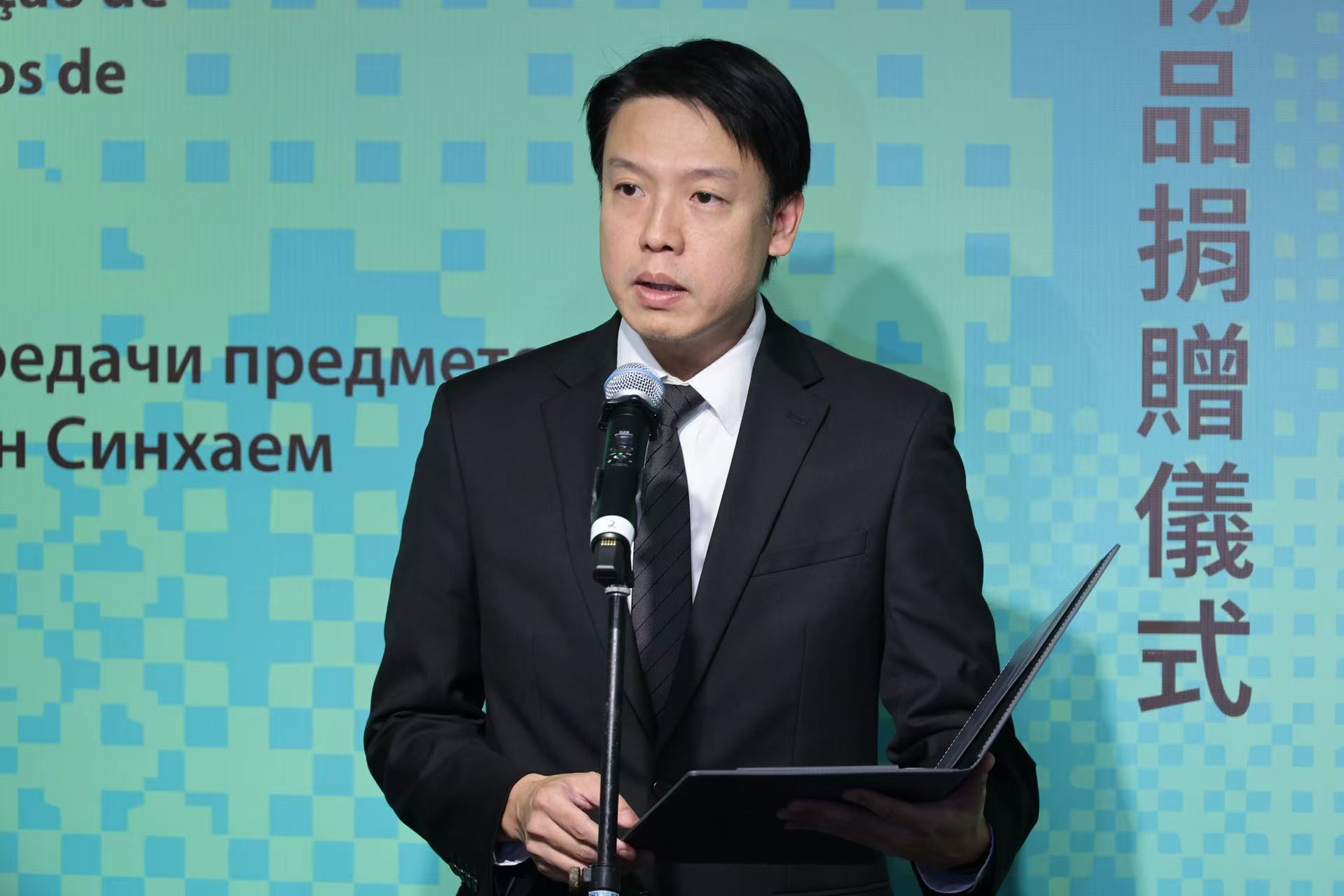 蔡健龍在致詞時感謝拜卡達莫娃的慷慨捐贈,該批物品承載著冼星海在異鄉的記憶,銘刻著與拜卡達莫夫一家的深厚情誼,同時亦是中哈友誼跨越時空的見證,將豐富冼星海紀念館的館藏,成為澳門愛國教育的生動教材。