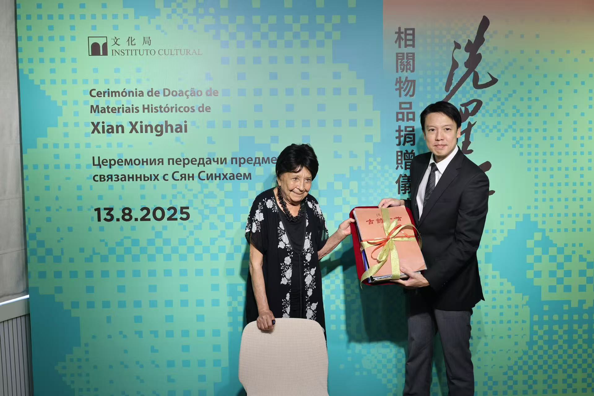 捐贈儀式下午三時假冼星海紀念館舉行,由文化局代局長蔡健龍代表接收。外交公署新聞和公共外交部主任高原參贊、教青局代副局長張敏輝、文化局澳門博物館館長盧可茵,以及拜卡達莫娃的家人等一同見證。