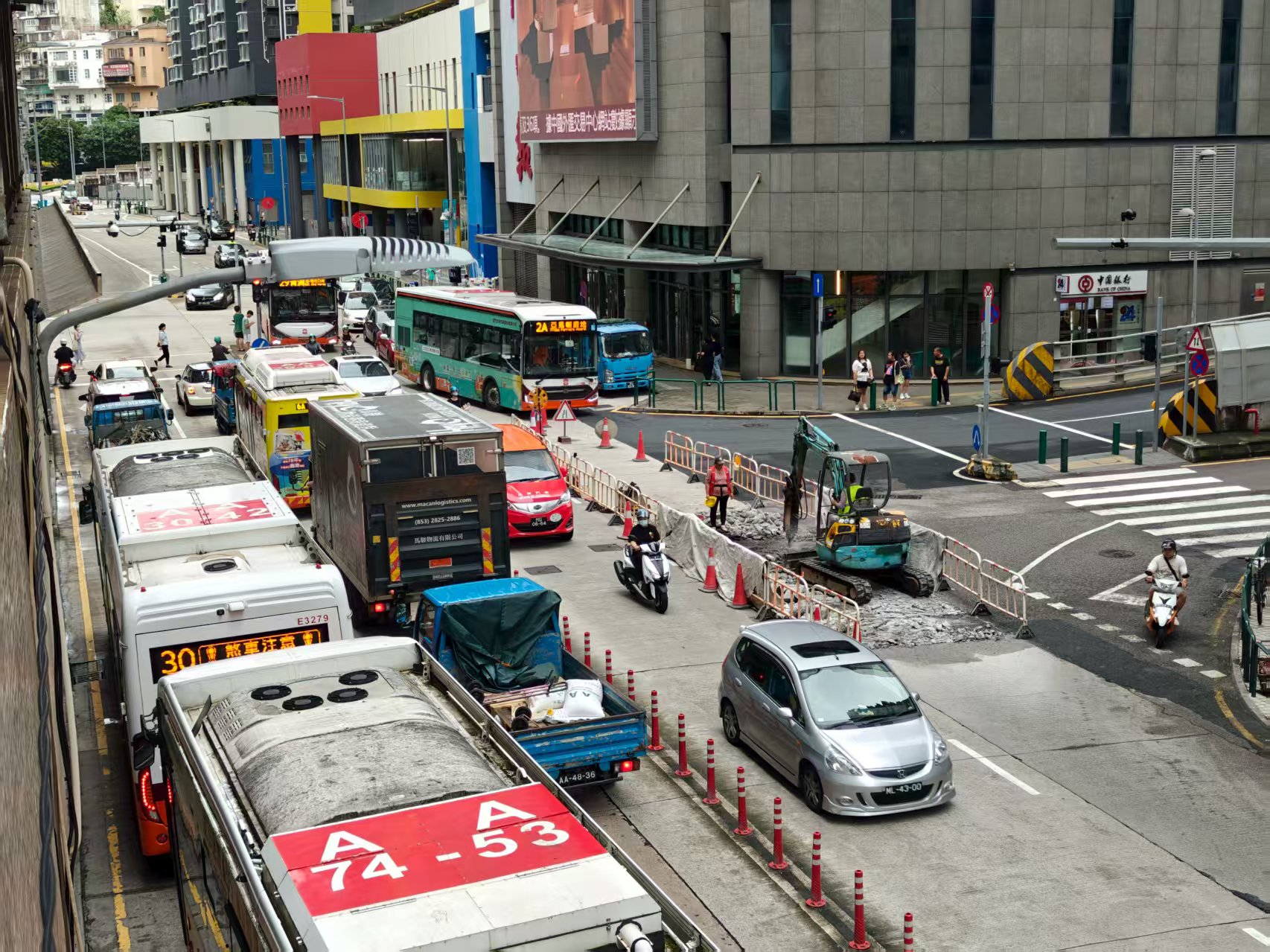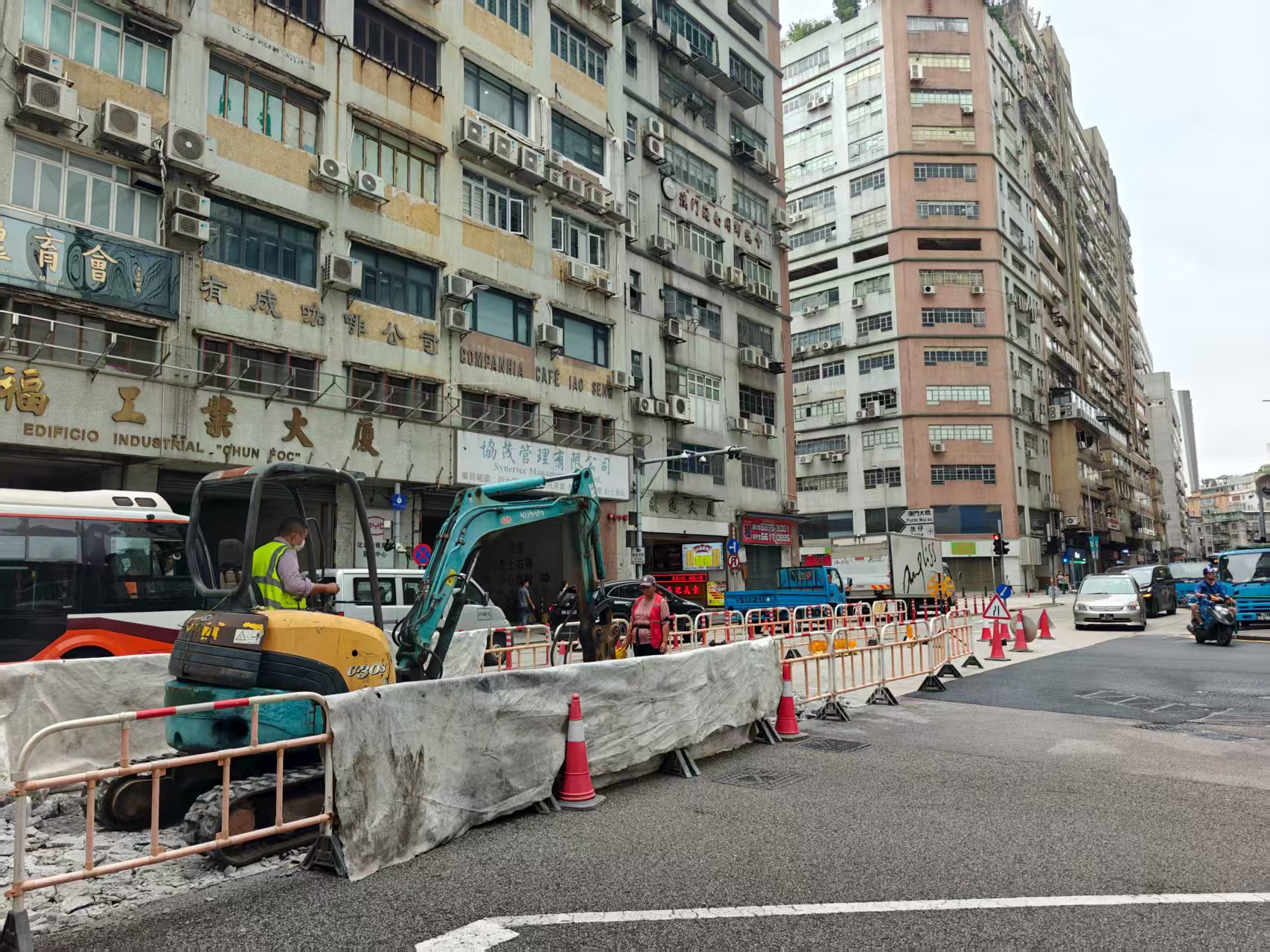 現場可見,搶修路段位於慕拉士大馬路與東北大馬路交匯處,近新雅馬路行車天橋位置,工作人員用圍欄圍蔽路面,有挖掘機進場開挖施工。受此影響,慕拉士大馬路社屋望信樓往俾利喇街方向行車路段,在經過與東北大馬路交匯處紅綠燈後,兩車道將收窄成單車道,靠近澳門日報大樓的一側有預留位置給車輛左轉通往新雅馬路行車天橋。在中午上班繁忙時段,有關路段輕微擁堵,車輛有序通行,並未造成大擁堵。