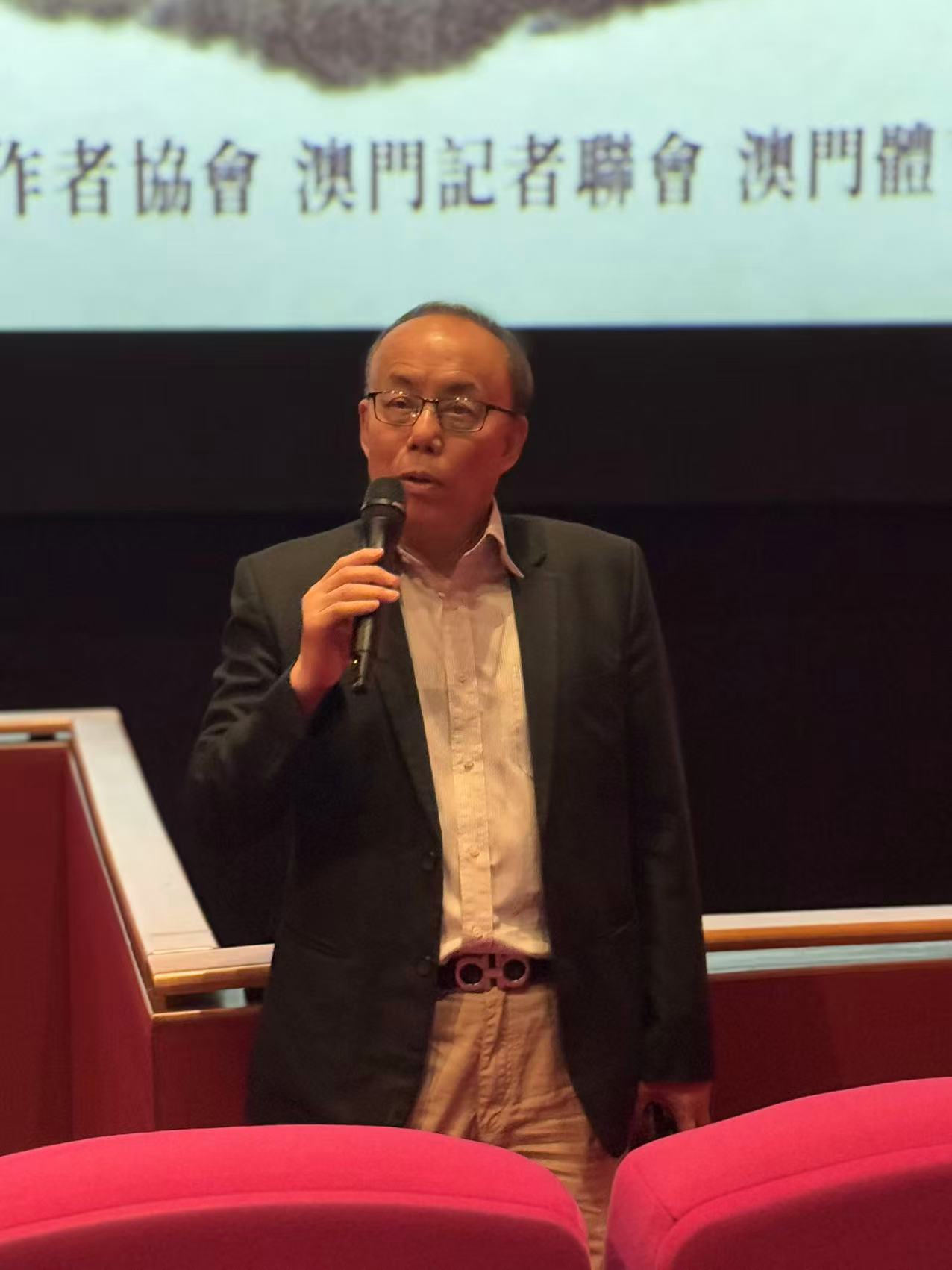 胡根致詞表示,今年是中國人民抗戰勝利八十周年,《南京照相館》這部電影以獨特視角重現歷史,希望通過這次觀影會,讓大家銘記歷史,珍愛和平。澳門新聞工作者肩負著記錄歷史、傳播真相的使命,希望大家從影片中汲取力量,堅定使命感,更好地履行職責。