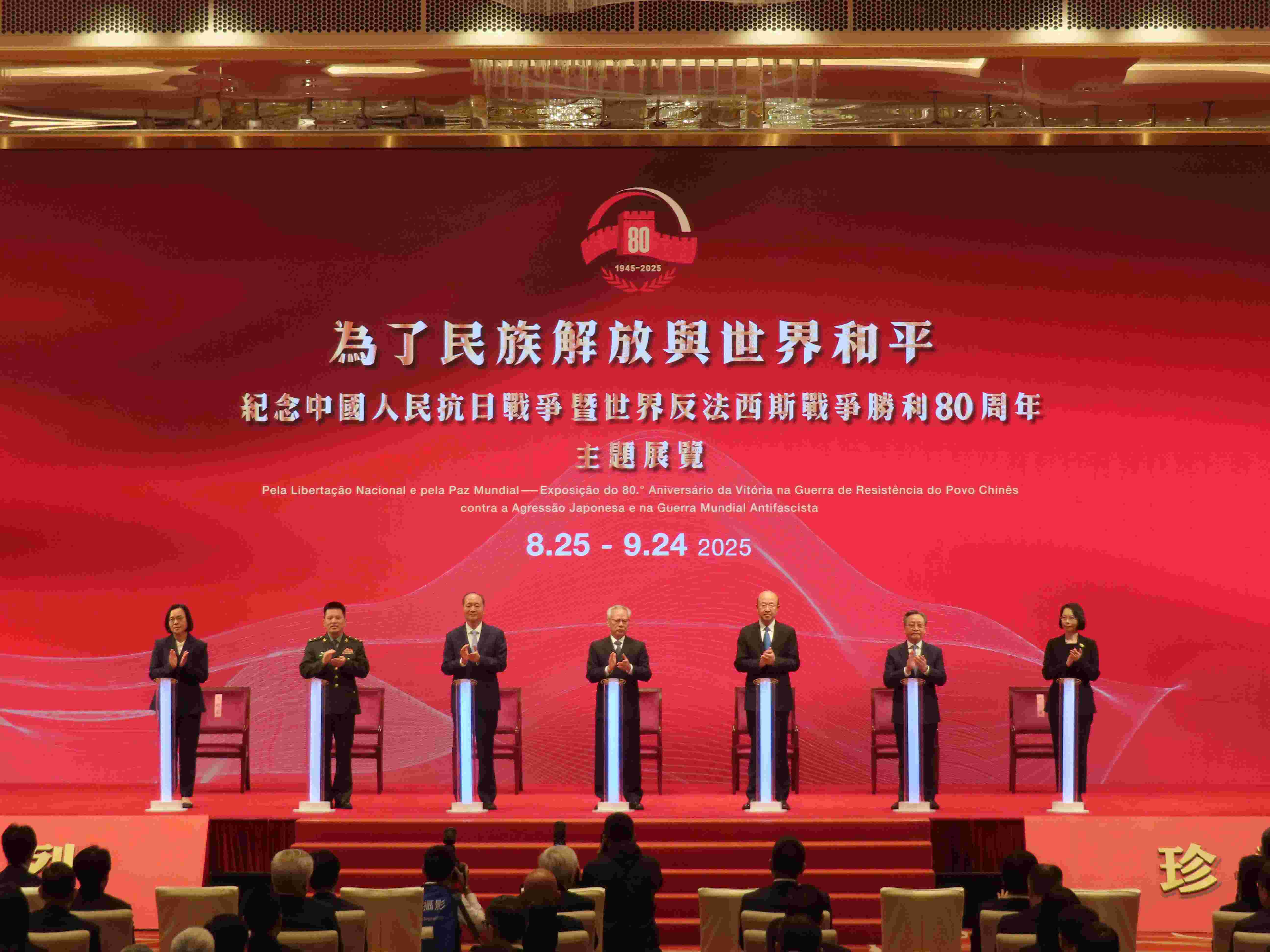 【即時新聞】「為了民族解放與世界和平──紀念中國人民抗日戰爭暨世界反法西斯戰爭勝利80週年主題展覽」上午在中葡綜合體開幕,共分為六個篇章,包括「抗戰爆發 奮起救亡」「全民族抗戰 共禦外侮」「萬眾一心 同仇敵愾」「濠江潮湧 紅色抗戰」「共抗法西斯 東方主戰場」及「偉大勝利 民族復興轉折點」,傳遞「銘記歷史,緬懷先烈,珍愛和平,開創未來」的核心理念,通過大量珍貴歷史圖片和影像資料,系統呈現了1931年至1945年中國人民抗戰14年的艱辛歷程,全面展現中華兒女浴血抗戰的壯烈篇章和抗戰勝利的偉大意義,堅持以人民為中心,不斷實現人民對美好生活的嚮往,展期至9月24日